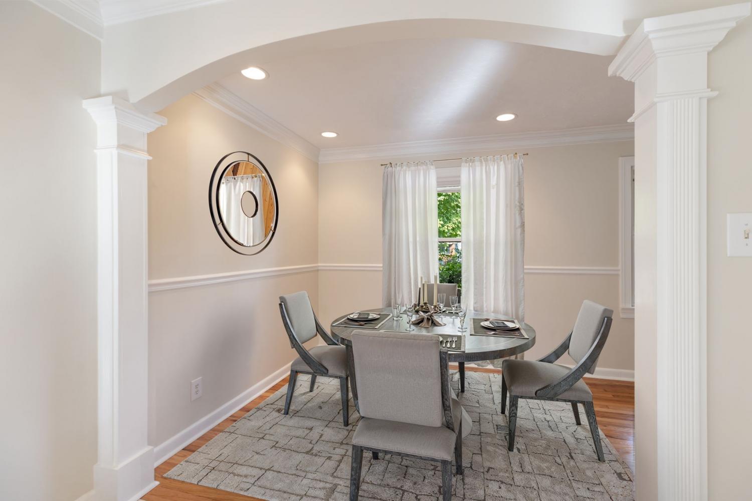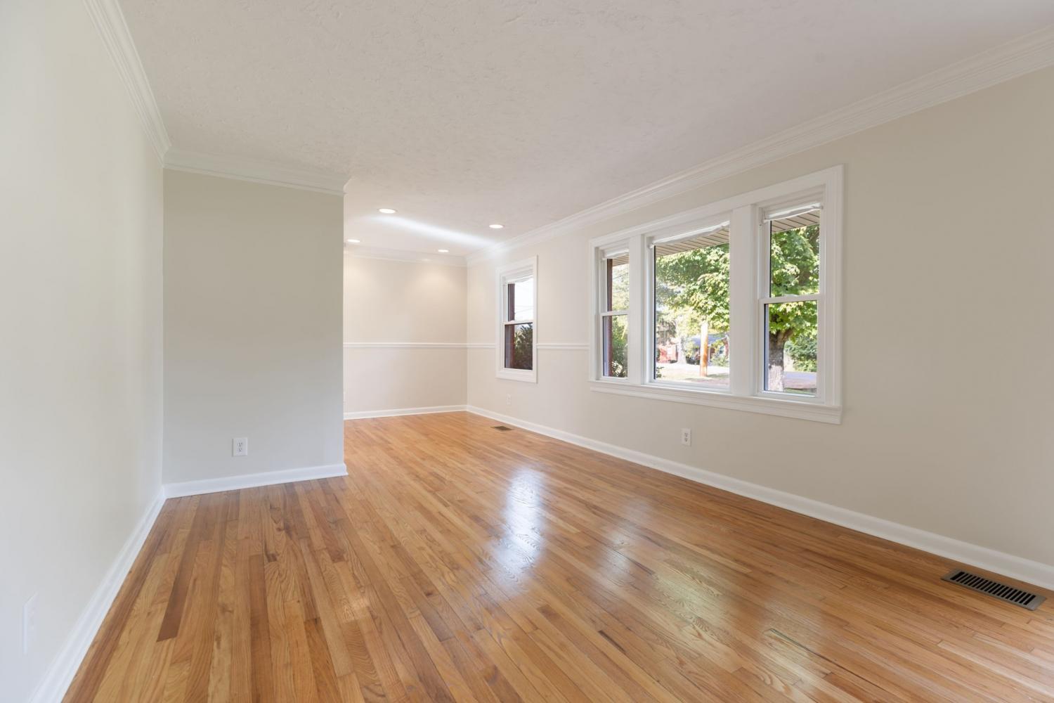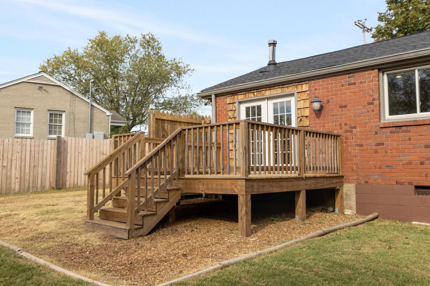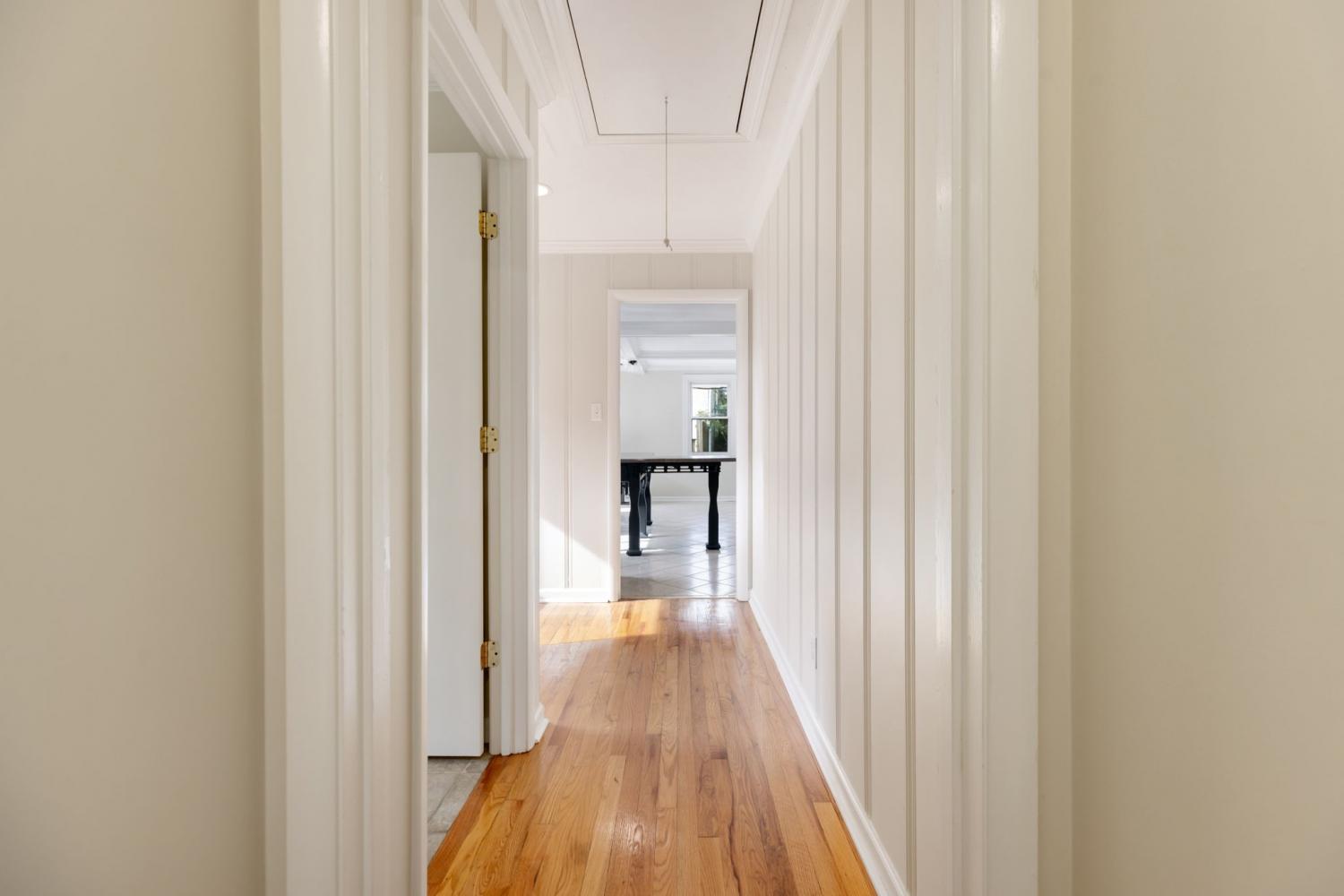 Freshly updated and full of charm, this beautifully maintained brick ranch blends timeless character with improvements over the years. Inside, you’ll find fresh paint, crown molding, and gleaming hardwood floors that flow through the main living areas and bedrooms. The kitchen impresses with painted cabinetry, abundant countertop space, and tile backsplash—plus a stainless refrigerator, electric cooktop, and microwave. The home’s previous owner was a dedicated baker who designed the kitchen to feature three ovens and a custom-made iron island perfect for crafting homemade recipes or hosting family gatherings. A spacious pantry and tile floors complete the space, while the adjoining den features exposed ceiling beams and plenty of room to gather. Additional highlights include a room that was converted into a bright home office, updated bathroom with tile surround and linen storage. Outside, a recently built deck overlooks the private backyard with mature trees and plenty of room to relax or entertain. Notable updates: Crawlspace was encapsulated in 2024 by Crawlspace brothers with a dehumidifier for peace of mind. The roof was replaced in 2025 and carries a Don Kennedy Roofing transferable 10- year No Leak Warranty. Windows were replaced in 2017 and are under warranty until 2027 (transferable to new owner). This move-in-ready home combines practical updates with classic design in a serene, convenient location—perfect for anyone seeking comfort and character in one package.