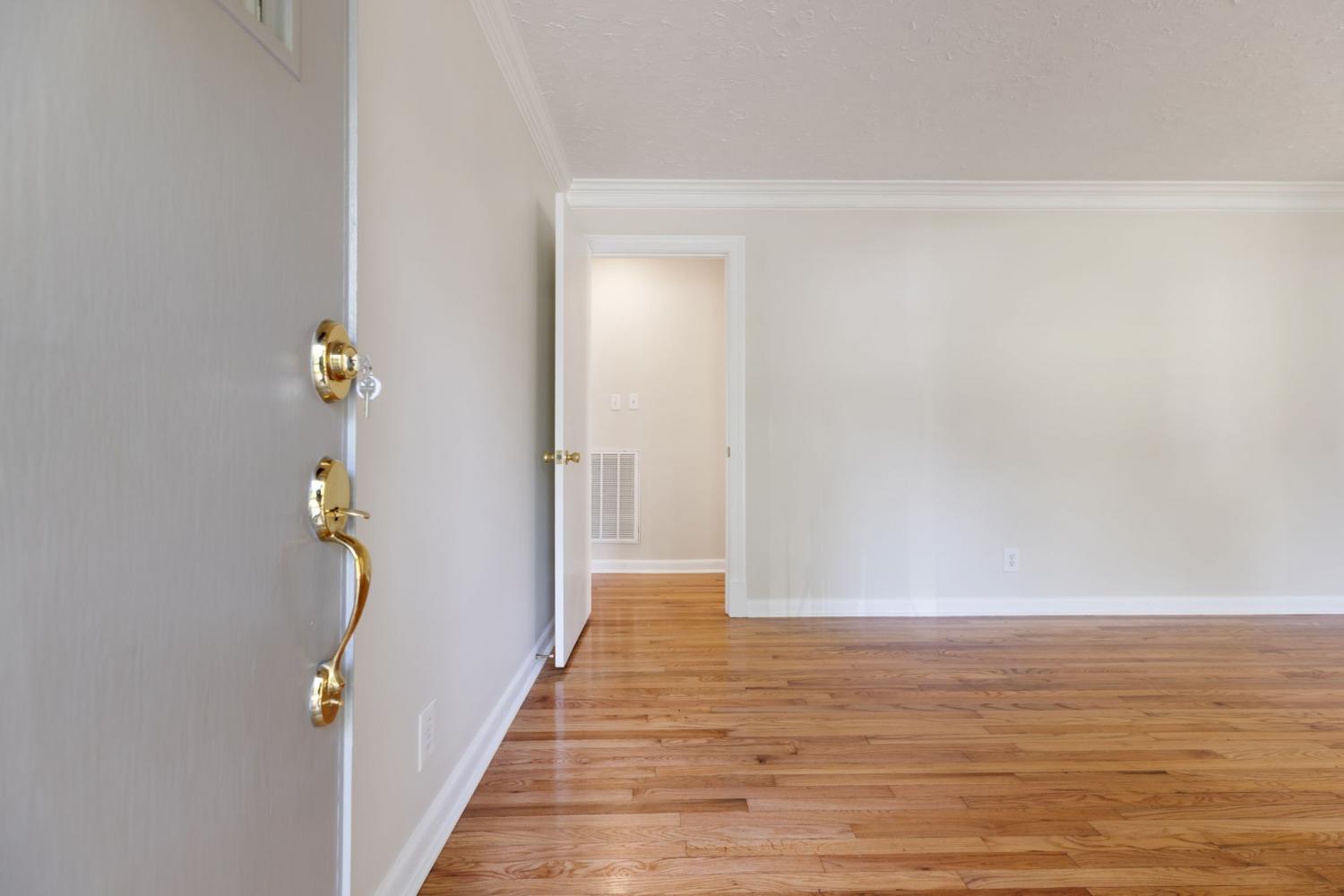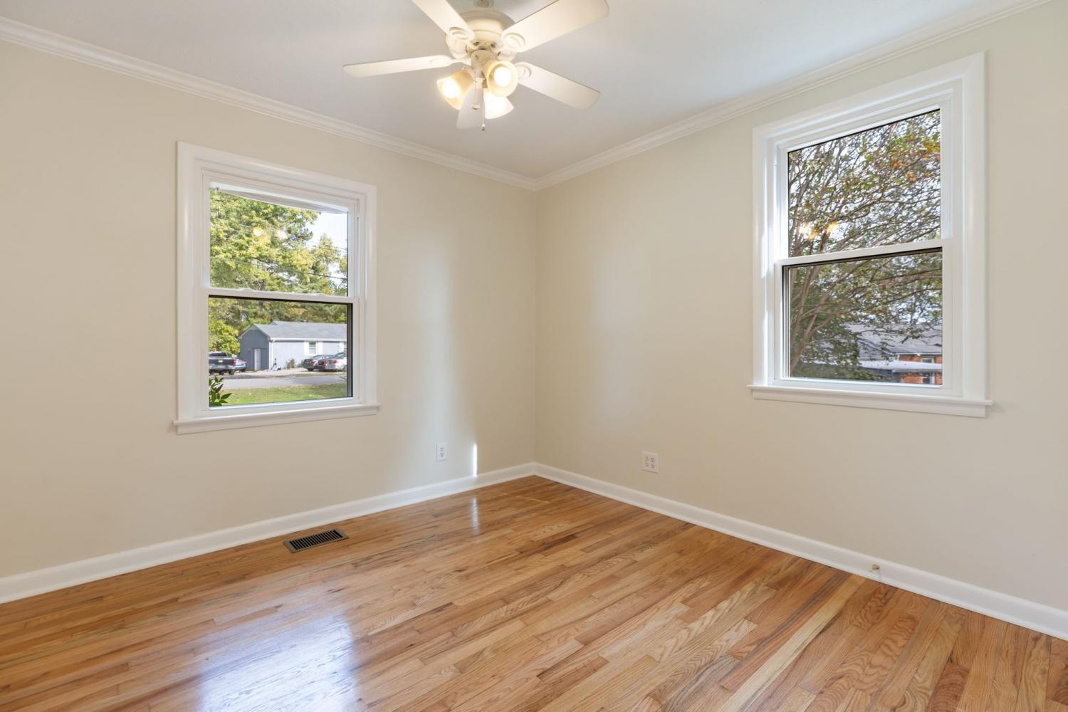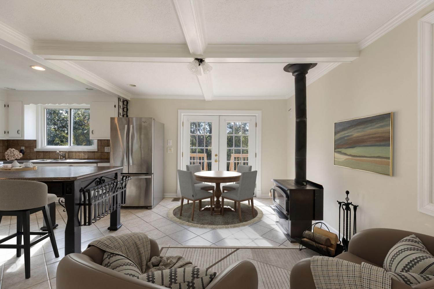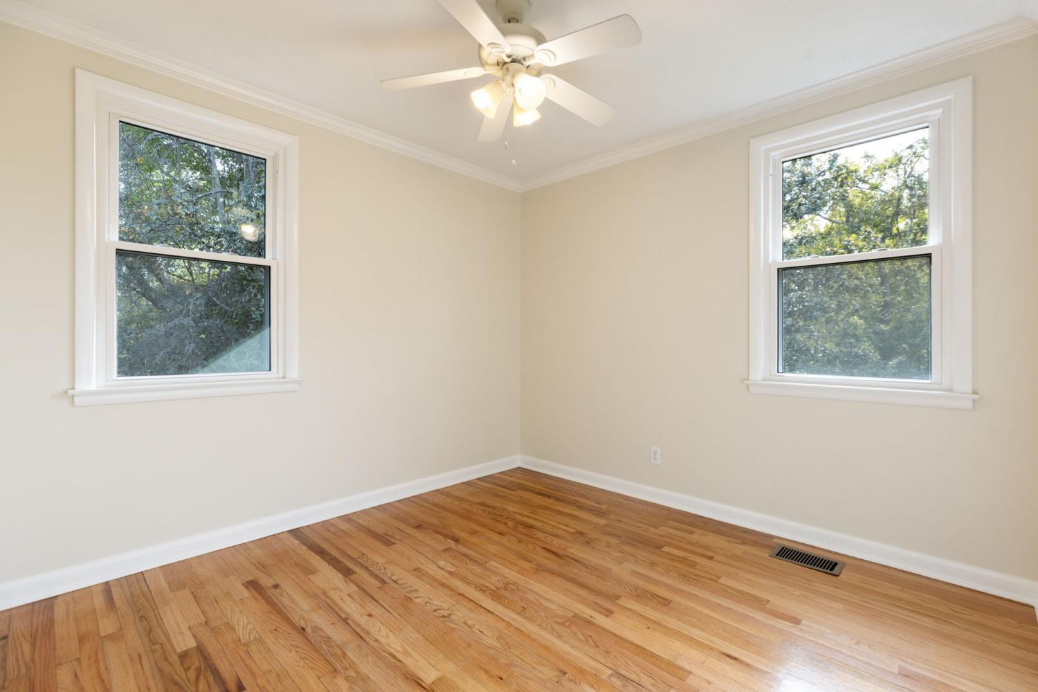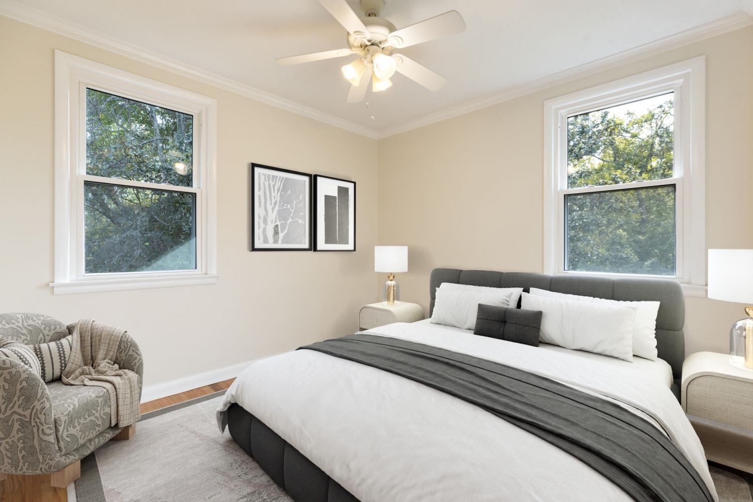 Freshly updated and full of charm, this beautifully maintained brick ranch blends timeless character with improvements over the years. Inside, you’ll find fresh paint, crown molding, and gleaming hardwood floors that flow through the main living areas and bedrooms. The kitchen impresses with painted cabinetry, abundant countertop space, and tile backsplash—plus a stainless refrigerator, electric cooktop, and microwave. The home’s previous owner was a dedicated baker who designed the kitchen to feature three ovens and a custom-made iron island perfect for crafting homemade recipes or hosting family gatherings. A spacious pantry and tile floors complete the space, while the adjoining den features exposed ceiling beams and plenty of room to gather. Additional highlights include a room that was converted into a bright home office, updated bathroom with tile surround and linen storage. Outside, a recently built deck overlooks the private backyard with mature trees and plenty of room to relax or entertain. Notable updates: Crawlspace was encapsulated in 2024 by Crawlspace brothers with a dehumidifier for peace of mind. The roof was replaced in 2025 and carries a Don Kennedy Roofing transferable 10- year No Leak Warranty. Windows were replaced in 2017 and are under warranty until 2027 (transferable to new owner). This move-in-ready home combines practical updates with classic design in a serene, convenient location—perfect for anyone seeking comfort and character in one package.