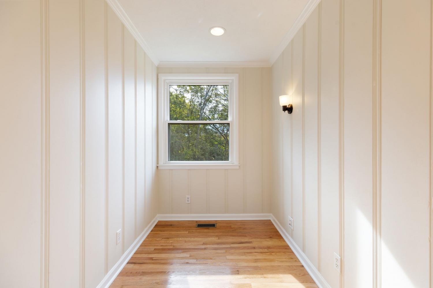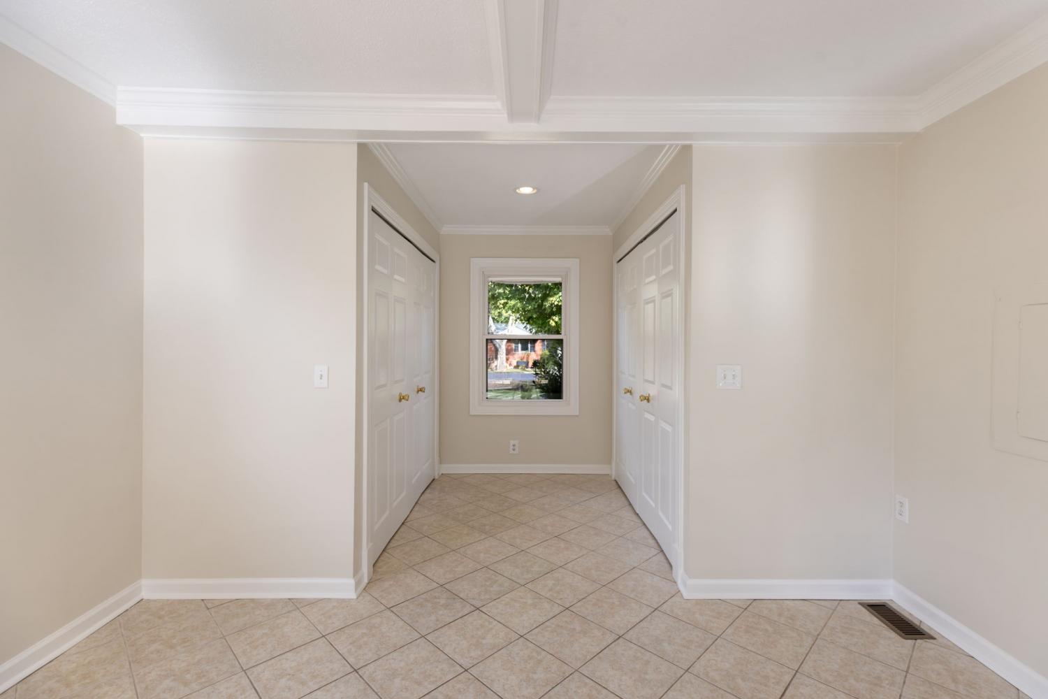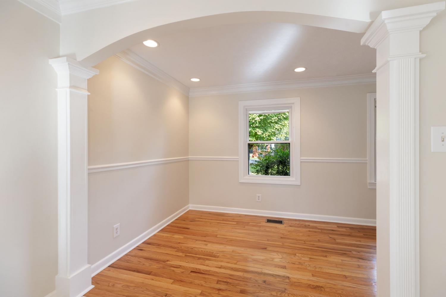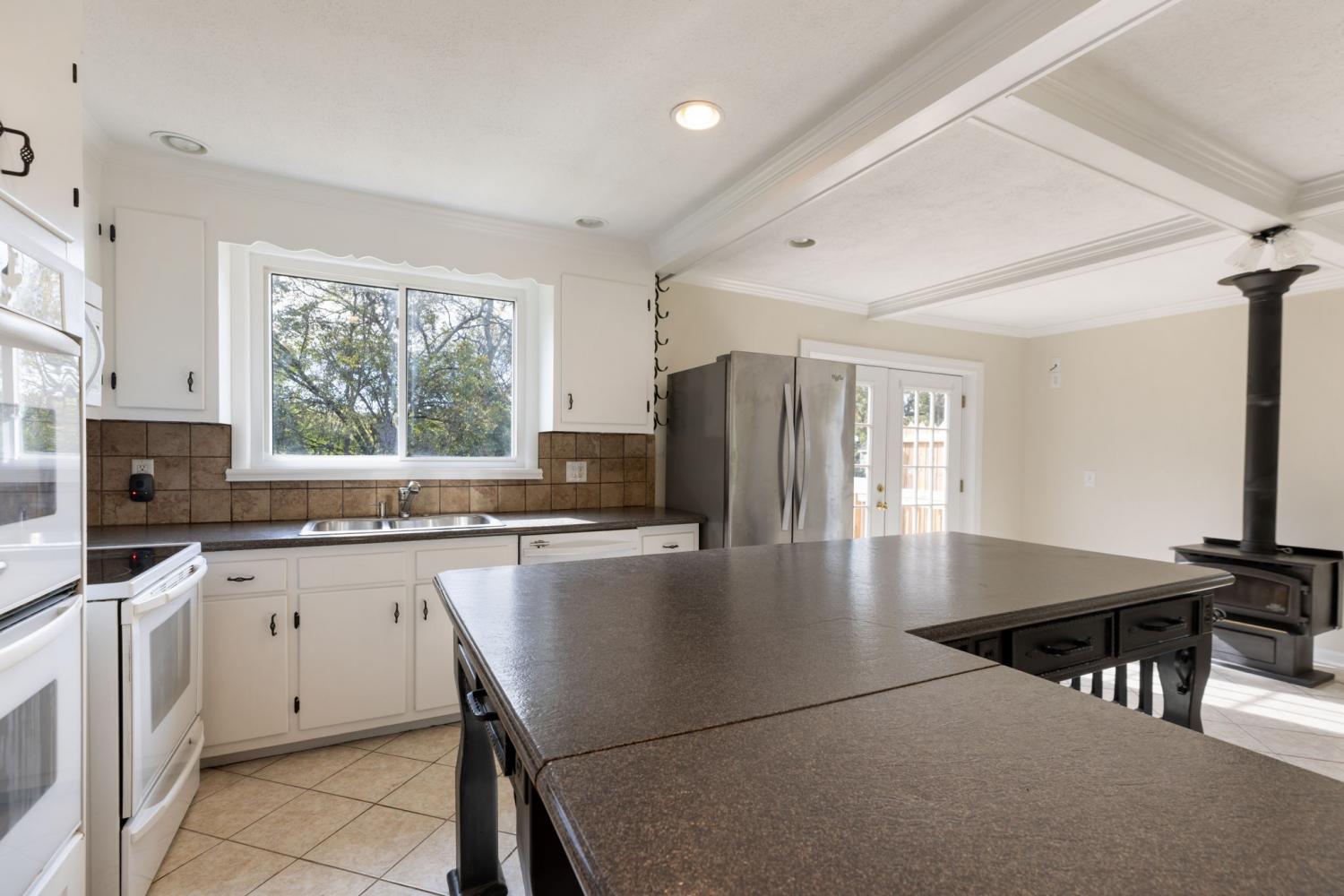 Freshly updated and full of charm, this beautifully maintained brick ranch blends timeless character with improvements over the years. Inside, you’ll find fresh paint, crown molding, and gleaming hardwood floors that flow through the main living areas and bedrooms. The kitchen impresses with painted cabinetry, abundant countertop space, and tile backsplash—plus a stainless refrigerator, electric cooktop, and microwave. The home’s previous owner was a dedicated baker who designed the kitchen to feature three ovens and a custom-made iron island perfect for crafting homemade recipes or hosting family gatherings. A spacious pantry and tile floors complete the space, while the adjoining den features exposed ceiling beams and plenty of room to gather. Additional highlights include a room that was converted into a bright home office, updated bathroom with tile surround and linen storage. Outside, a recently built deck overlooks the private backyard with mature trees and plenty of room to relax or entertain. Notable updates: Crawlspace was encapsulated in 2024 by Crawlspace brothers with a dehumidifier for peace of mind. The roof was replaced in 2025 and carries a Don Kennedy Roofing transferable 10- year No Leak Warranty. Windows were replaced in 2017 and are under warranty until 2027 (transferable to new owner). This move-in-ready home combines practical updates with classic design in a serene, convenient location—perfect for anyone seeking comfort and character in one package.