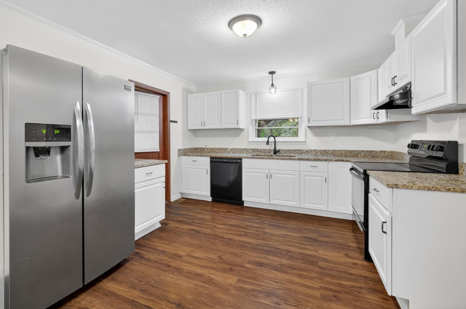 3-Bedroom Home with Updated Kitchen and Large Backyard! This 3-bedroom, 1.5-bath home offers a comfortable layout with original hardwood floors and vinyl plank flooring in the bathrooms. The kitchen has been updated with granite countertops and new cabinets! Enjoy a spacious backyard with plenty of room for outdoor activities. One car attached garage! The property is on public sewer and FPU internet. Conveniently located between Fayetteville and Huntsville for easy commuting and access to nearby amenities.