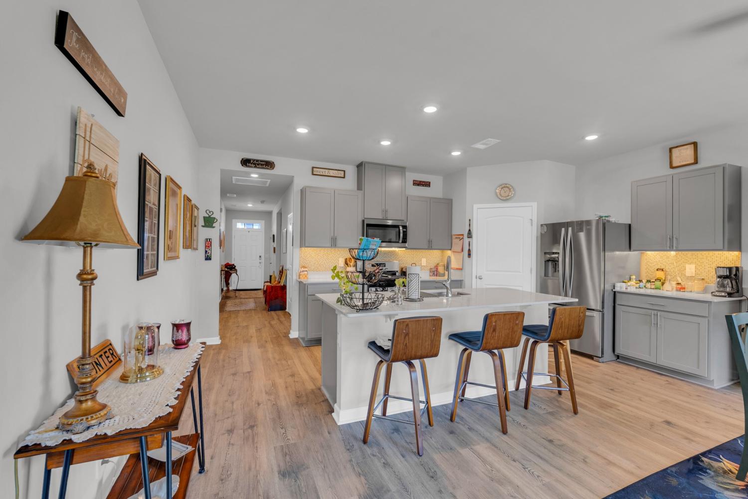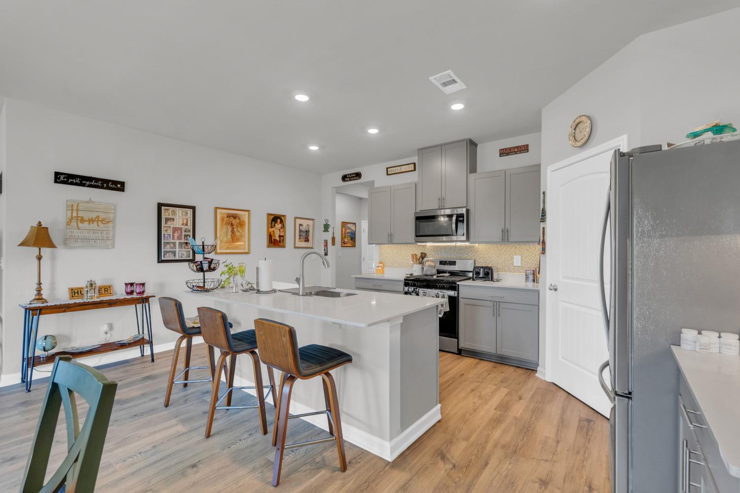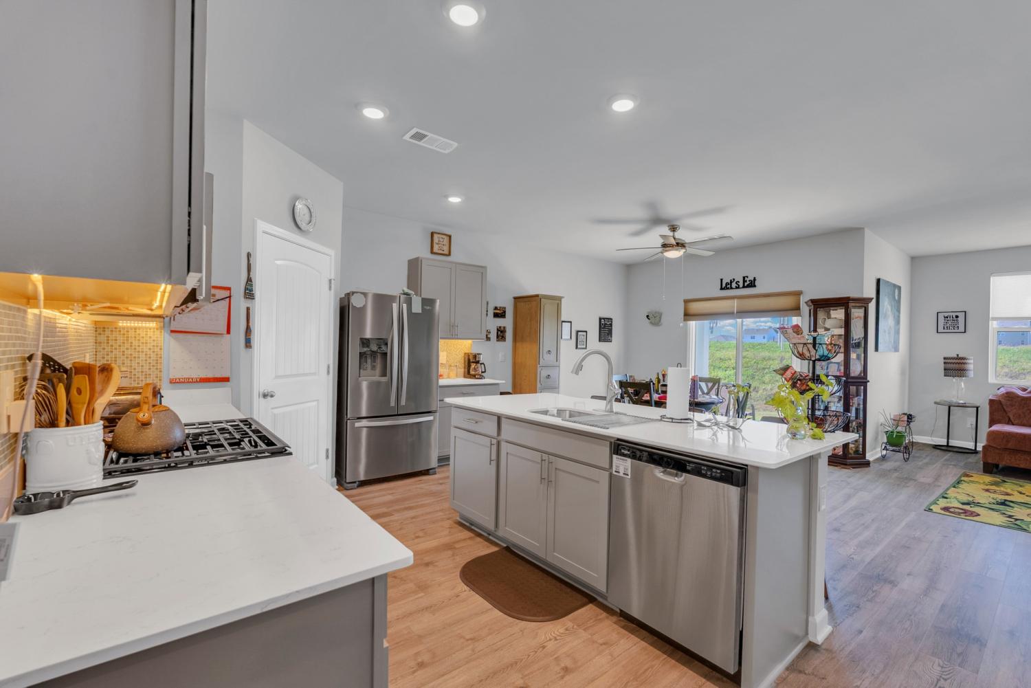 Welcome to 5423 Timberwalk! This 4 bedroom, 2 bathroom single story home offers 1744 sq ft. The open concept layout features upgrades throughout. LVP flooring in 3 of the 4 bedrooms, tile flooring in both bathrooms, stylish under cabinet lighting in the kitchen, tile backsplash, custom window treatments and ceiling fans added throughout for additional comfort. This energy efficient home is nestled in the desirable DR Horton Timberwalk community. With thoughtful upgrades and a warm inviting feel this home is move in ready. Seller offering $2500 toward closing costs