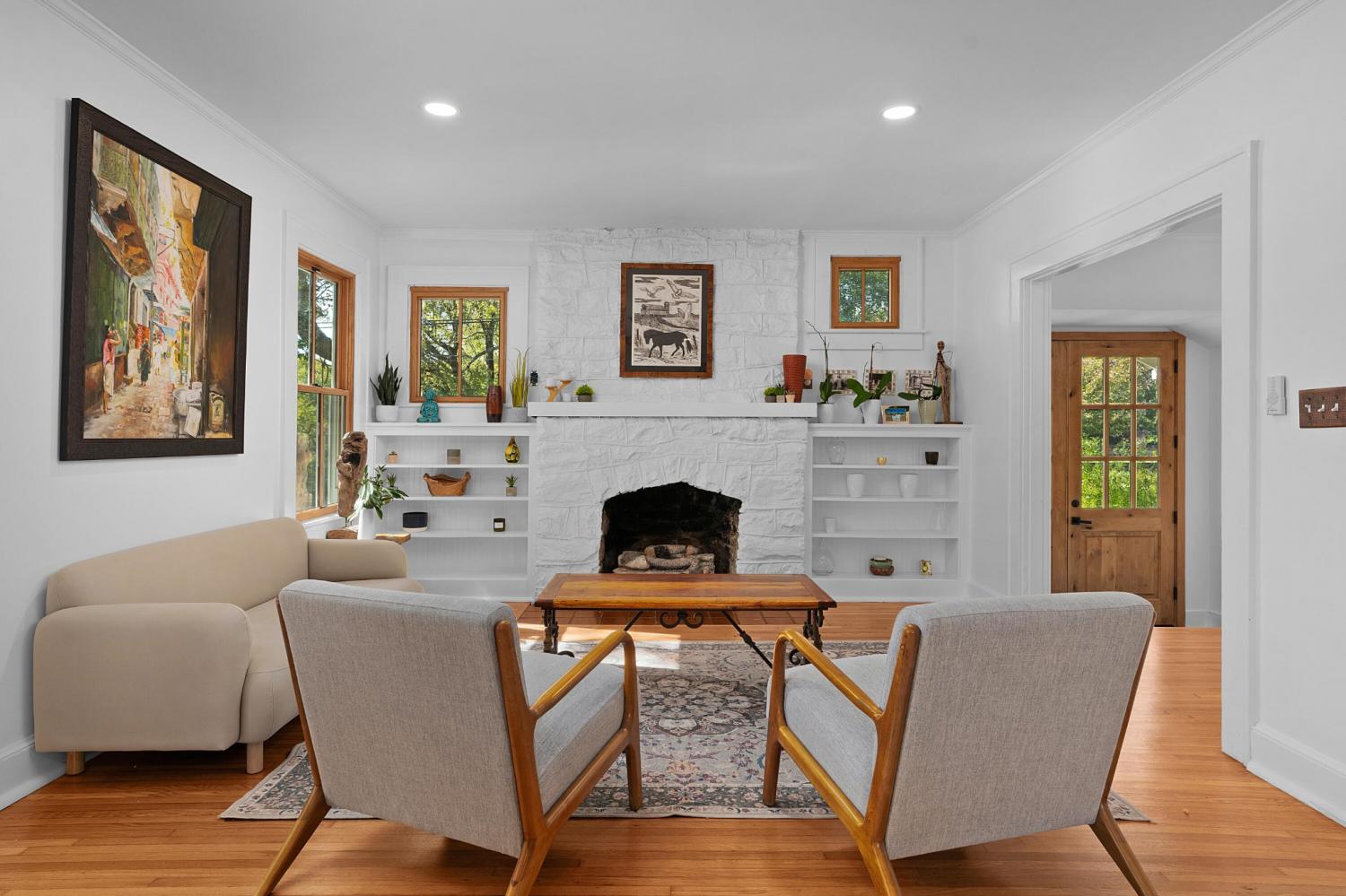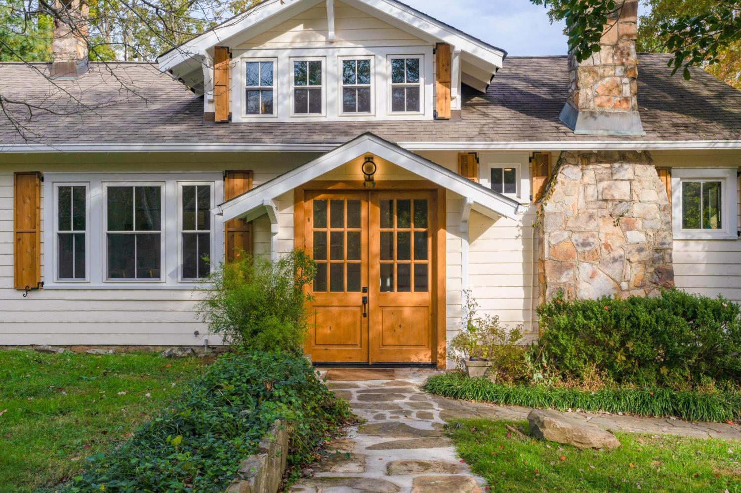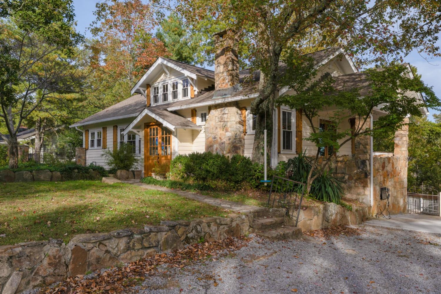 Fantastic opportunity in the heart of Lookout Mountain, TN within walking distance of the Commons community ball fields, tennis courts and playground ground, and Lookout Mountain Elementary School. Updated, yet so charming, 3 bedroom, 3.5 bath cottage on a .58 +/- partially wooded acre lot with curb appeal galore. You will especially love the wood and stone exterior and the new side circular driveway and parking area. The seller has also added retaining walls, a lower deck area with access to the original unfinished basement storage area, irrigation and cleared out several trees in the back while retaining the wooded privacy. Some notable interior improvements include the remodeled kitchen and baths, new windows and doors, new wiring, new plumbing, new paint inside and out, new tile, new lighting, new fixtures, new tankless water heater, raised ceilings with shiplap and new LVP flooring on the upper level, new EV charger, and more. Your tour begins with entry to the foyer via the double wood and glass doors. In fact, your eye will immediately be drawn to the new windows and doors throughout and the wonderful natural lighting they provide. The formal living room is to the right and boasts hardwood floors, a gas fireplace and access to the side covered stone porch and rear deck. The formal dining room is to the left and leads to the new kitchen which opens to the family room. The kitchen has an appealing chevron pattern tile floor, quartz countertops, tile backsplash, custom cabinetry with organizer system, under-cabinet lighting, black stainless appliances and copper accented dishwasher and farm sink. A side door leads to a covered entry and stone steps down to the rear yard. The central family room will quickly become a favorite spot in the house and leads to the laundry, powder and primary suite on one side, and the guest suite on the other.