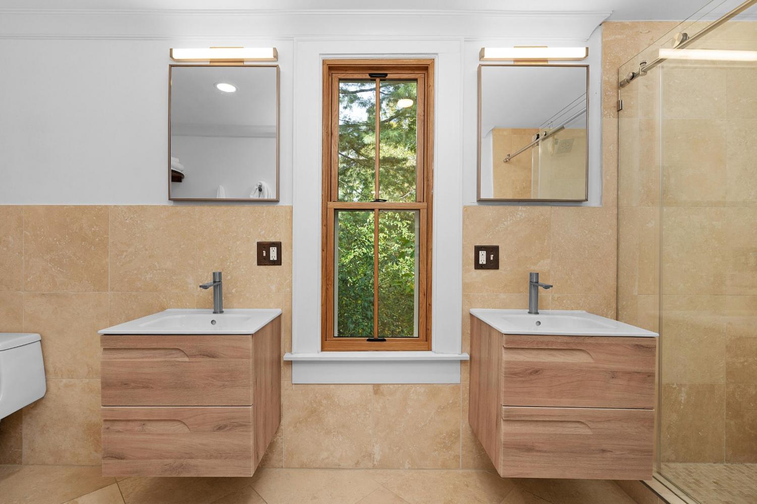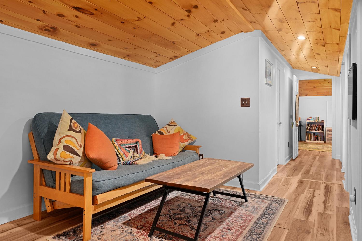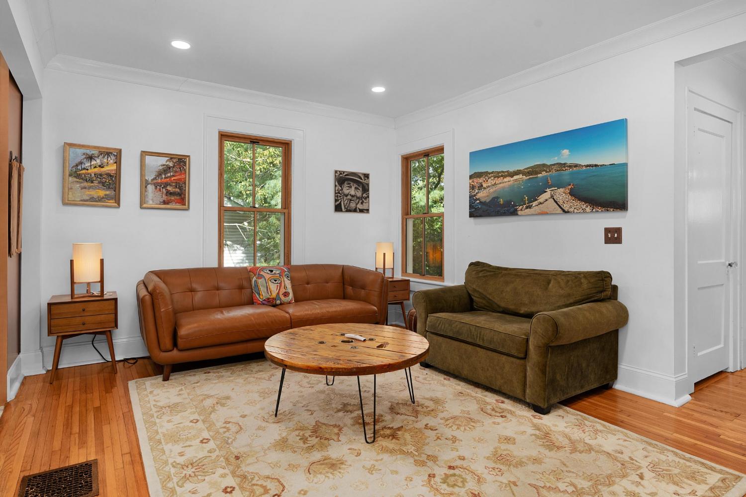 Fantastic opportunity in the heart of Lookout Mountain, TN within walking distance of the Commons community ball fields, tennis courts and playground ground, and Lookout Mountain Elementary School. Updated, yet so charming, 3 bedroom, 3.5 bath cottage on a .58 +/- partially wooded acre lot with curb appeal galore. You will especially love the wood and stone exterior and the new side circular driveway and parking area. The seller has also added retaining walls, a lower deck area with access to the original unfinished basement storage area, irrigation and cleared out several trees in the back while retaining the wooded privacy. Some notable interior improvements include the remodeled kitchen and baths, new windows and doors, new wiring, new plumbing, new paint inside and out, new tile, new lighting, new fixtures, new tankless water heater, raised ceilings with shiplap and new LVP flooring on the upper level, new EV charger, and more. Your tour begins with entry to the foyer via the double wood and glass doors. In fact, your eye will immediately be drawn to the new windows and doors throughout and the wonderful natural lighting they provide. The formal living room is to the right and boasts hardwood floors, a gas fireplace and access to the side covered stone porch and rear deck. The formal dining room is to the left and leads to the new kitchen which opens to the family room. The kitchen has an appealing chevron pattern tile floor, quartz countertops, tile backsplash, custom cabinetry with organizer system, under-cabinet lighting, black stainless appliances and copper accented dishwasher and farm sink. A side door leads to a covered entry and stone steps down to the rear yard. The central family room will quickly become a favorite spot in the house and leads to the laundry, powder and primary suite on one side, and the guest suite on the other.