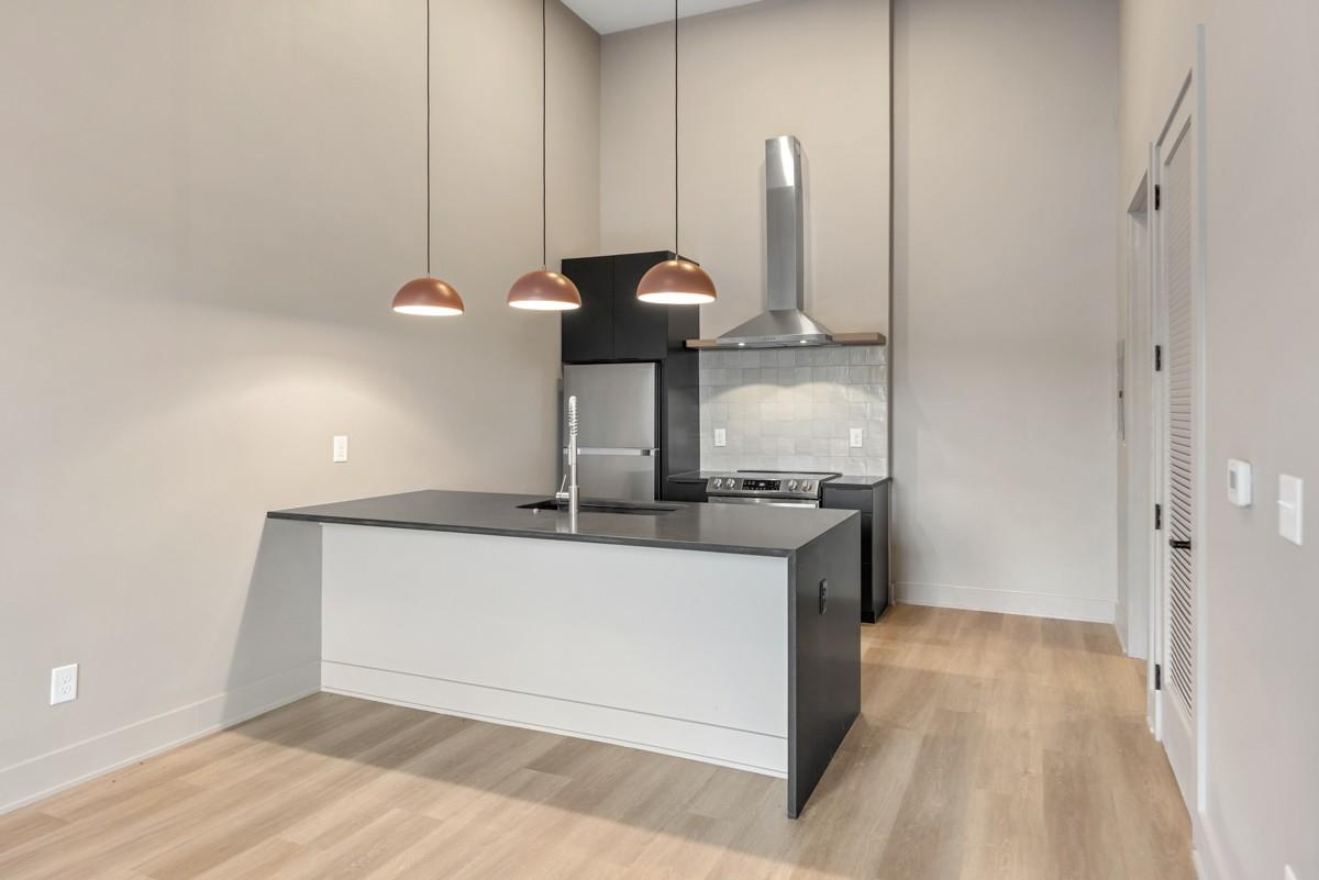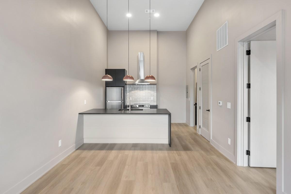 **$10K seller credit incentive and $500 E+ROSE gift card for new contracts receive by December 31, 2025! Inquire for details.** 16' ceiling on this unit! The residences at The Haysboro, raising the bar for condos in East Nashville's Inglewood neighborhood. An upscale classic mid-century inspired brick exterior designed by Pfeffer-Torode Architecture. An elegant grand lobby with a vaulted ceiling and mid-century details connects to the newly opened E+ROSE Cafe, which occupies the building’s corner retail space. Not your typical starter condo, this building will appeal to a more sophisticated buyer who will appreciate details like solid core doors, waterfall counters, granite sink, slow close cabinets, frameless shower glass, wide plank floors, as well as outdoor lounges on the 2nd and 3rd floors. The Haysboro’s versatile zoning can accommodate many modern day condo considerations and will appeal to owner occupants, second home buyers and investors alike.