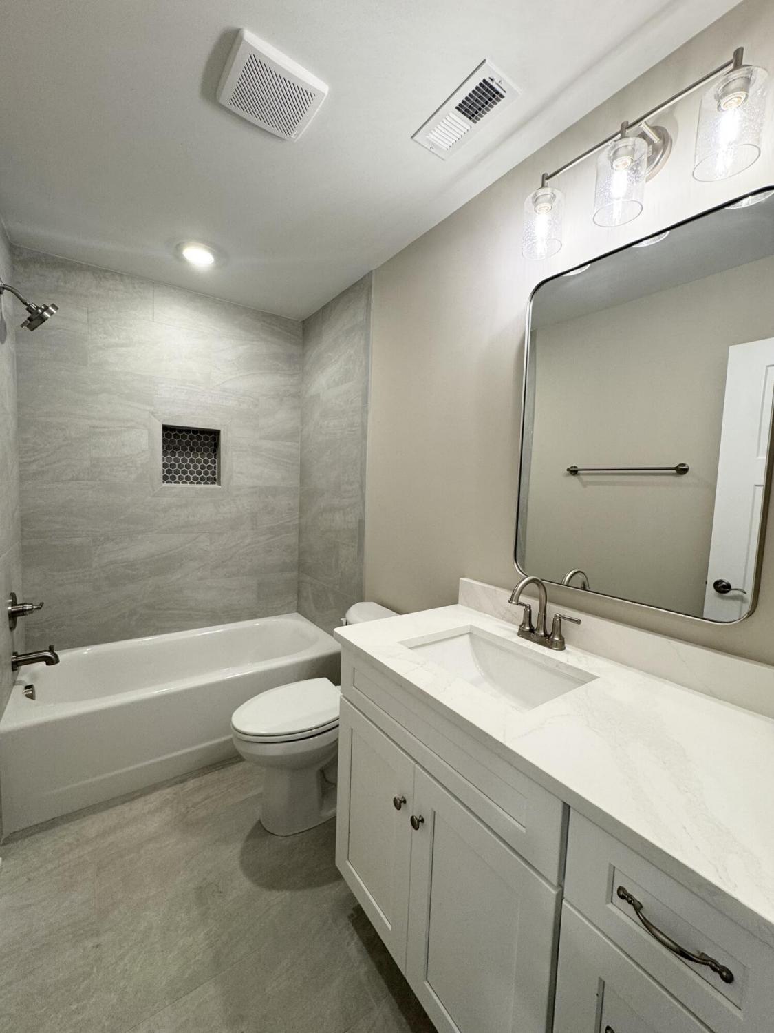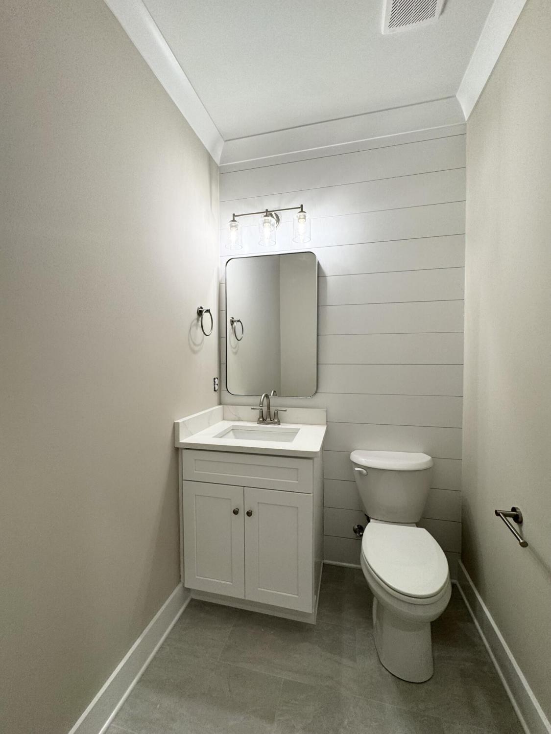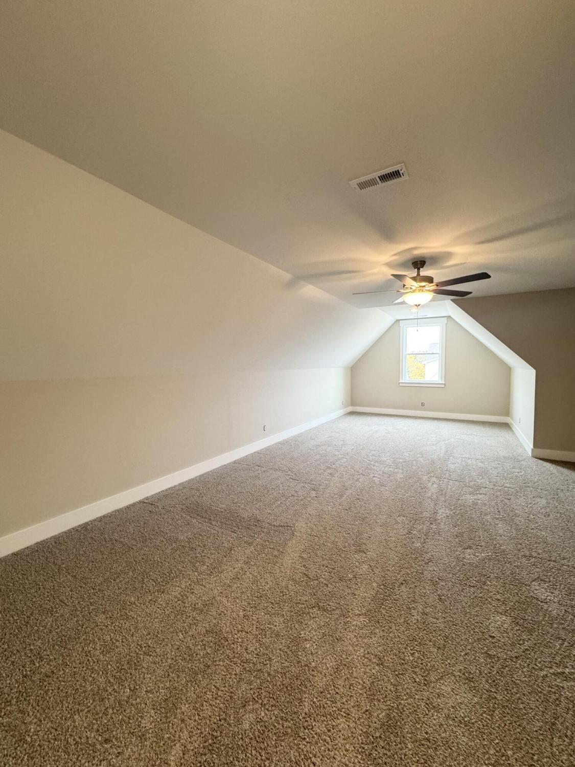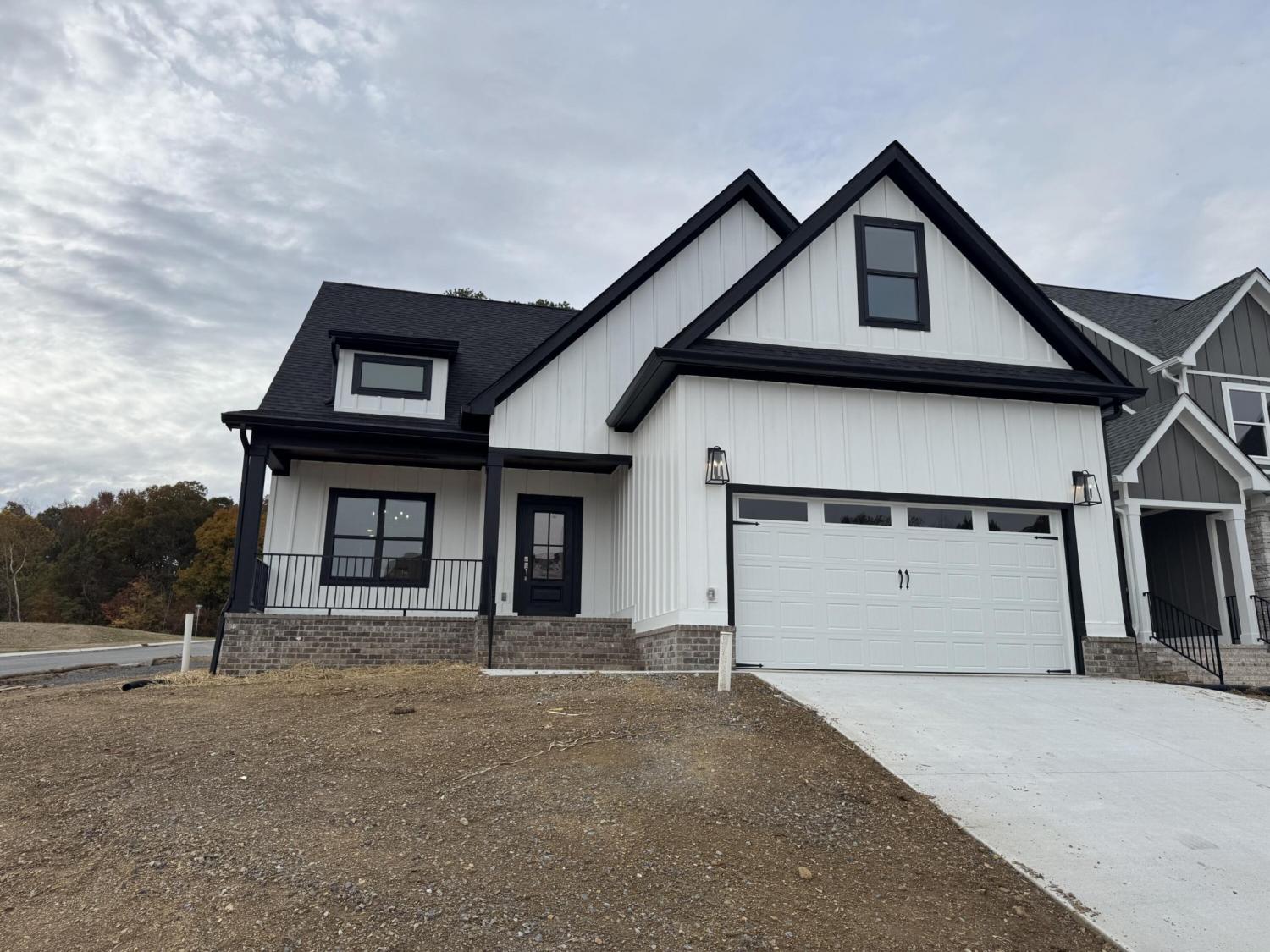 This sleek, new home showcases high contrast elements with a minimalist design of a simple, uncluttered facade of modern white and black trim, with brick, that creates a timeless look. Inside you will find many upgrades for one price throughout: A versatile entryway bench that provides seating, storage, as the designated landing zone, quartz countertops, custom stained wood tongue and groove ceilings, generous custom molding and trim, popular board n batten and shiplap accents of woodwork, extensive recessed lighting, modern color choices, fixtures, ceramic tile, remote lights and hardwood flooring. *Zero carpeting on the main level* Convenience is the theme of this home including the main level laundry room with upper storage cabinets and half bath for guests. The open kitchen gives an island, breakfast space, tile backsplash, under cabinet lighting, stainless steel built-in appliances and cabinet storage creating a highly efficient workflow that is easy for entertaining. Separate dining room transitions easily right off the kitchen. High ceiling in the living room with shiplap fireplace and custom stained wood mantle to decorate. The doorwall to the outdoor living space with a covered deck overlooks direct access to the treed community spaces. The large main level primary suite is tucked to the back of the home with a private en-suite bathroom hosting dual vanities, extra large custom tiled walk-in shower with bench seating, triple shower head system that includes rain shower with separate handheld, trackless glass door and walk-in closet. Allowing privacy for both guests and homeowners, upstairs you will find two additional bedrooms and second bathroom with upgraded tile tub and shower combo. Plus a finished bonus room or use as the 4th bedroom, that could be ideal for a second family room, media space or another relaxing space for extended stay guests.