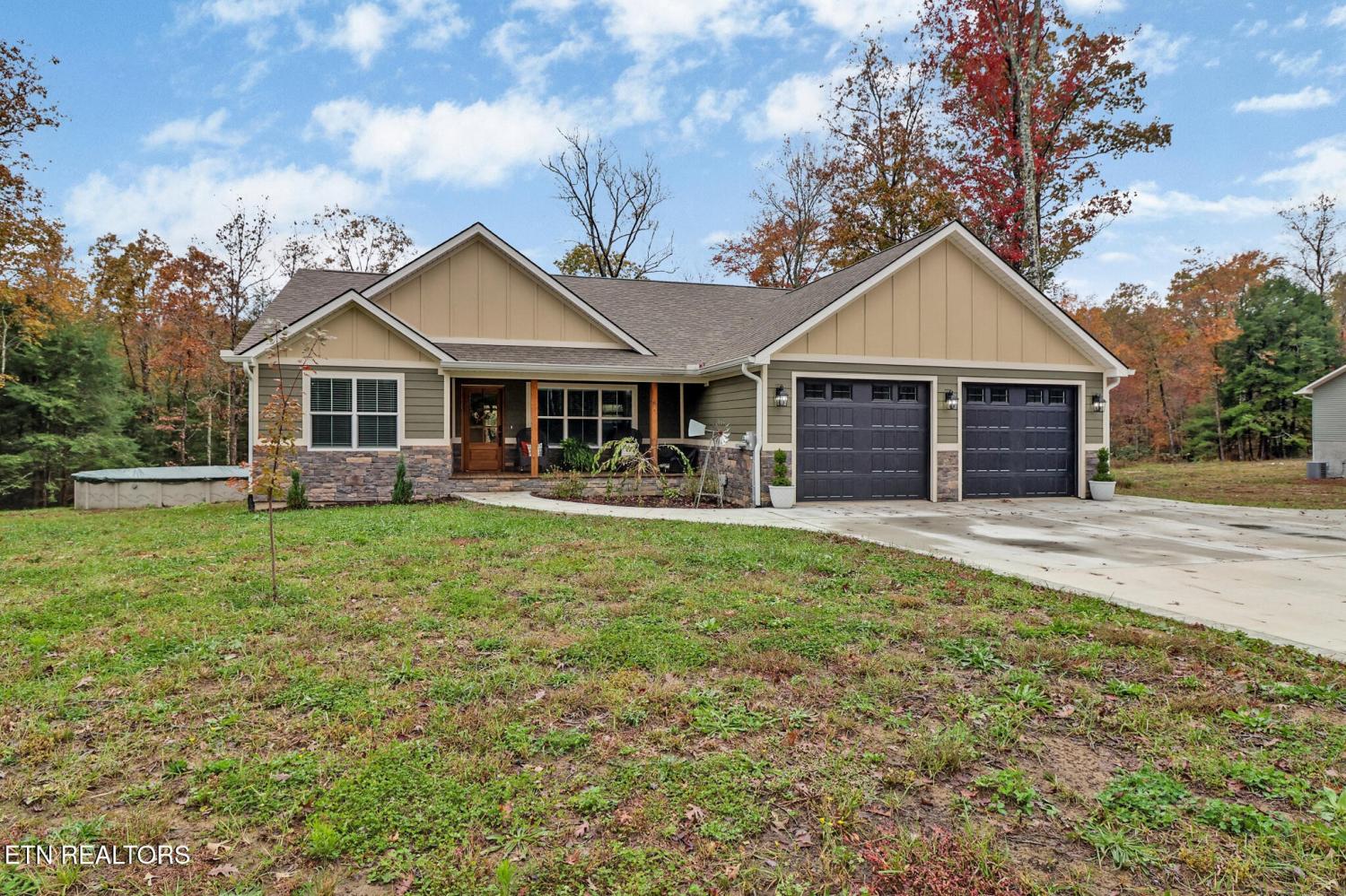 Bells & whistle surround this stunning hardboard & stone exterior home with covered front & back porch. Located in highly sought after neighborhood. Nice rolling yard dotted with hemlocks to add to the park like setting. Inside you will be welcomed in from the cathedral ceiling to the rustic laminate & tile flooring, gas fireplace to add coziness. Dream kitchen with white shaker cabinets and quartz countertops with a bar to serve family or guest. Mud room area off garage with build in shelving. Venture on into the master suite to find huge walk in closet, walk in tile shower, double vanity, grab a good book and curl up by the large window and relax. Spacious bedrooms with large closets, large laundry room with utility sink. This home is a must see to take in all the beauty and comfort this home has to offer. Call today to view.
