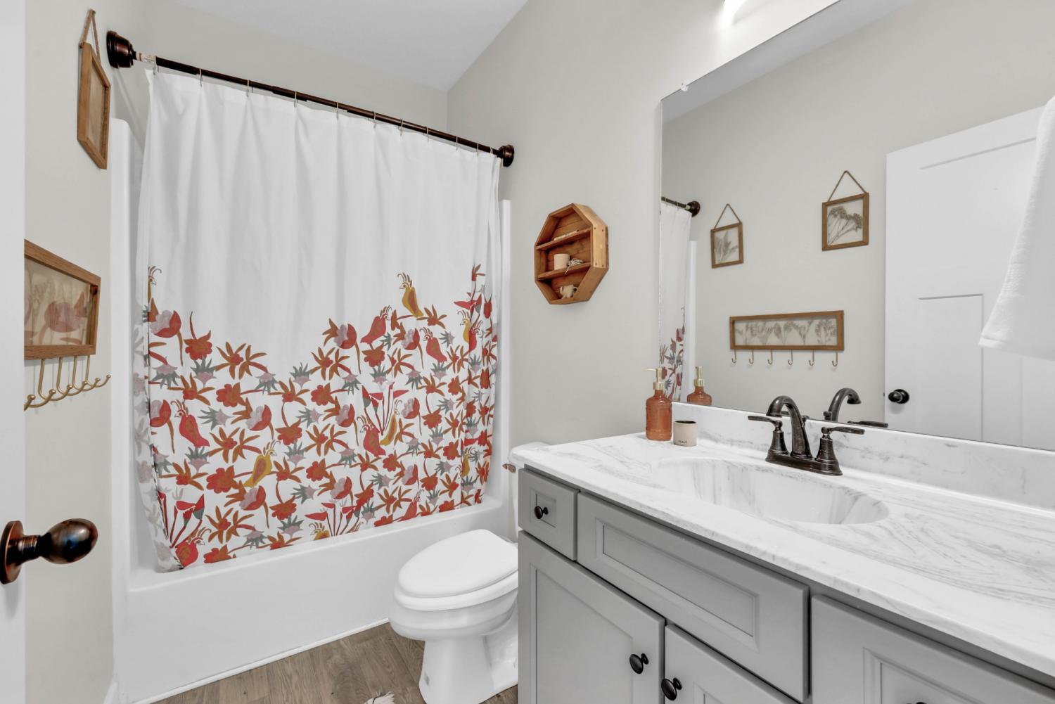 BEAUTIFUL, ranch-style home, on a PRIVATE 1.2 acre lot IN THE COUNTRY! Far from all of the hustle and bustle, you'll find everything you need, on ONE-LEVEL; an OPEN FLOORPLAN, spacious bedrooms, and LVP flooring throughout the common areas. You're sure to IMPRESS YOUR GUESTS with a welcoming covered porch, sky-high 9ft ceilings, and UPGRADED ACCENTS throughout the home. All of this, TUCKED AWAY between rows of MATURE TREES providing a front AND backyard space, that's PEACEFUL and enjoyable for everyone!