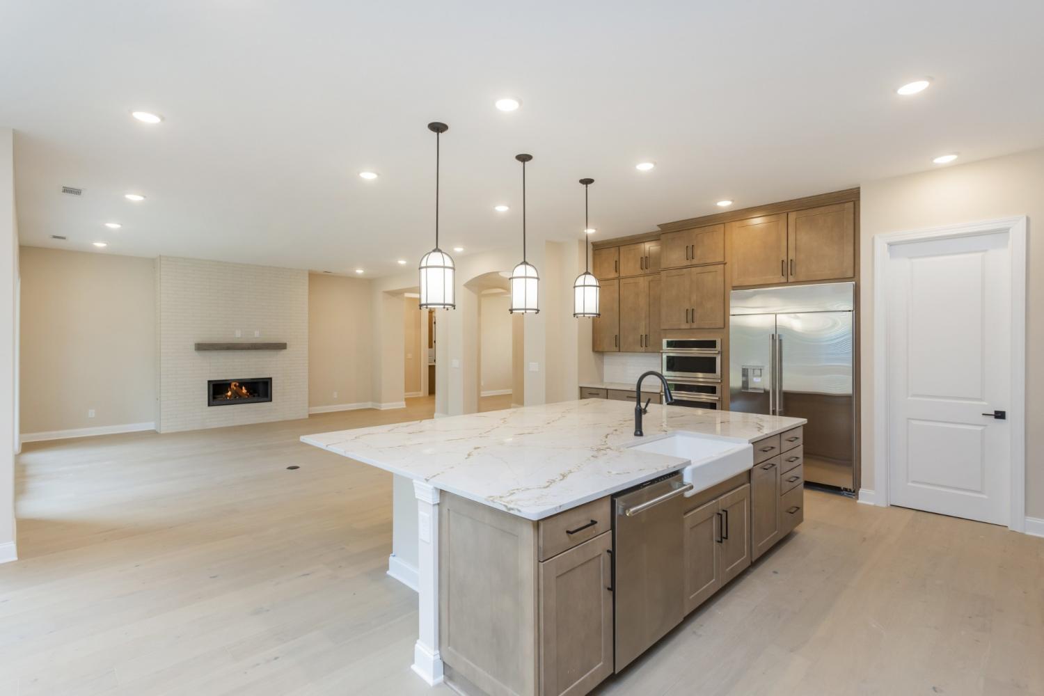 CONCISE LUXURY LISTING: THE Henley PLAN AT AUGUST PARK (LOT 220) Estate style home in AUGUST PARK. The Harmon plan offers ALMOST ALL ONE-LEVEL LIVING with the feel of a custom estate. Enjoy COZY PRIVACY backed by a MATURE TREE LINE. This home will NOT DISAPPOINT. The main level has HIGH CEILINGS, 8-FOOT DOORS, HARDWOOD, and extensive TRIM WORK. A WIDE ENTRY flows past a GRAND FORMAL DINING ROOM and two GUEST SUITES with a JACK AND JILL BATH. The SPLIT FLOOR PLAN places the private PRIMARY SUITE on its OWN PRIVATE HALL with a SPA-LIKE BATHROOM and EASY ACCESS TO THE LAUNDRY room. The kitchen is the ultimate ENTERTAINING HOME centerpiece: a VACATION HOME scale with an OVERSIZE CENTER ISLAND, MONOGRAM STAINLESS STEEL APPLIANCES, GAS APPLIANCES, and SOFT CLOSE CABINETS. The living area extends to a BACK COVERED PORCH via a dramatic SLIDE AWAY GLASS DOOR. Daily utility is streamlined with a DROP ZONE in the MUDROOM. The flexible upstairs includes a huge MOVIE/GAME ROOM and an EXTRA PRIVATE GUEST SUITE, complemented by abundant EXTRA CLOSETS and WALK-IN ATTIC STORAGE. UPGRADE YOUR LIFESTYLE with this GRAND and efficient design.