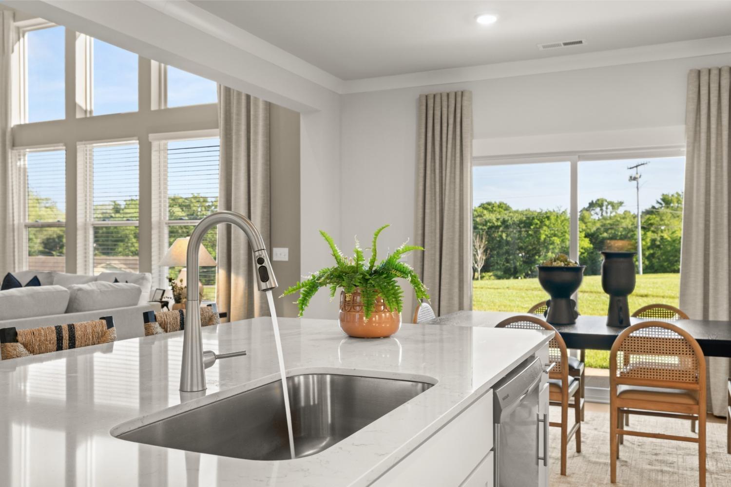 The first floor of this two-story home shares an open layout between the kitchen, nook and family room for easy entertaining and access to the patio for outdoor lounging. A more formal dining room is at the front of the home for dinner parties and a study to work from home. Two bedrooms are on the first floor, including a luxe owner's suite and a secondary bedroom, ideal for overnight guests. Upstairs are three secondary bedrooms, a versatile game room and a media room for added living space. *Images from a furnished model of this home. Actual configuration and features may vary.