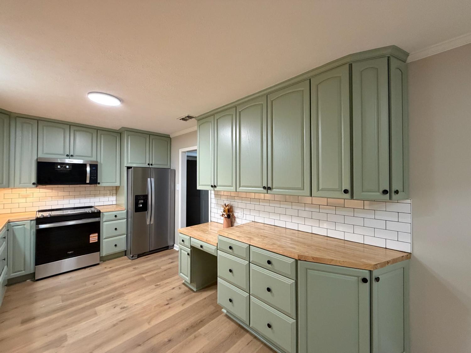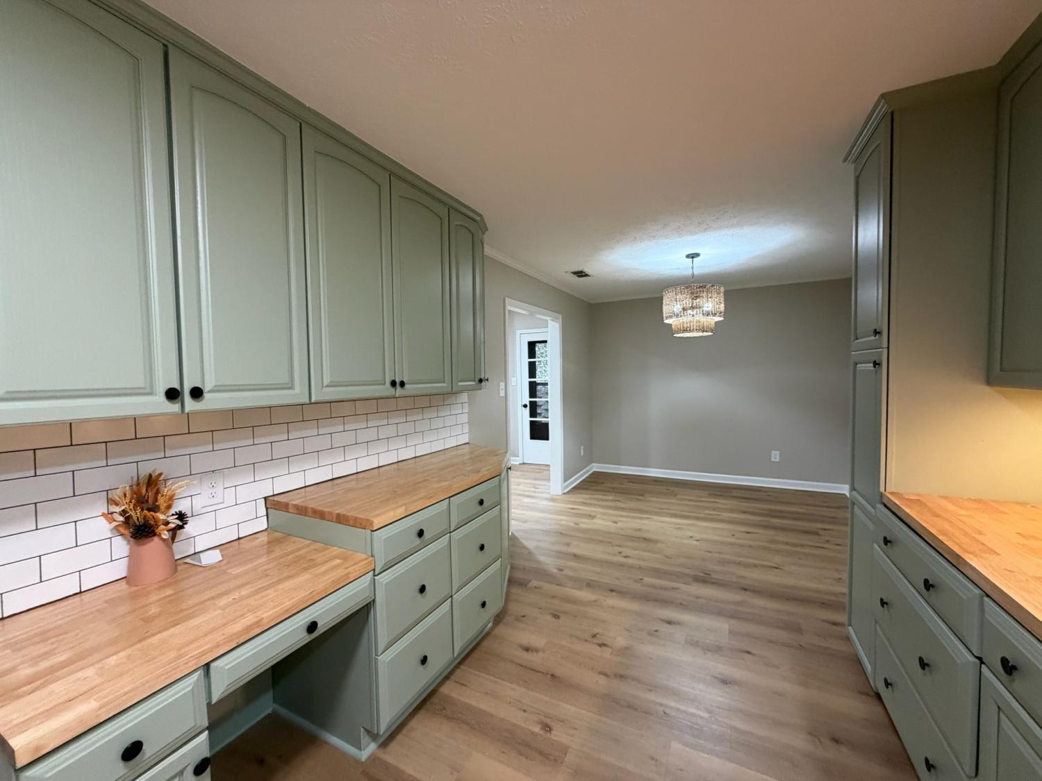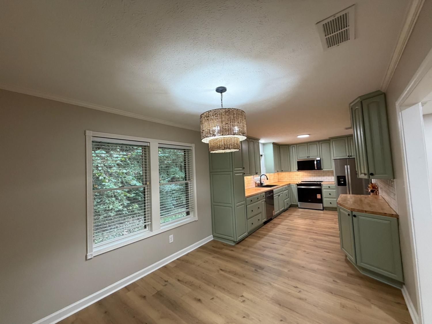 Beautifully updated 3-bedroom, 3-bath home featuring all-new LVP flooring throughout, fresh paint, and fully remodeled bathrooms. The kitchen stands out with sage green cabinets, subway tile backsplash, new stainless-steel appliances, new disposal, butcher block countertops, and a cabinet pantry with pull-out drawers for easy organization. The primary bathroom features a stunning tile shower, offering a modern touch. Enjoy peace of mind with a new roof, new siding, new gutters with gutter guards, and a one-year 2-10 Home Buyers Warranty included. Spacious bedrooms, stylish finishes, and thoughtful updates make this home truly stand out. Conveniently located just minutes from I-40, schools, shopping, and dining.
