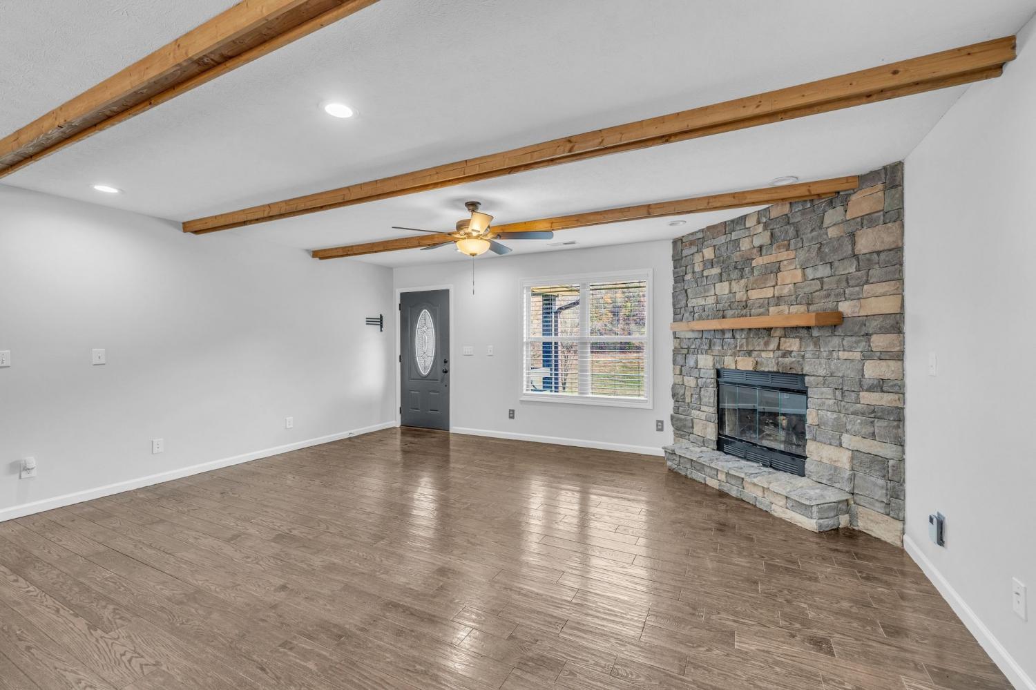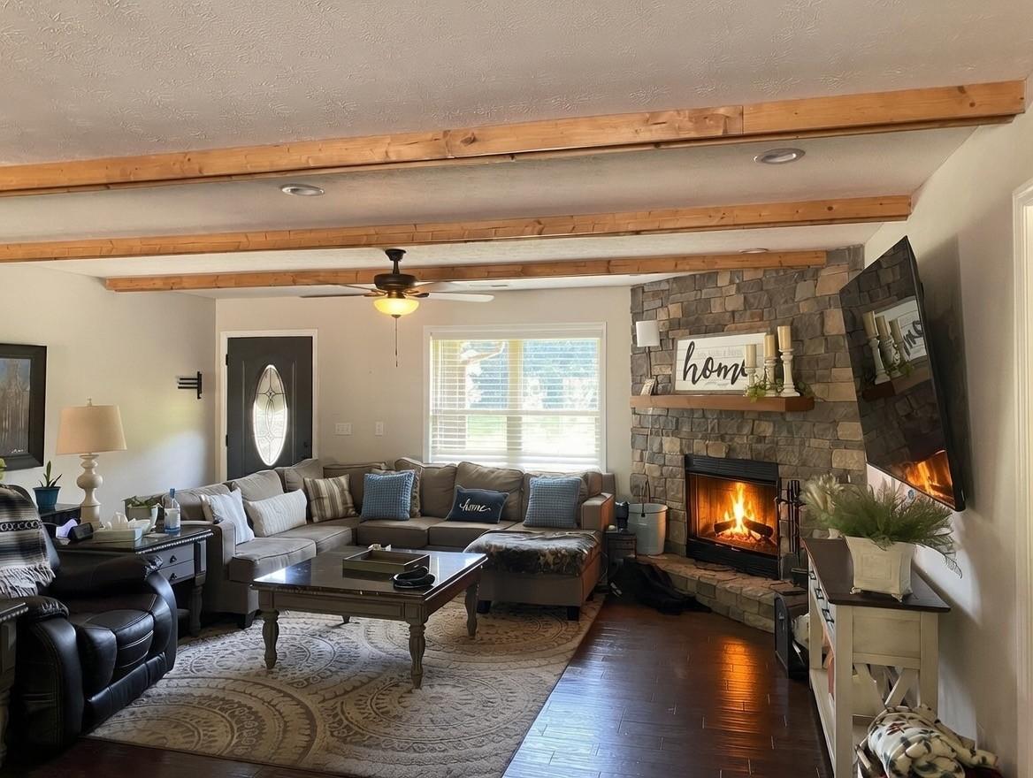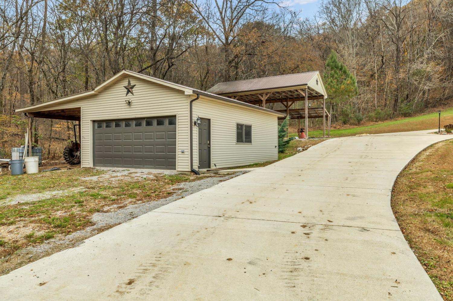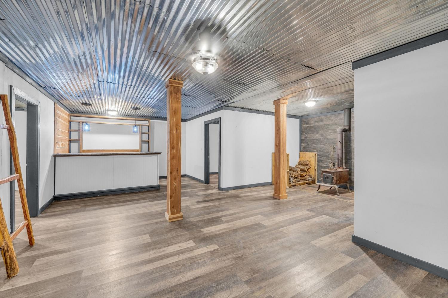 Minutes from town, nestled on 71.5-acres this remarkable property offers a harmonious blend of natural beauty and modern amenities. The property includes a 20x30 shop equipped with power, a lean-to, and a pole barn—ideal for hobbyists or storage needs. A serene pond and picturesque views enhance the appeal, making a perfect retreat for nature lovers. The charming home features three bedrooms, two full baths with tile showers, the finished basement offers an optional fourth bedroom and full bathroom. The basement includes a custom oak bar with granite countertop, cozy wood-burning stove add character, while the two-car attached garage provides convenience. The family room has a stone wood-burning fireplace, and hardwood floors that seamlessly connect to the open dining area and kitchen, creating a warm and inviting atmosphere. Outdoor entertaining is a breeze with a covered back porch, an expanded patio complete with a swim spa with hot tub, and composite decking. Modern comforts are assured with high-speed internet and a new HVAC unit installed in 2024, while e-shield insulation in the attic enhances energy efficiency. This property is a dream come true for hunting enthusiasts and anyone seeking a peaceful escape close to town. Property has been subdivided into individual lots & could easily have several homes built on the various tracts.