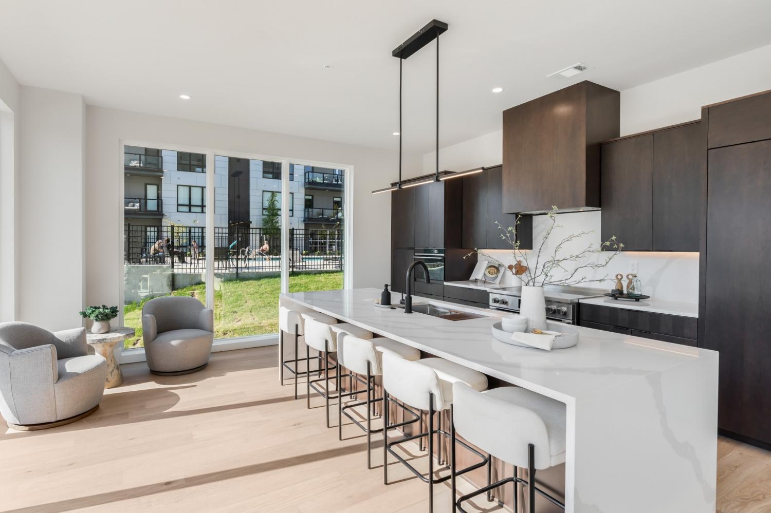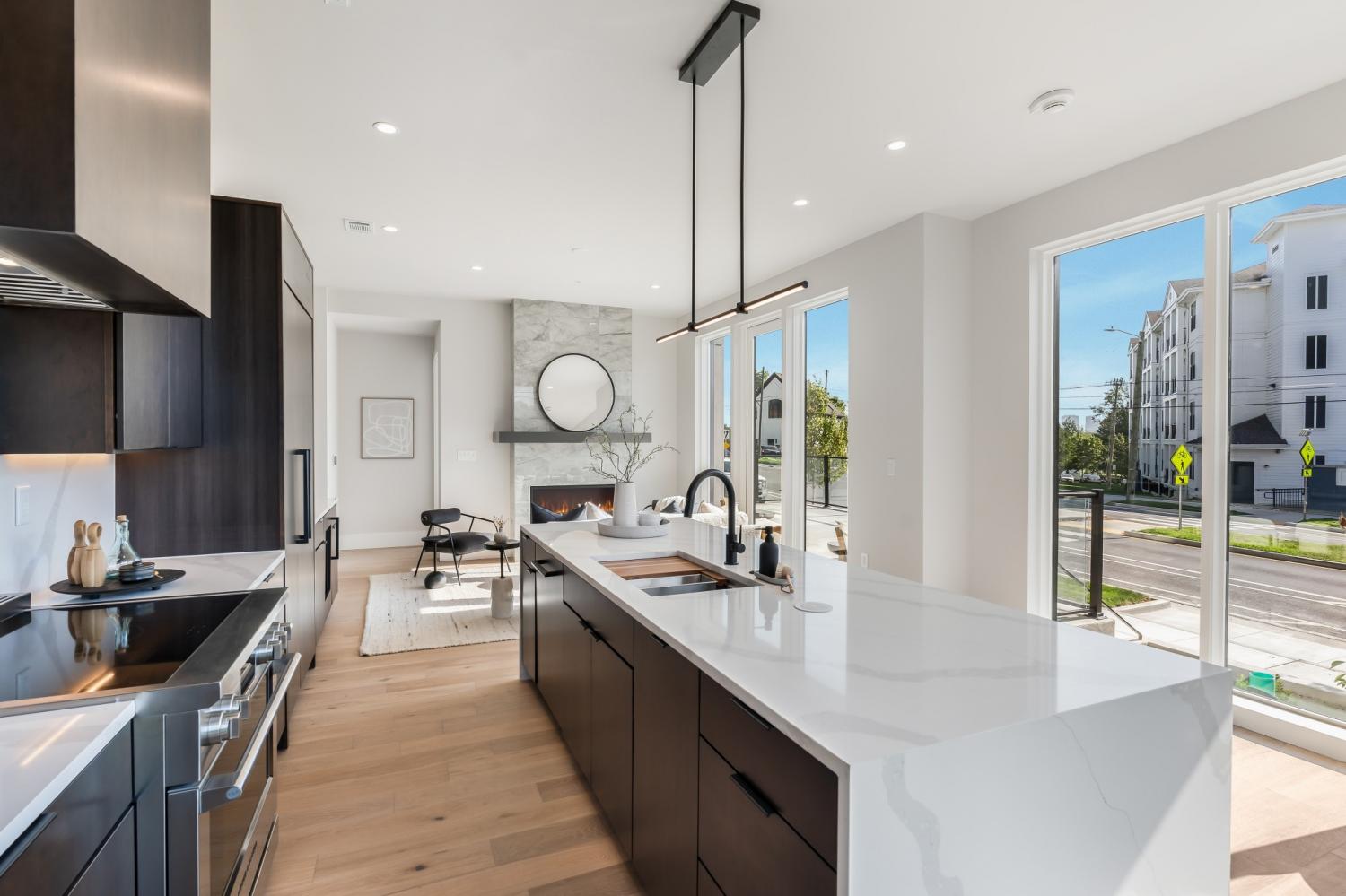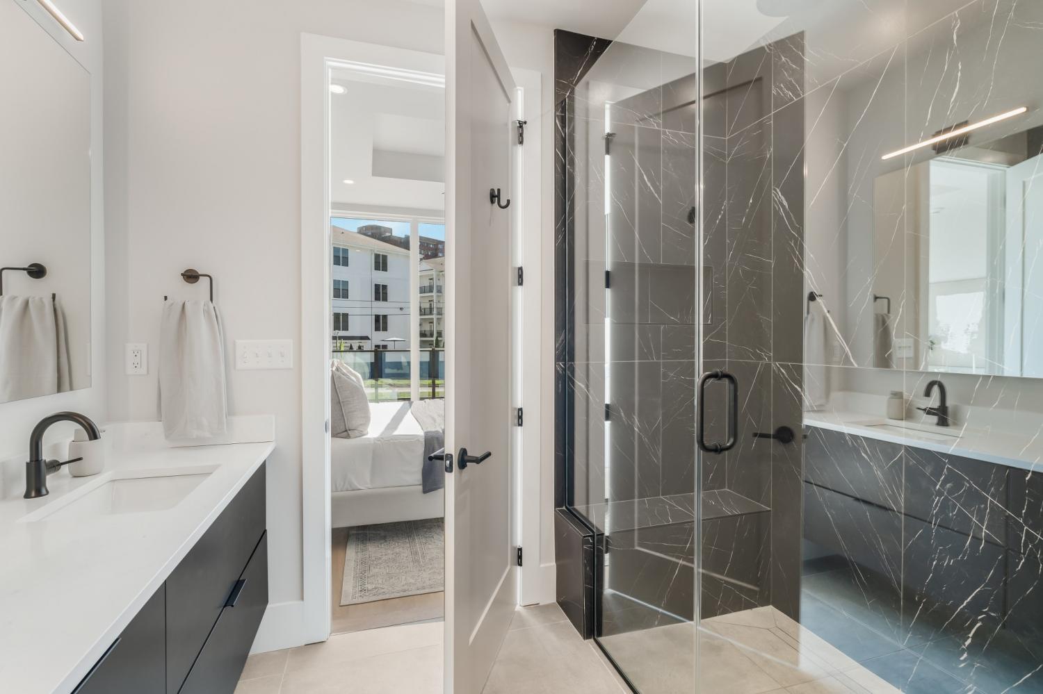Sophisticated Urban Living Near Centennial Park Experience refined city living in this brand-new, rare two-bedroom, two-bath corner residence that blends the spaciousness of a townhome with the convenience of a condominium. Enjoy the ease of high-rise living—without the high-rise hassle. Perfectly positioned just off West End Avenue, this premier location offers quick access to the best of the city while avoiding the congestion of downtown traffic. Step outside your door and stroll directly to Centennial Park and the iconic Parthenon. This exceptional building offers garage parking, ample guest parking, and unparalleled amenities that rival the finest in Nashville. Residents enjoy breathtaking skyline views, 24/7 on-site staff, and an impressive suite of shared spaces, including the Terrace Lounge, Sky Lounge, and an expansive rooftop amenity deck. Indulge in the resort-style pool, sauna, cold plunge, state-of-the-art fitness center, and multiple comfort stations designed for relaxation and socializing. Inside, this home showcases premium finishes and modern elegance throughout. The chef’s kitchen features Fisher & Paykel appliances, Calacatta quartz waterfall countertops, and an open-concept layout flowing seamlessly into the living area with floor-to-ceiling windows, a gas fireplace, and a private terrace—ideal for entertaining or unwinding. The spa-inspired primary bath offers a zero-entry shower and a sophisticated, serene design. Photos are from previous staging; terrace has been virtually staged for illustration.
