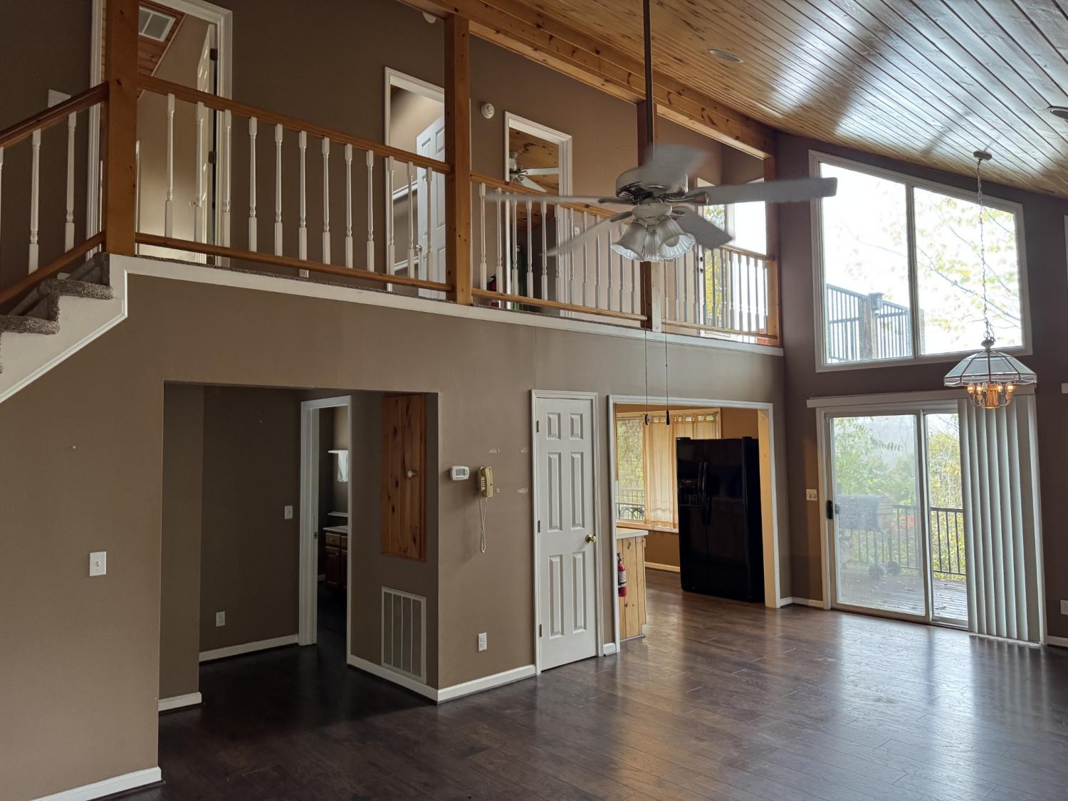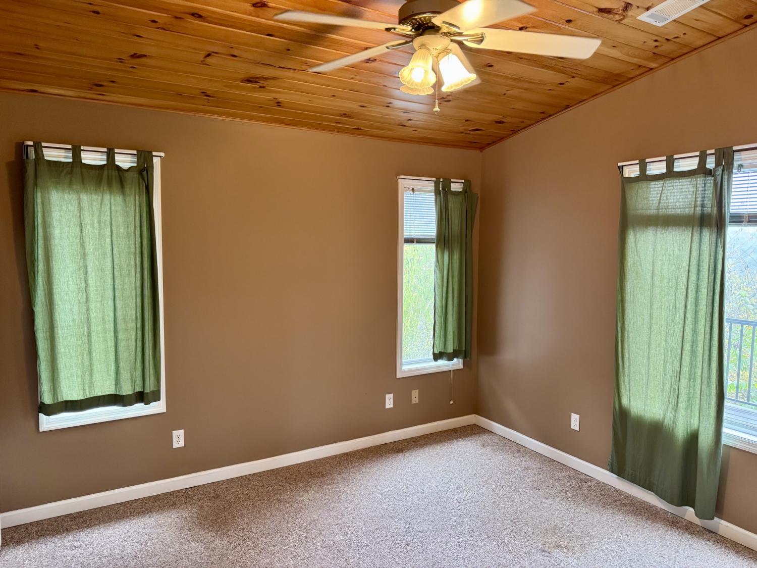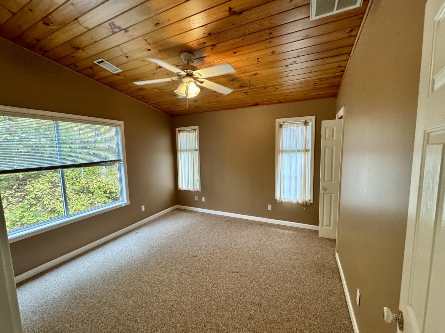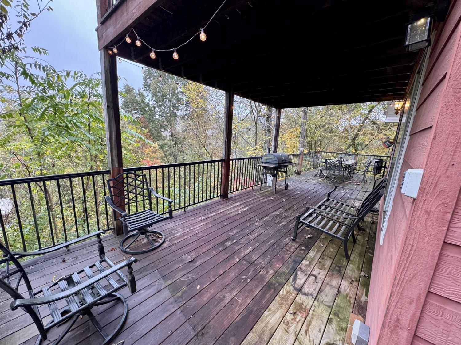 Overlooking Eagle Creek, this cabin has an open floorplan with beautiful views. The kitchen opens into a large living room with a wood burning fireplace. This property is an estate, and is being sold in as-is condition.