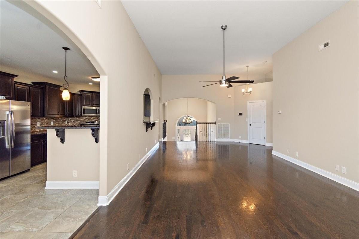 Welcome to 261 Fantasia Way — a beautiful split level home on a corner lot offering the perfect blend of comfort, functionality, and location! Inside, you’ll find real hardwood floors, fresh paint throughout, and newly cleaned carpets in the bedrooms. The main living area features a stone gas fireplace that adds warmth and coziness to the space. The eat-in kitchen includes granite countertops, stainless-steel appliances, a tile backsplash, and a pantry, while the formal dining room is ideal for family meals or entertaining. Upstairs offers three spacious bedrooms, including an expansive primary suite with tray ceilings, a sitting area, double vanities, a tile walk-in shower with dual shower heads, and a large walk-in closet. The lower level provides incredible versatility with a second living room, a flexible mother-in-law suite / 5th bedroom or private downstairs office, plus an additional bedroom and nearby full bath — perfect for guests, teens, or anyone needing extra privacy. Enjoy outdoor living in the fenced-in backyard with a covered deck and a second covered patio below — ideal for relaxing or entertaining year-round. The three-car garage includes one oversized bay perfect for a boat, camper, or workshop, and a RainSoft water-softener system adds an extra touch of comfort. Boasting one of the largest floorplans in the desirable Farmington subdivision, you will also enjoy sidewalks, ponds, a playground, basketball court, gazebo, and walking trail. Zoned for the highly sought-after Kirkwood School District, and convenient to shopping, dining, and Dunbar Cave State Park, this home delivers both comfort and community in one of Clarksville’s most popular areas.