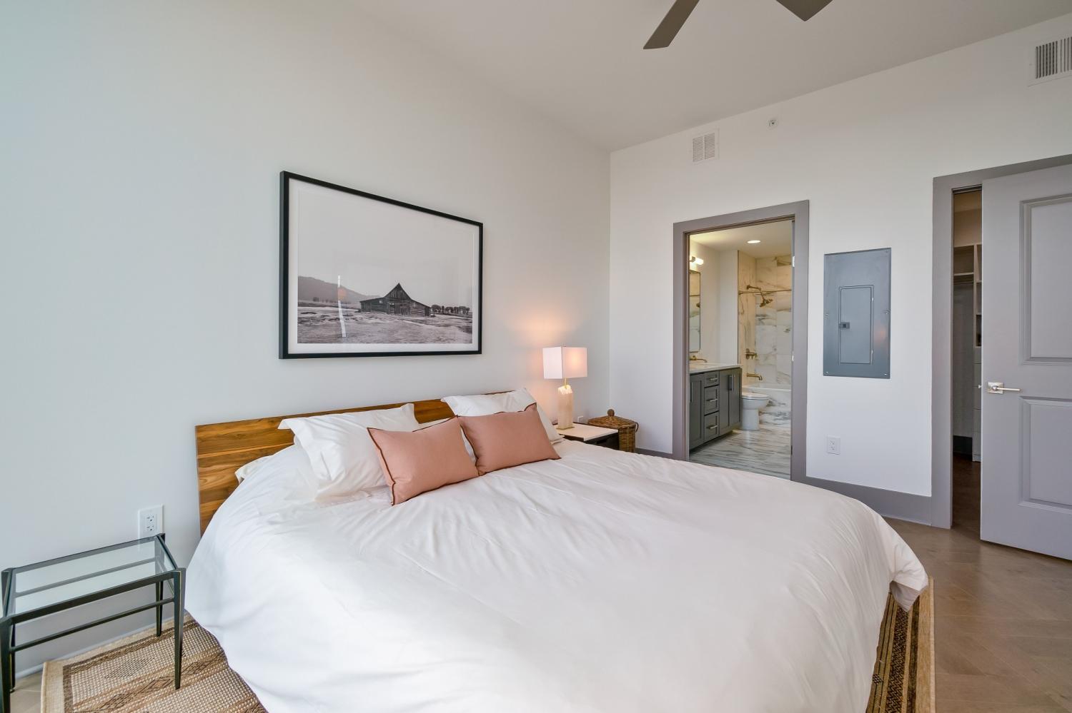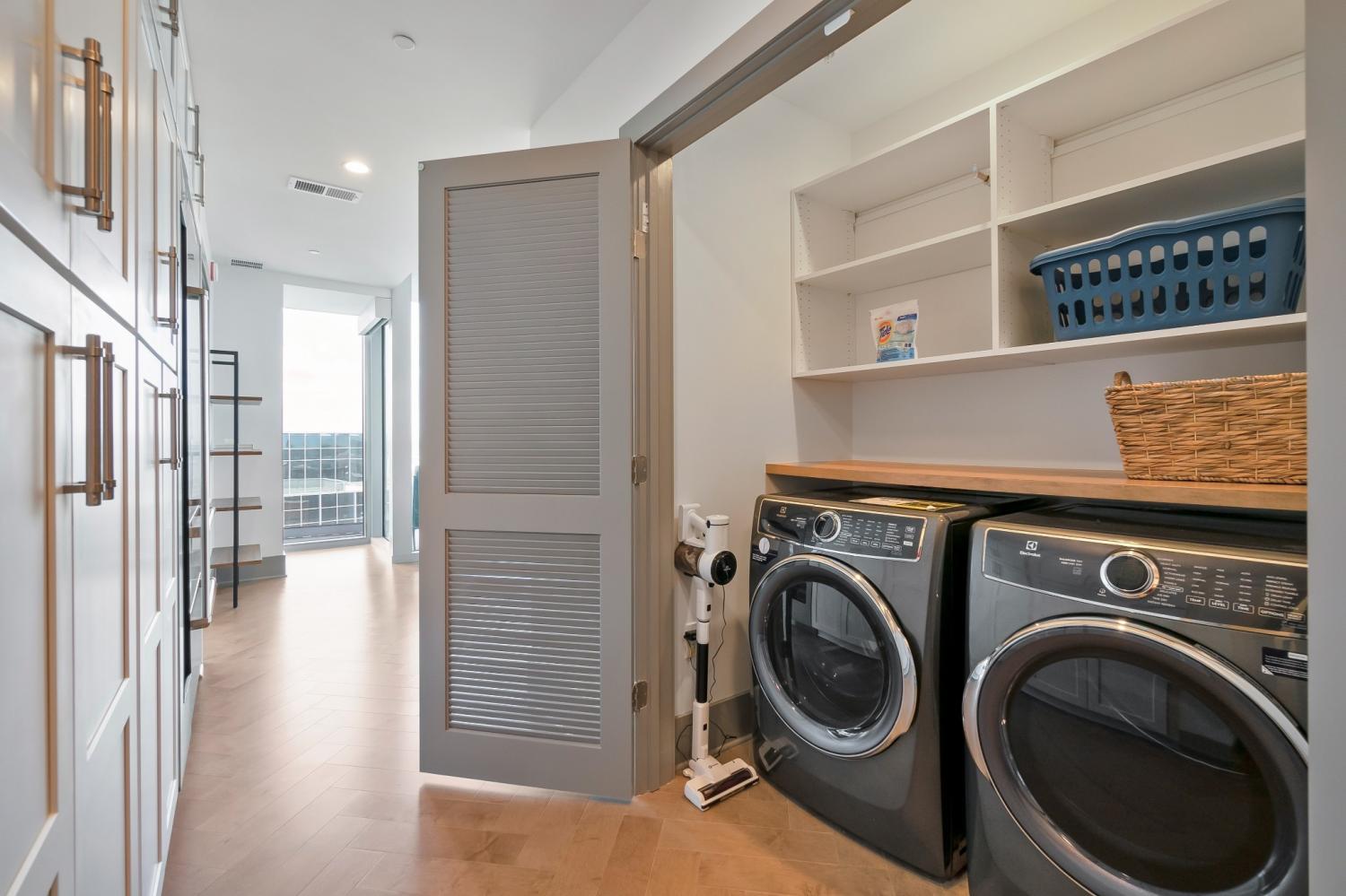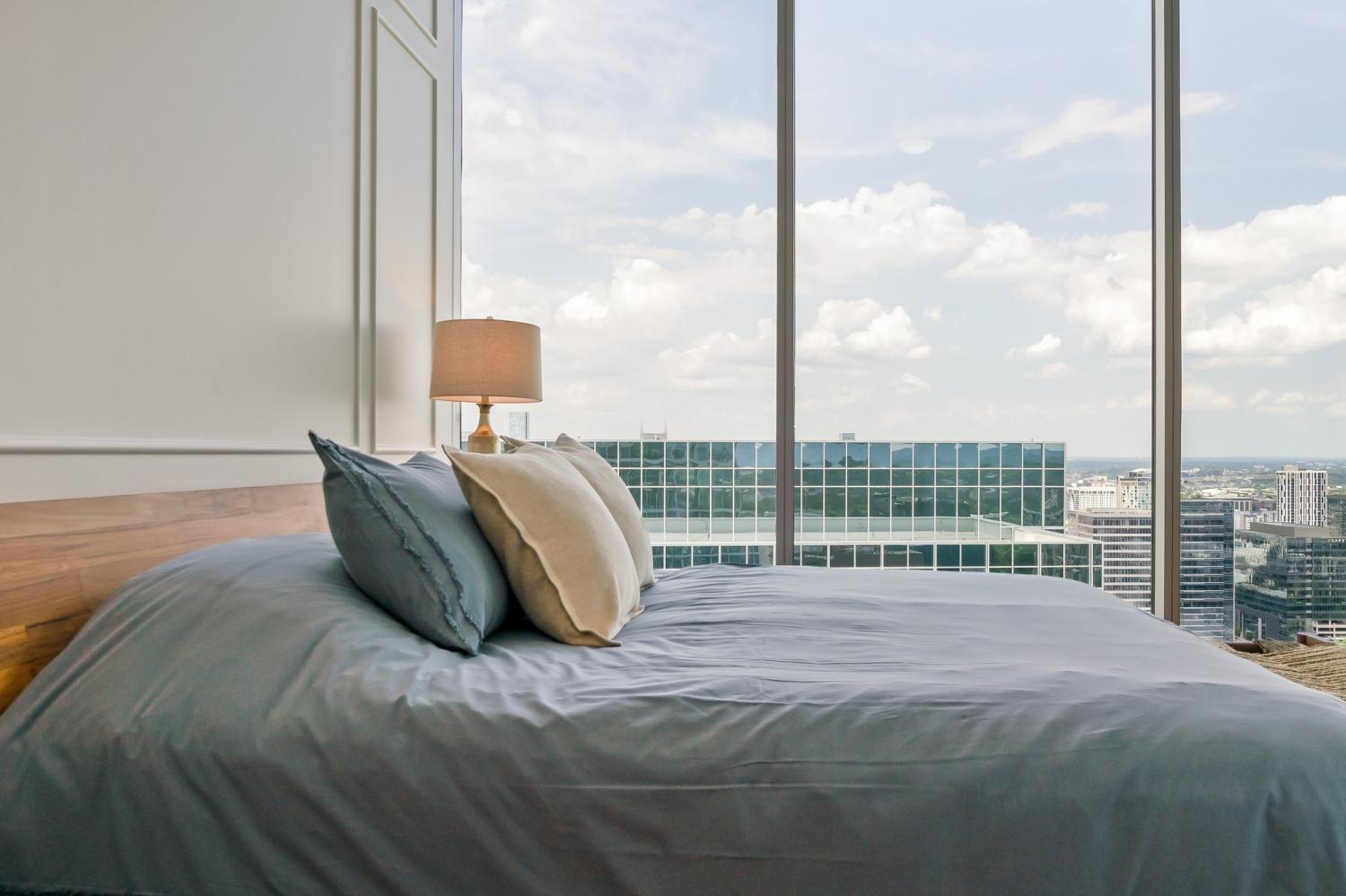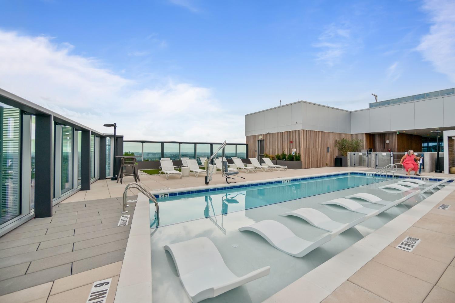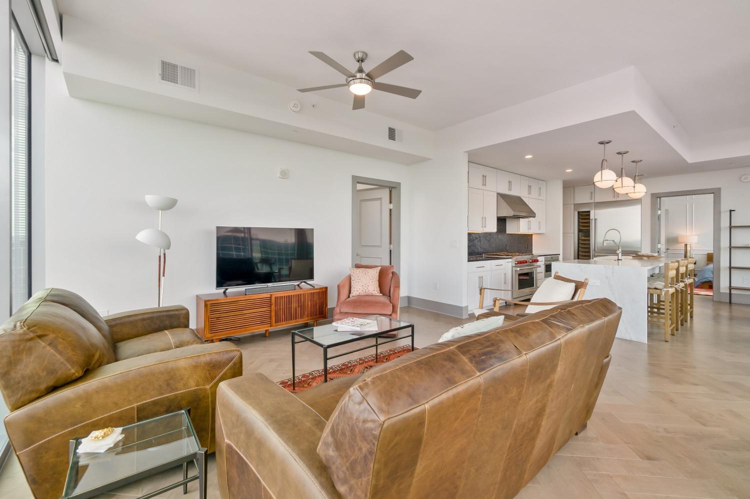 Fully-furnished corner unit for rent in Nashville's premier luxury high rise, Broadwest. This 30th floor condo has amazing views of downtown, Vanderbilt, and midtown. Featuring Sub-zero and Wolf appliances, herringbone wood floors, marble countertops and high-end details throughout. Primary suite highlights: double vanity, oversized shower, and walk-in closet. Motorized shades for all windows and full size washer/dryer in unit. Enjoy access to the 34th floor resort-style amenities including a rooftop pool, steam room, sauna, golf simulator, fitness center and more. Plus services provided through the Conrad Hilton Hotel: room service, valet parking, housekeeping, & laundry. This unit is fully furnished, including linens and kitchen & comes with two assigned garage parking spots.