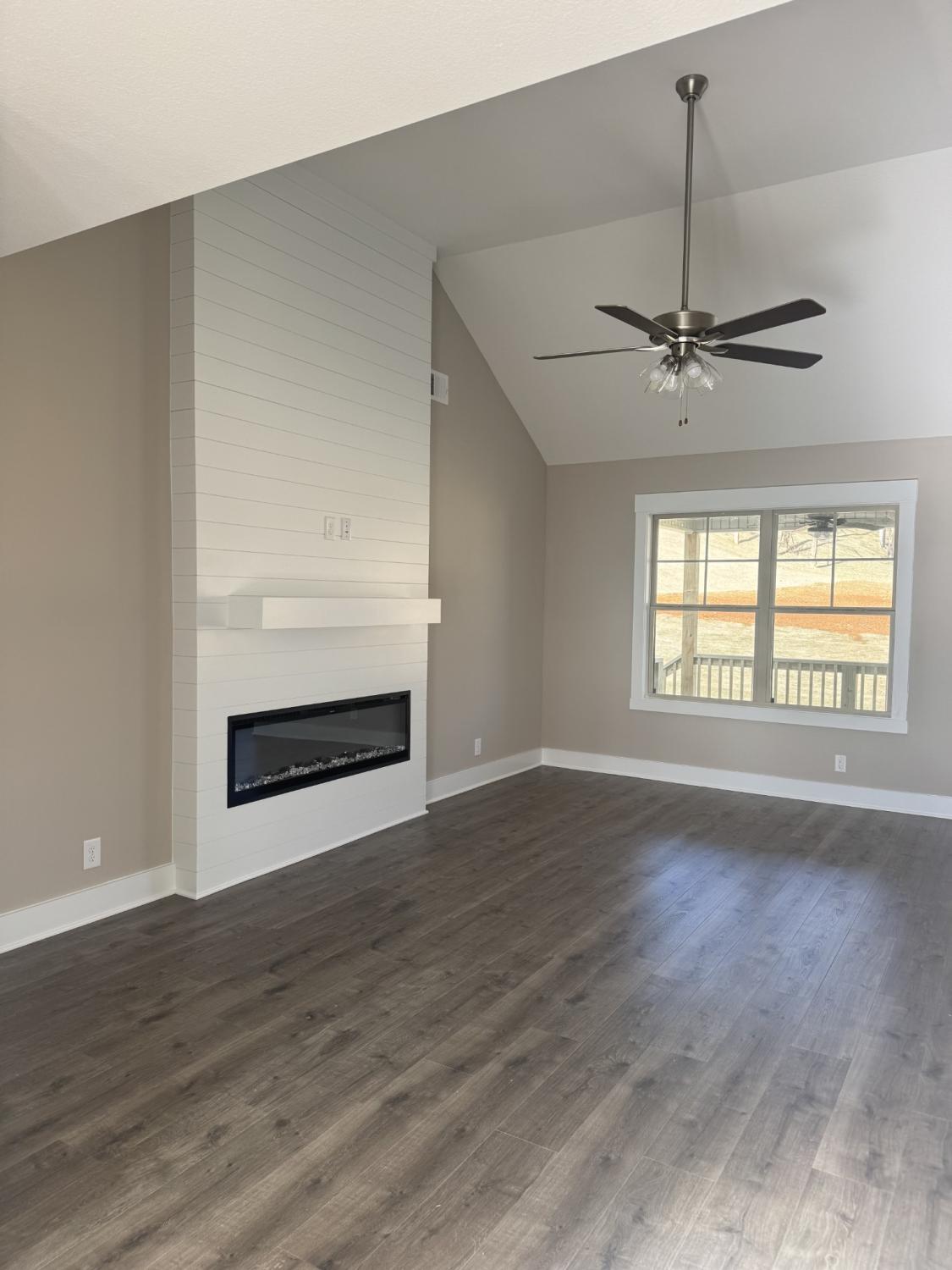 New Construction - The Tucker Floor Plan - minutes from FORT CAMPBELL, Downtown Clarksville or I24 with an easy commute to Nashville. Open concept ranch great for entertaining or spending time with family. The living room has soaring ceilings and a shiplap facing electric fireplace. The kitchen is right off the LR featuring beautiful granite countertops, SS appliances and an extra large island perfect for extra seating. This home is a split bedroom floor plan with the primary separate from the guest bedrooms. Primary ensuite features a trey ceiling and EXTRA large closet. Covered back deck. Epoxy flooring in the garage for a clean look. $17,500 in Seller Concessions with a full price offer.