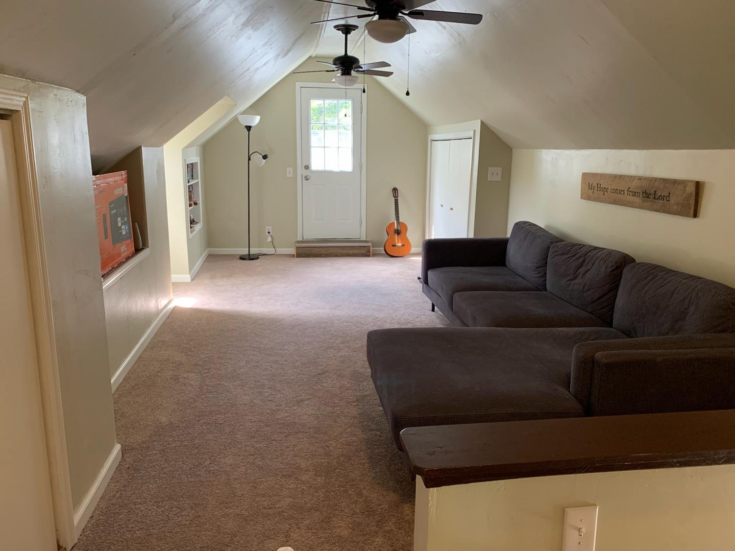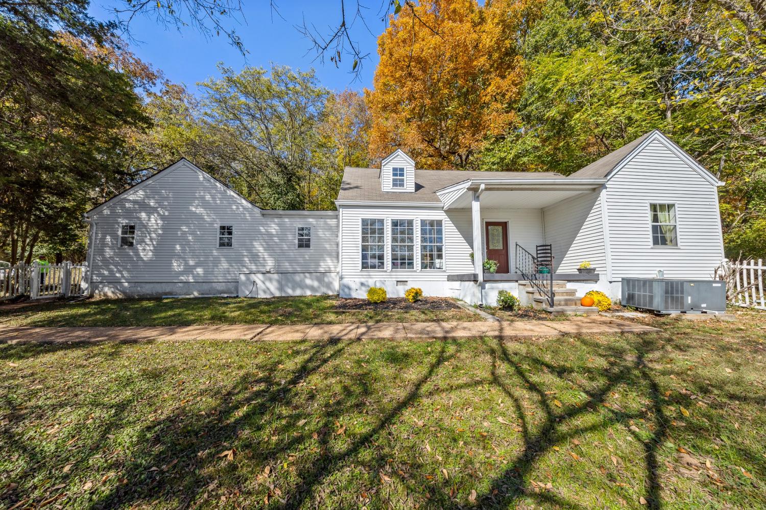 Picture perfect white cape cod privately nestled among trees along rolling slope with fenced front yard and concrete circular drive. Separate oversized two car detached garage. Property has been renovated and updated over the years with new lvp flooring throughout the first floor, custom marble and shiplap bath, two toned kitchen with stainless steel appliances, butler pantry/utility room, enormous first floor primary with woodburning fireplace (could be used as family room), two other first floor bedrooms, dining room, living room with built in bookcases and picture windows. Second floor has a vaulted bonus room and additional bedroom. Covered front porch and rear patio. Rear of home views acres of trees. Roof replaced 2023.