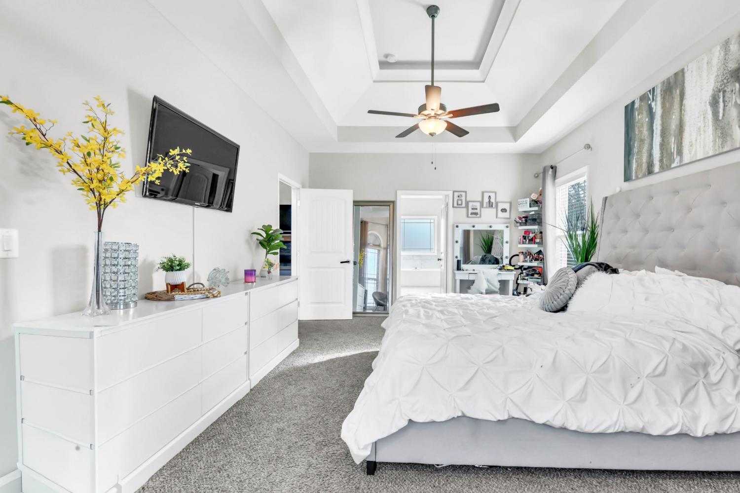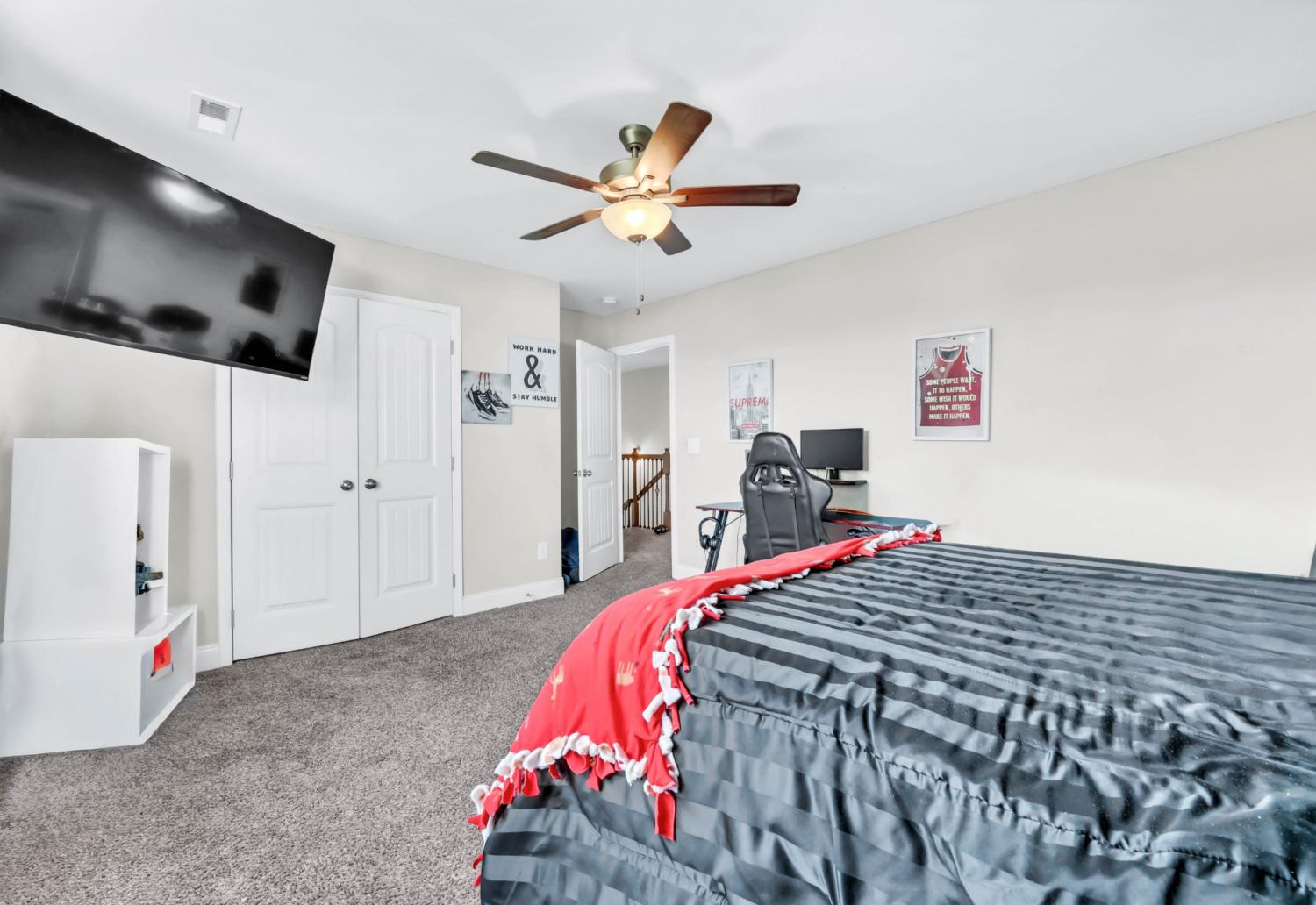 Welcome to this beautifully designed home that combines comfort, functionality, and style in every detail. Featuring multiple flex spaces and premium finishes, this home is perfect for modern living and entertaining. Step into the open-concept main level, where the kitchen steals the show with granite countertops, a subway tile backsplash, soft-close cabinetry, and not one—but two pantries. The large breakfast bar and eat-in kitchen offer plenty of space for both casual meals and gatherings. The primary suite is a true retreat, showcasing double tray ceilings, dual walk-in closets, and a luxurious en-suite bathroom with separate granite vanities, a large garden tub, and a tiled walk-in shower. Upstairs, a spacious landing area overlooks the main living room, creating an open and airy feel. You'll also find a bonus room that can easily function as an additional bedroom, office, or playroom. The upstairs bathroom features double sinks, perfect for shared living. Additional highlights include: Dedicated flex room ideal for a home office, gym, or studio, Covered back deck with no rear neighbors, offering peace and privacy and a smart layout with ample storage and natural light throughout. Don’t miss the opportunity to own this well-appointed home that offers the perfect blend of space, privacy, and upscale features.