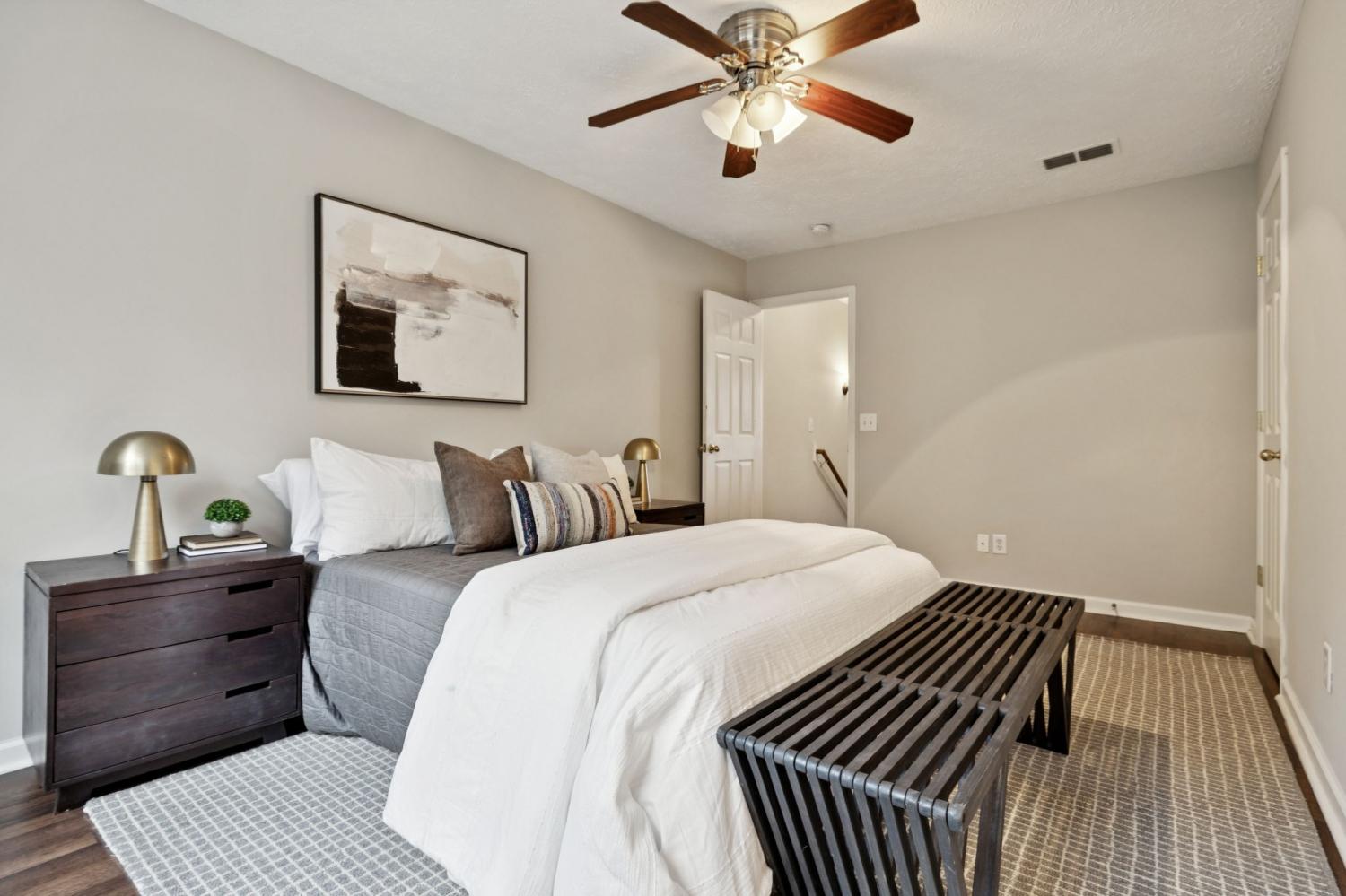Beautifully refreshed and move-in ready! This charming Craftsman-style townhome sits in one of Nashville’s most desirable and walkable communities—offering manicured landscaping, a picturesque golf course, and a sparkling saltwater pool for residents to enjoy. Step inside to discover fresh interior paint, new carpet on the stairs, and new flooring in both bathrooms, creating a bright, clean, and welcoming feel throughout. The open-concept living area flows effortlessly into a stylish kitchen featuring ample cabinet space, and a flexible dining or office nook—perfect for entertaining or working from home. Upstairs, you’ll find two spacious ensuite bedrooms, each with a full bath and walk-in closet—ideal for roommates, guests, or anyone seeking comfort and privacy. A central laundry area adds everyday convenience, and all appliances remain, including the refrigerator, washer, and dryer. Enjoy your morning coffee on the covered front porch or unwind on the private back patio overlooking mature trees and green space. This prime location offers quick access to Percy Priest Lake, Nashville International Airport, and Downtown Nashville—plus an abundance of nearby restaurants, shops, gyms, and entertainment options. This home combines modern updates, low-maintenance living, and a peaceful setting—delivering the perfect balance of comfort, style, and convenience. Don’t miss your opportunity to make 594 Flintlock Court your new address. Schedule your showing today!