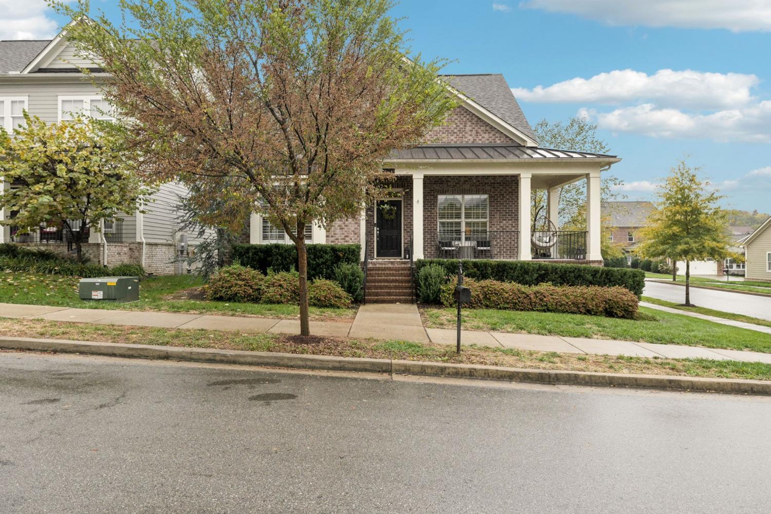 CLASSIC, Cottage Style Home in Cool Springs – ONE-LEVEL Living! Welcome to this charming corner-lot home featuring a generous wrap-around front porch. Step inside to a bright, open floor plan that seamlessly connects the kitchen, living, and dining areas—perfect for entertaining or relaxing. Enjoy elegant plantation shutters and hardwood floors throughout the main living spaces. The spacious kitchen boasts a large island with seating, abundant cabinet and counter space, double ovens, a separate gas cooktop, and a generous pantry. The extra-large living room includes a cozy gas fireplace, ideal for gatherings. The main floor primary suite offers a luxurious bath with dual sinks, a separate tub and shower, and a large walk-in closet. Two additional bedrooms and a convenient laundry room are also located on the main floor, providing true one-level living. A quaint screened-in porch connects the oversized garage to the house. Upstairs, discover a huge bonus room or fourth bedroom with a full bath and walk-in closet—perfect for a teen suite, guest room, studio, office, or hobby space. Built in 2018 by Patterson Builders, this move-in-ready home offers endless possibilities.