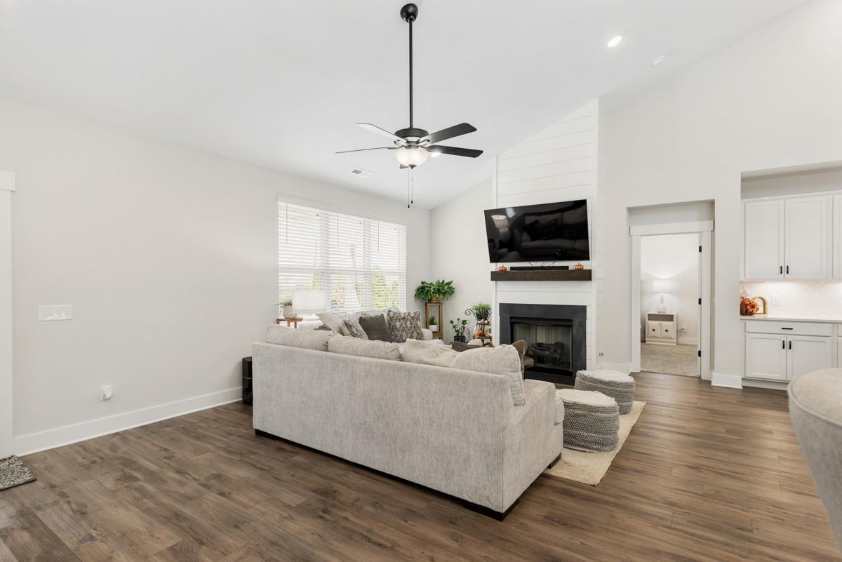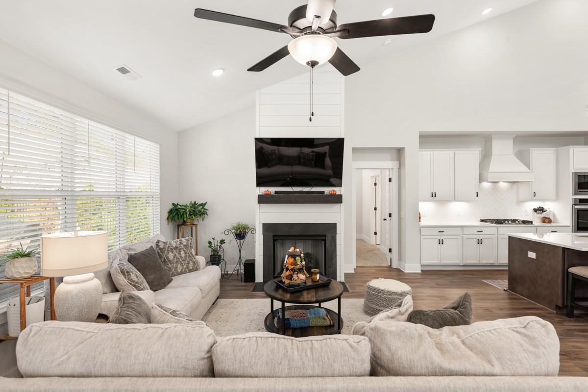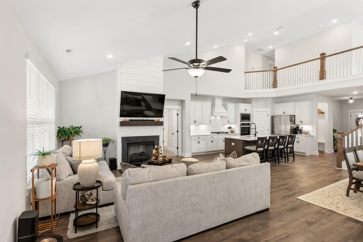 Welcome Home to Stunning 327 Turfway Park. This property truly has that WOW factor, and every detail has been designed and styled to perfection. A welcoming foryer that enters into a massive living space, with soaring ceilings, a gourmet kitchen with oversized island, dining space, and living room with a shiplap surround gas fireplace. The upgraded kitchen features a gas cooktop, double ovens, built-in microwave, dishwasher, gorgeous quartz countertops and upgraded wood cabinets and tile backsplash. The Primary bedroom is located on the ground level with a stunning spa like bathroom with large walk-in shower massive closet, and a tankless hot water heater. Additionally, the laundry room as well as private large office and half bath is located downstairs, along with an attached two car garage. Upstairs is an oversized bonus space, prewired for an overhead projection tv, ready for a fun movie / game night, three large bedrooms each with ample closets and a full size bathroom. Outside the rear patio has been professionally extended offering extra space to enjoy with family, fully fenced and privacy landscaping installed. No neighbors to your back EVER! Zoned for the highly sought after Liberty Creek School District! Carellton is known for its vibrant and beautifully landscaped community, with resort style clubhouse, pool, gym and playground. Schedule your tour today and make this exceptional home yours just in time for the Holidays!