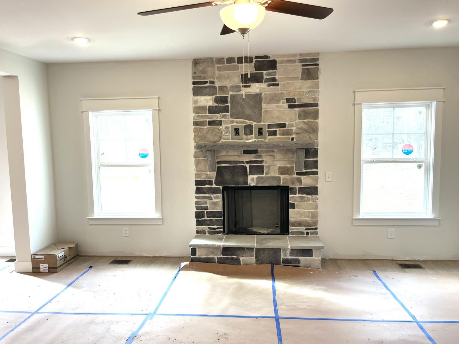 PLAN (2433 Elevation GHI ) Due mid February .Rare opportunity to build this 5 bedroom house that is normally too wide for our lots. Full brick with interior and exterior fireplaces. This side entry home features a formal dining room with open feel floorplan. Wide open space with quartz countertop kitchen on one end of house and great room at the other separated by breakfast area. All bedrooms up. You will love the upgraded side entry garage and the covered patio with woodburning fireplace. Additional deck out back. Covered patio has TV outlet above fireplace and has a ceiling fan to keep your cool in the summer and recessed lights for night time hangouts. It's also screened in to allow for bug free parties! Great vibe here right by Rocky Fork Elementary. Home will be white brick with black shutters and dark grey blend stone for accents. Xtra large 5th bedroom could be a bonus room Fantastic layout perfect for entertaining. Only $99 in closing costs if using our lender/title company