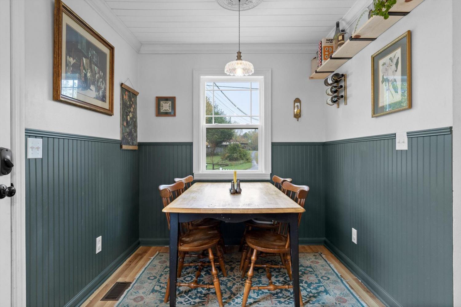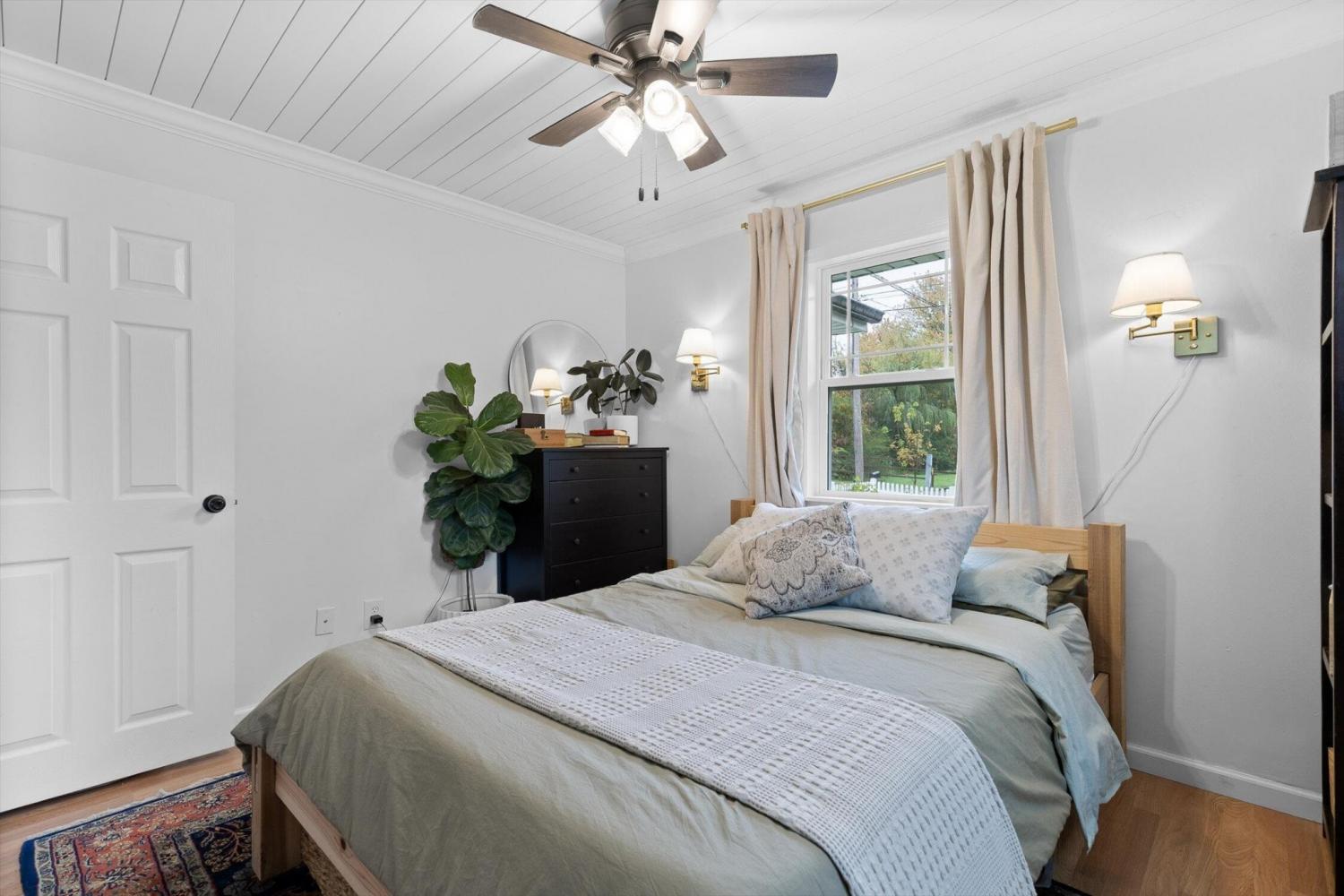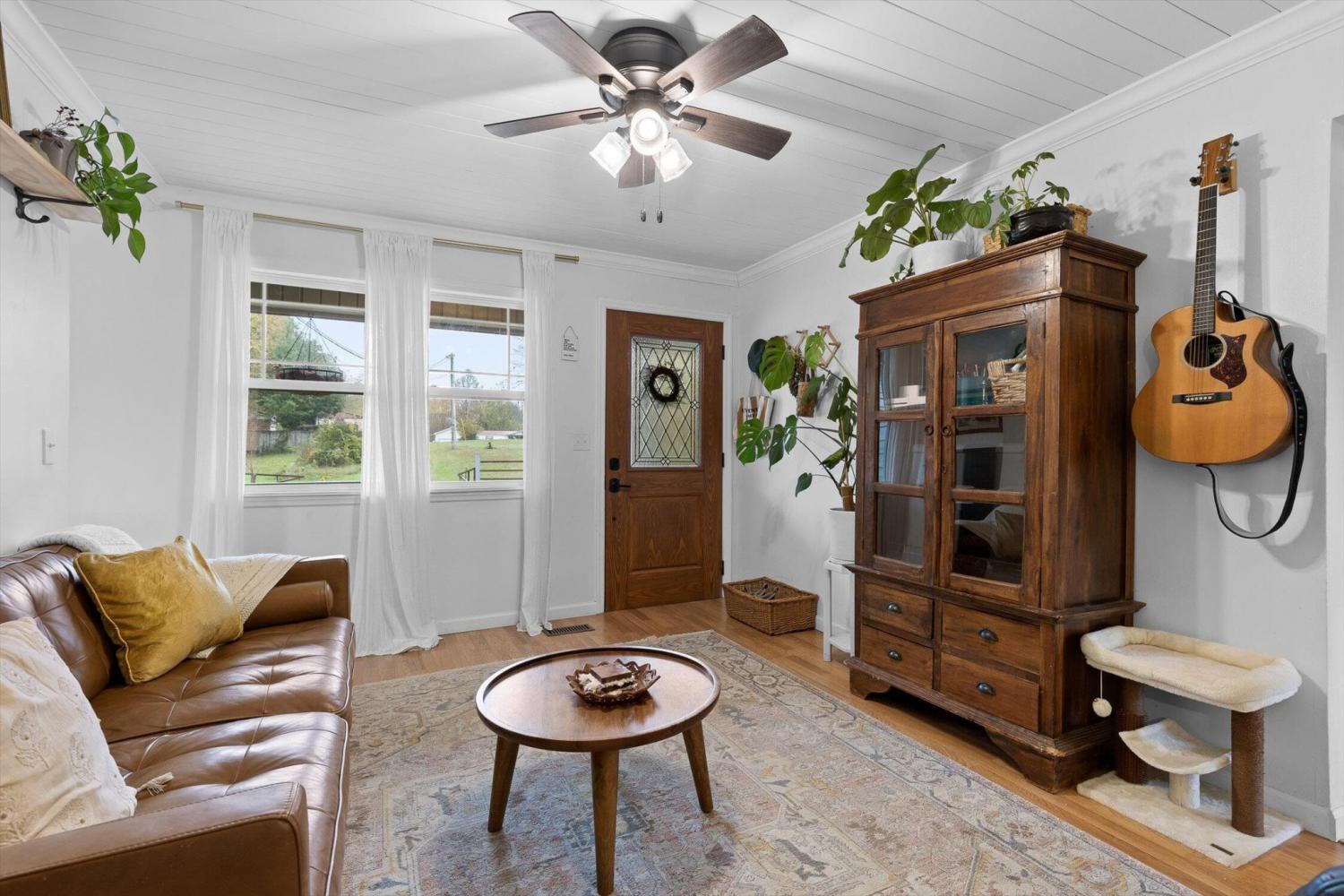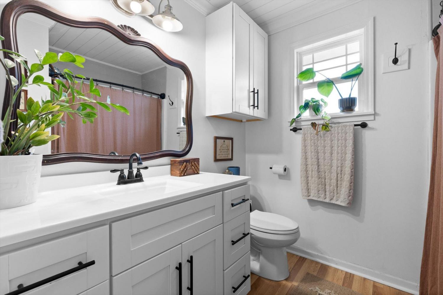Discover the perfect blend of cozy charm and modern convenience in this beautifully updated cottage. Step inside to find a sunlit living space with a stunning tongue-and-groove ceiling, crown molding, and new, stylish flooring throughout. The kitchen dazzles with granite countertops, a striking tile backsplash, and contemporary lighting—ideal for both everyday living and entertaining. Enjoy to the newly renovated bathroom, and peace of mind with a brand-new septic tank, windows, and LP Smart Siding for lasting comfort and efficiency. Outside, a classic picket fence frames the efficiently designed yard, offering just the right amount of space for outdoor relaxation, gardening, or play. A large shed provides ample storage or workshop potential, while a freshly painted exterior and new crawlspace vapor barrier ensure this home is as dependable as it is delightful. Welcome to your charming sanctuary—where every upgrade has been thoughtfully chosen for comfort, style, and functionality.