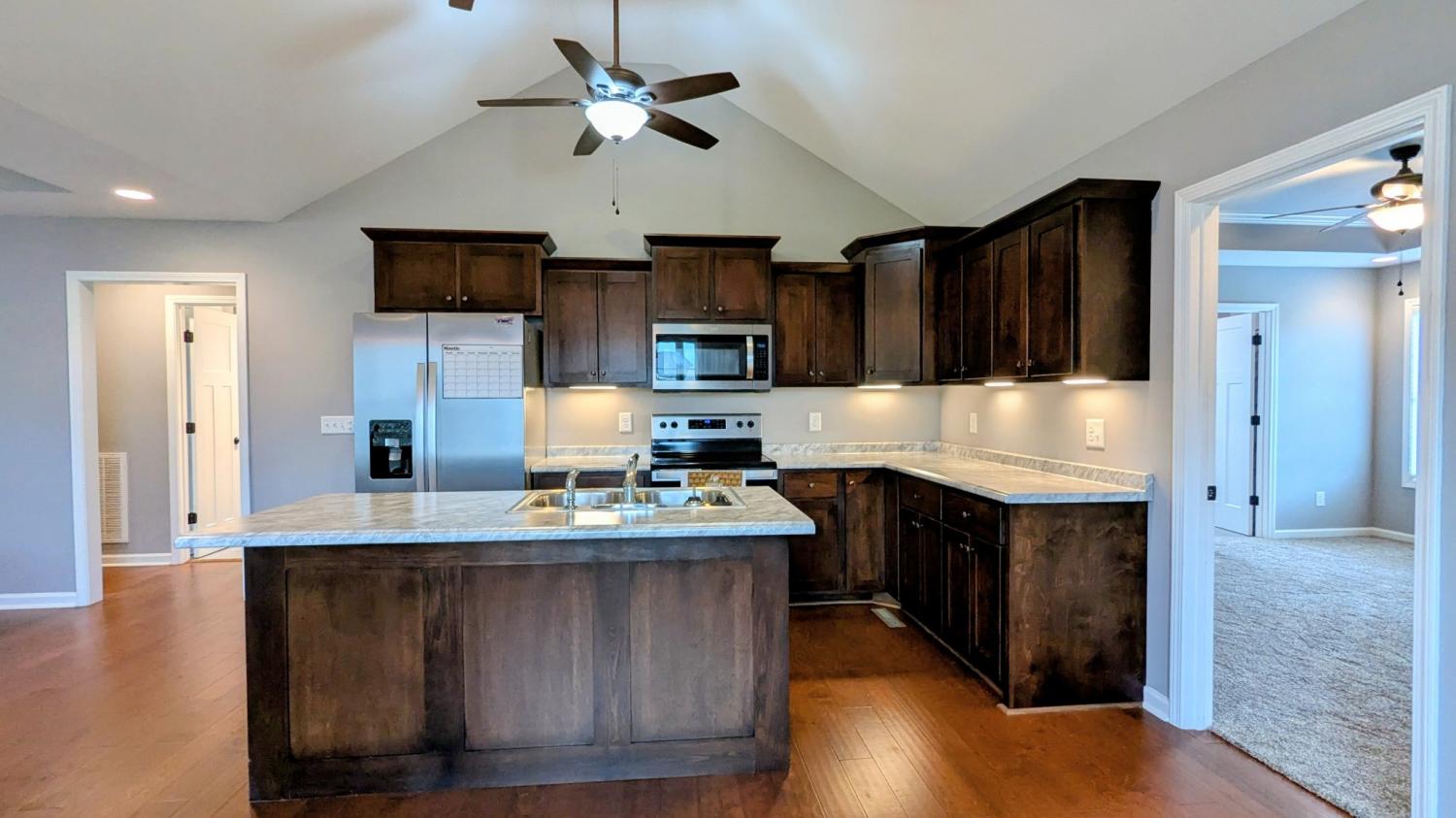 Welcome home to this beautifully updated 3-bedroom, 2-bath residence, where modern elegance meets remarkable value. Situated on one of the largest lots in the community and priced lower than any other homes to sell. Yhis home has been completely refreshed and is ready for its new owners. Inside, an open-concept living area with a fresh coat of paint creates a bright and welcoming atmosphere. The centerpiece of the home is undoubtedly the kitchen, which boasts a generous island with elegant under-cabinet lighting—perfect for entertaining or casual meals. Brand-new carpet in all bedrooms ensures a cozy and pristine feel. Step outside to discover ample outdoor space for relaxation and play. Enjoy your morning coffee on the covered front porch or host a weekend barbecue on the large back patio. This prime location offers effortless access to I-65 and is just moments away from a variety of shopping centers, parks, the local library, and excellent restaurants. With its top-to-bottom updates and incredible pricing, this home is a rare find you won't want to miss.