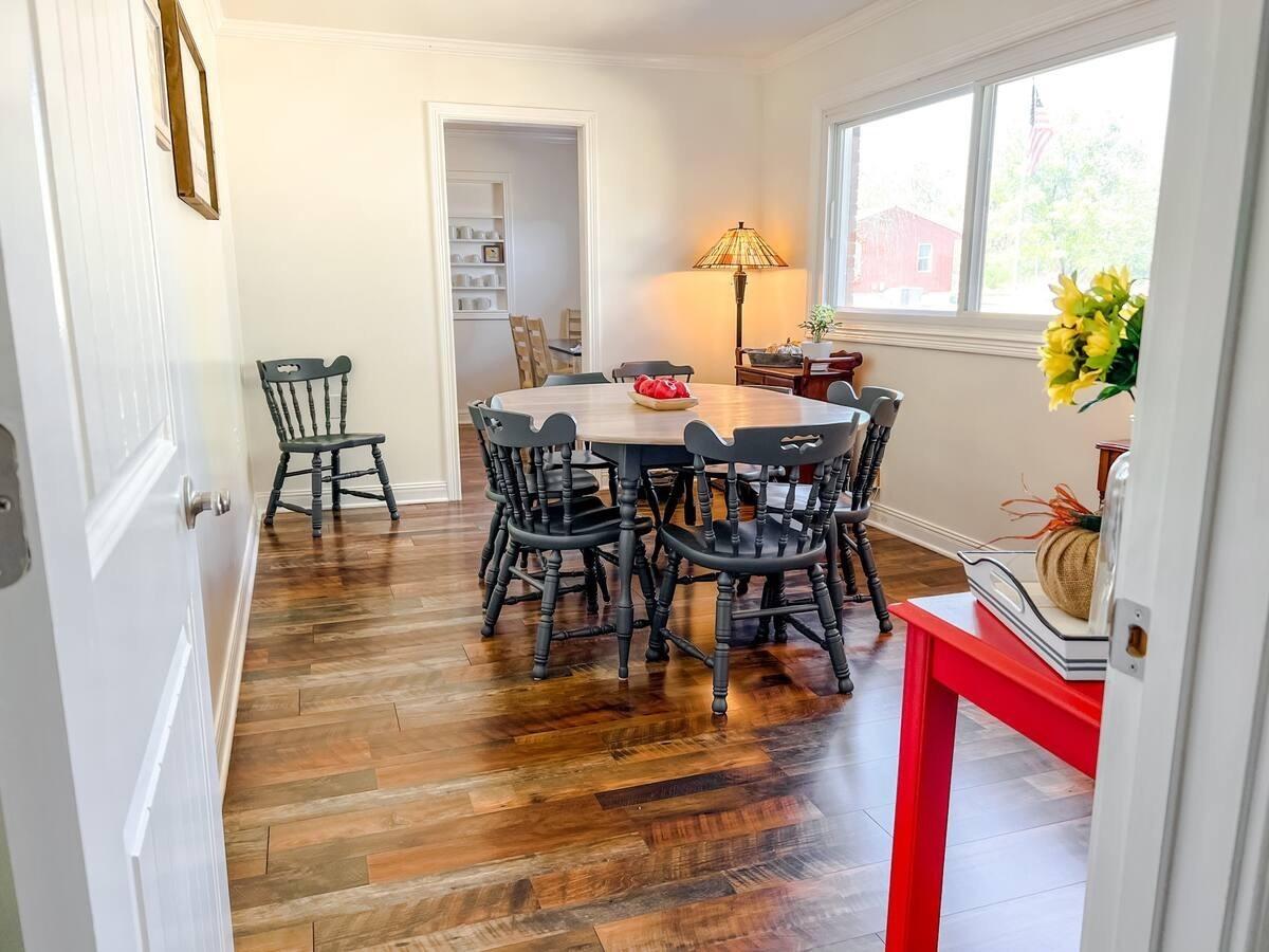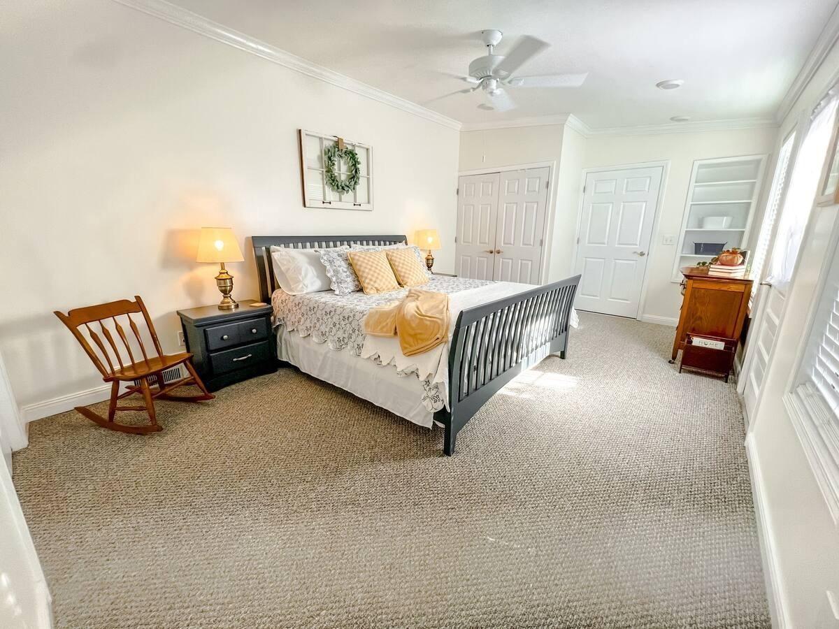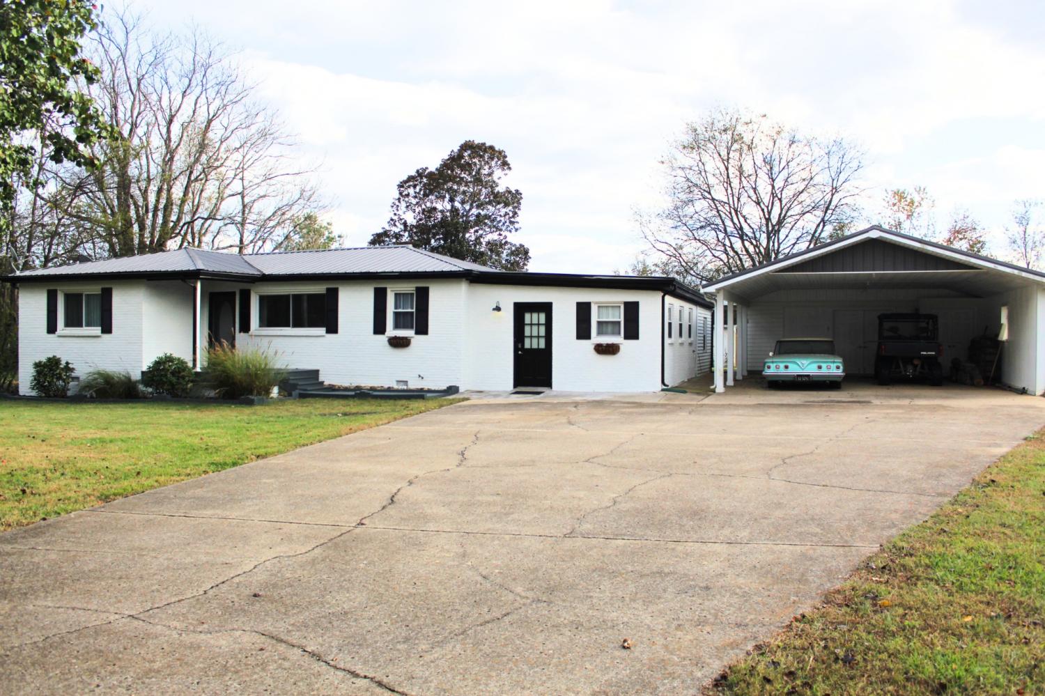 Nestled at the end of a peaceful cul-de-sac, this beautifully remodeled 3-bedroom, 2-bathroom ranch-style home offers a serene, private retreat. Situated on 0.8 acres with mature trees providing ample privacy, this property is the perfect blend of comfort and tranquility.This property offers a carport with a full functional workshop attached that offers endless capabilities. Inside, you’ll find a thoughtfully designed layout featuring zoned bedrooms for added privacy. The spacious master bedroom includes a bonus sitting room or family room, perfect for relaxing or entertaining. The updated kitchen boasts a charming farmhouse sink, accenting a rustic touch to this ranch style home. The outdoor space is equally impressive, with a private backyard surrounded by established trees, creating an idyllic setting for outdoor living. The property also offers a carport with an attached workshop, as well as two additional storage buildings—one of which was recently used as a chicken coop in 2024, offering plenty of potential for storage or creative use. This property offers well water as an additional water source that allows easy access for outside activities. Furniture is negotiable with acceptable offer. Seller previously used this for a Air B&B with great success. This home is an ideal escape while still being conveniently close to everything you need. Don’t miss the chance to make this retreat your own!