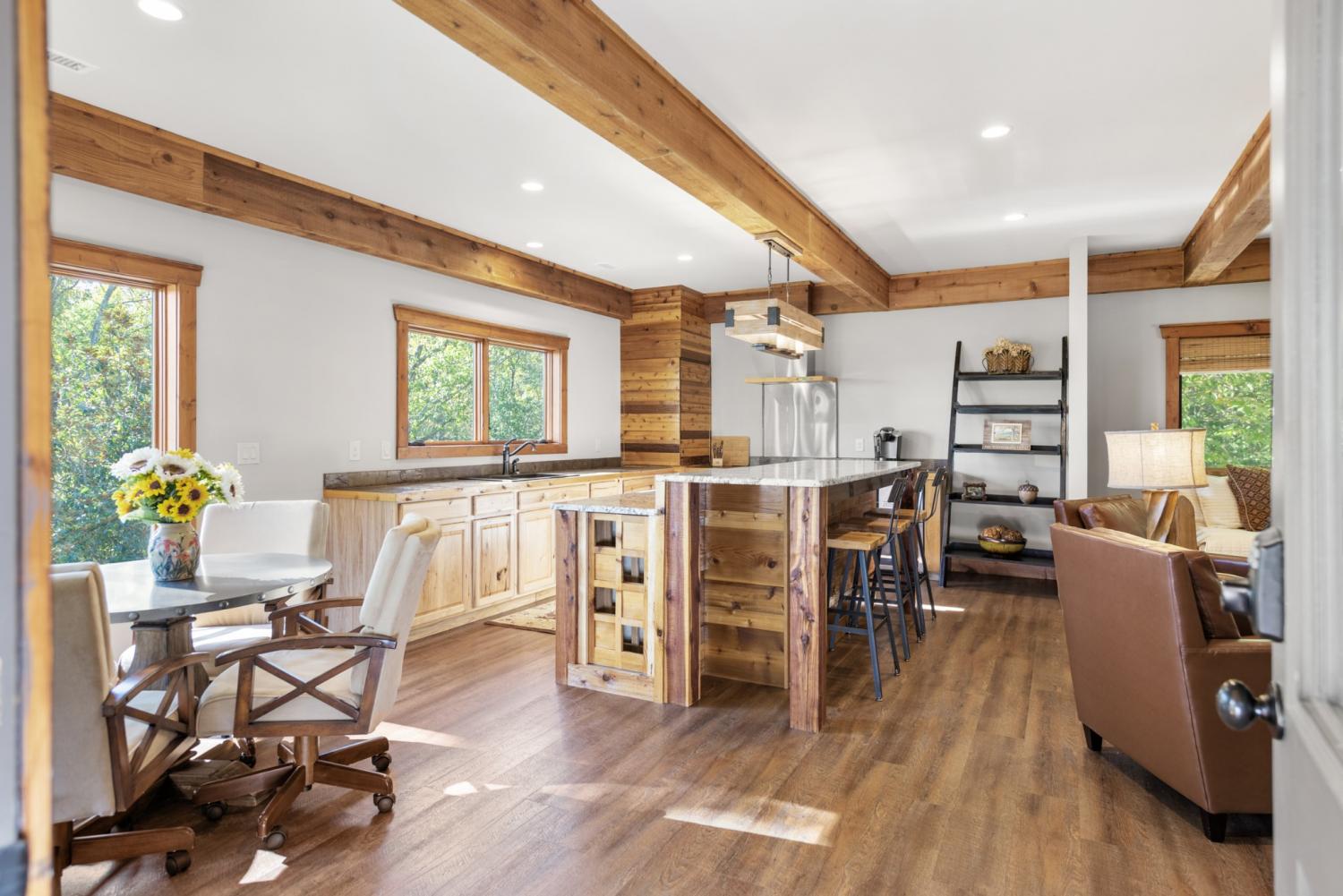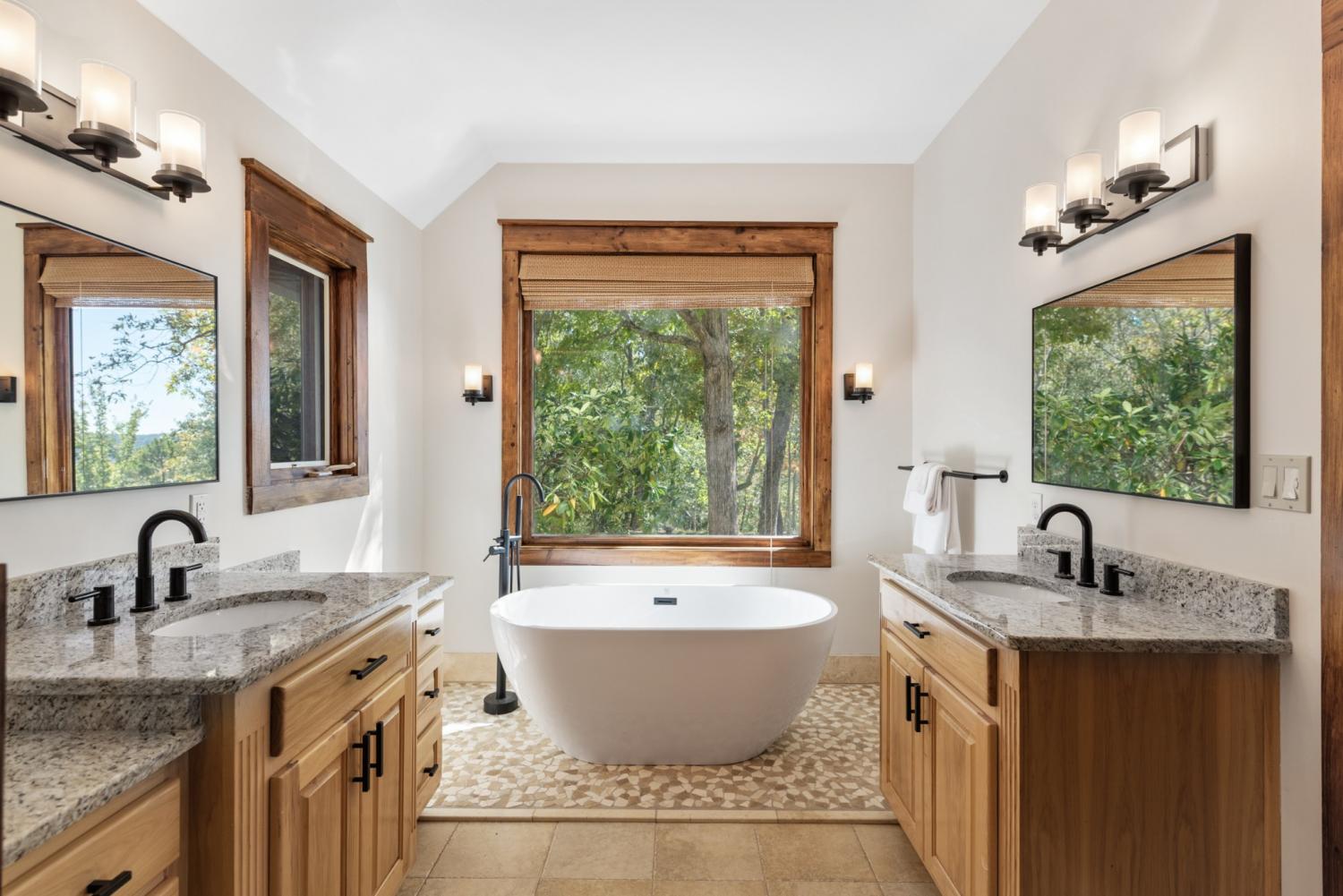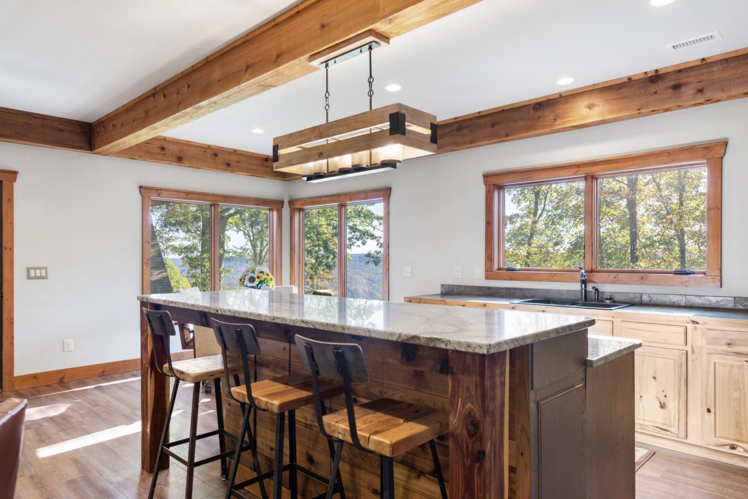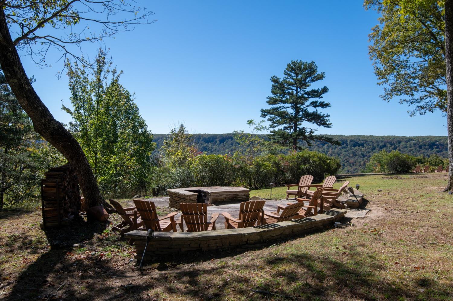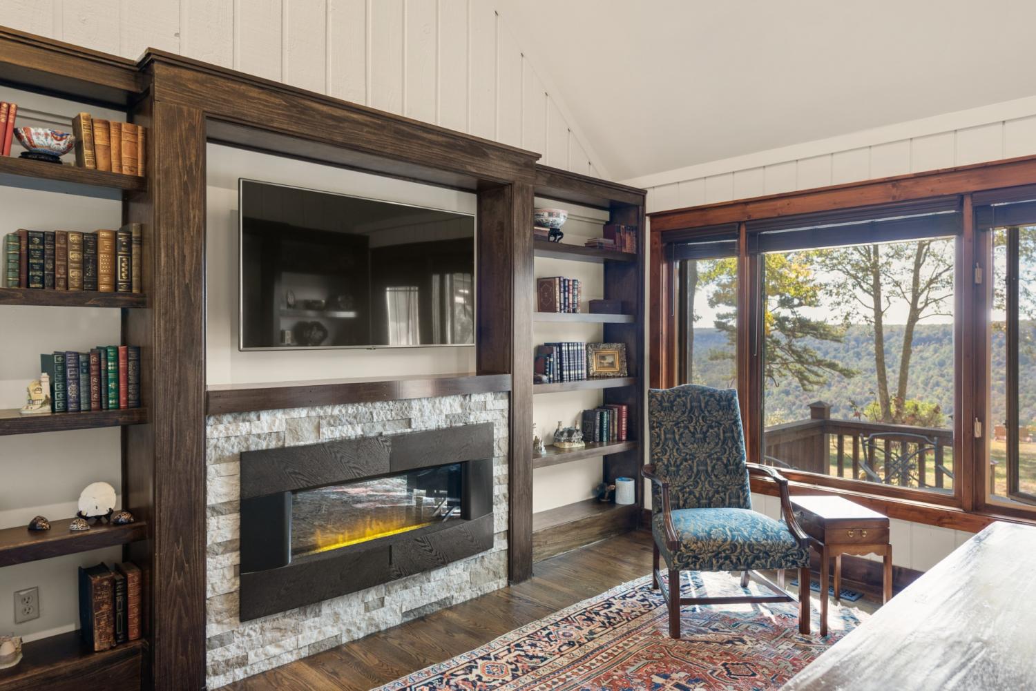 Known in Monteagle as Eagles Rest, this extraordinarily secluded five-acre retreat rises 900 feet above Dripping Springs Cove, offering rare, far-reaching views and unmatched peace. Every room captures space, air, and the soaring elevation that defines this property. Main Residence & Suite The main home features three bedrooms, four full baths, and two half baths. Its design balances comfort and quiet, stately grandeur. The private primary suite occupies an entire wing. It features a “morning retreat”—a private space for reading or reflection that opens onto the home’s most dramatic vantage point – the porches! The great room and formal dining area invite intimate and large gatherings, while a grandious screened porch—with its soaring ceiling and view of the cove below—creates a transition between indoors and out. From dawn to beyond dusk, this space frames the ever-changing nature of the mountain. A full 3-room office suite provides privacy for work or study, complementing the main living spaces. The ground-floor multi-functional suite with studio/guest bedroom was designed as spaces to be adapted for a studio, workshop, entertaining, or garage, depending on desires. Mountain Flat Connected to the main home by a covered breezeway, the separate apartment and media suite add more flexible space. The upper-level mountain flat for guests or potential rental use includes a chapel-like bedroom, a one-of-a-kind bath/laundry, and a living area with high-beamed ceilings and the “million-dollar view!” A 30ft high-ceiling shed with 2 porches adorns the edge of the expansive driveway area.