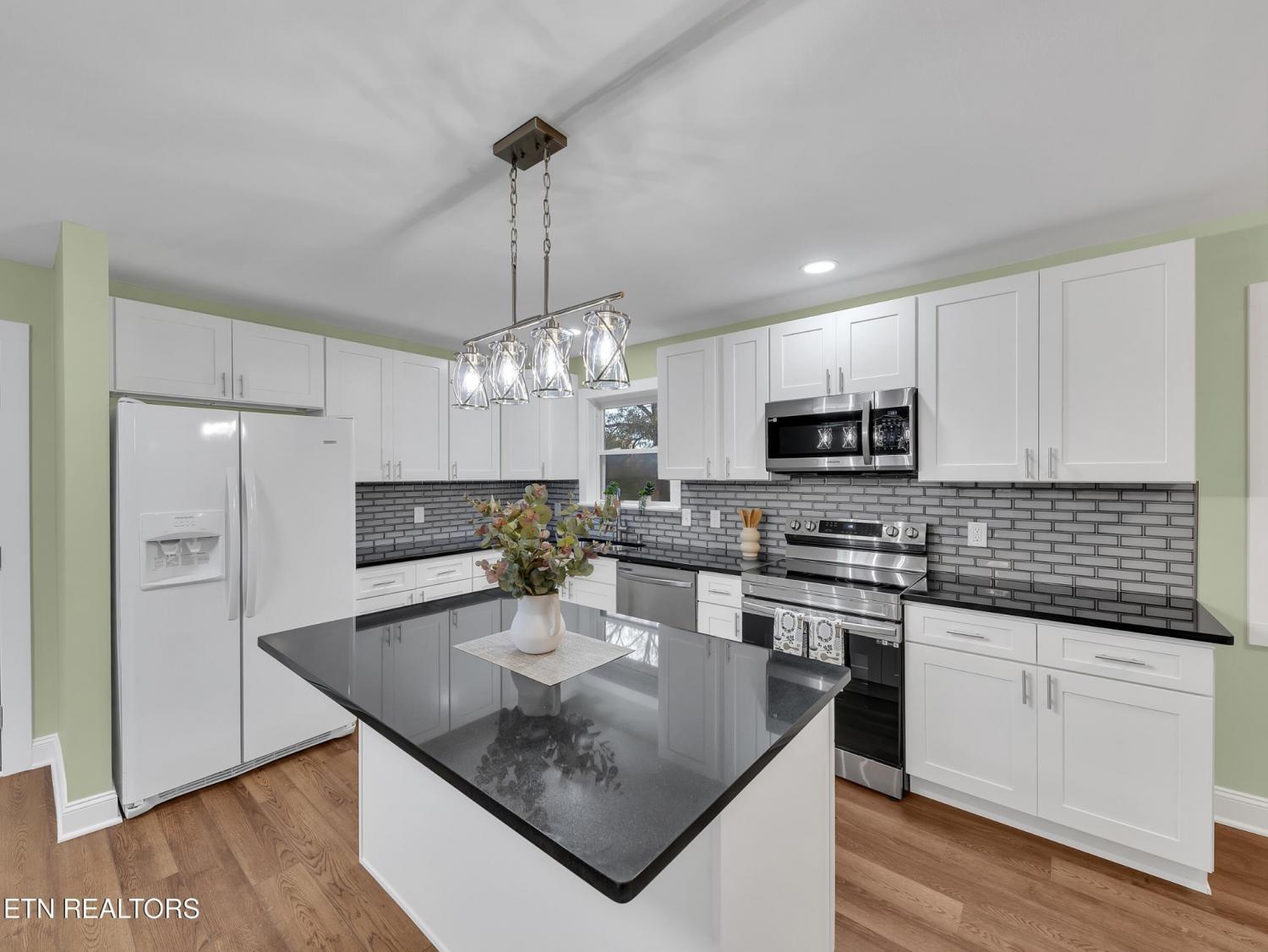 Price Improvement and Open House this Friday from 2-5 pm! Beautifully renovated all-brick home featuring a spacious, open floor plan! The kitchen has been completely opened up to create a seamless flow between the living and dining areas, offering a brand-new design with pantry, breakfast nook, and new appliances. The sellers have thoughtfully taken care of every detail. Enjoy the hardwood & new LVP flooring, updated lighting, trim, baseboards, some new vinyl windows, and new doors throughout. The large living room and formal dining room make this home perfect for both everyday living and entertaining. The primary suite features a walk-in closet and updated bath with new vanity. The basement has been properly maintained with a new vapor barrier. The outdoors features a brand-new covered back deck. It is the perfect size for hosting friends and family gatherings! The level, fenced backyard offers plenty of space for your fur babies to play and enjoy. Recent upgrades include: • New roof (approx. 1 year old) • New water heater (2021) • New vapor barrier and some updated plumbing • New front, basement, and garage doors • Plus so much more! Conveniently located near shopping, dining, and schools, this home is move-in ready and beautifully updated from top to bottom!