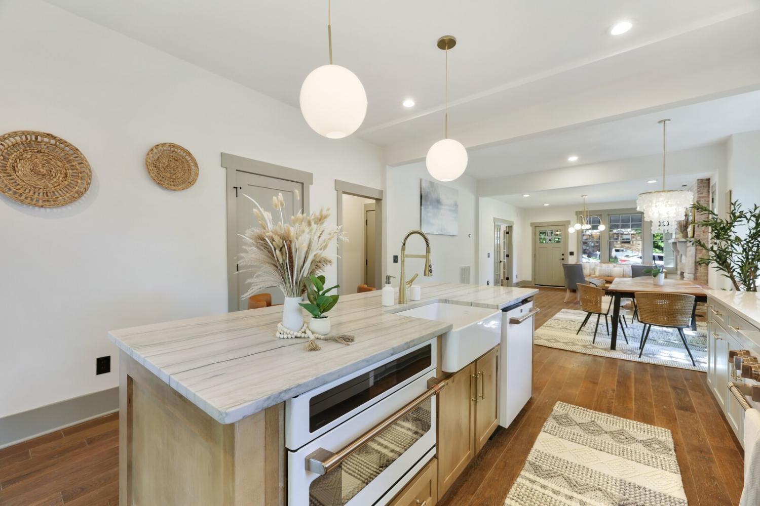 Discover a rare opportunity in the heart of East Nashville with this beautifully renovated historic home, offering both timeless charm and modern functionality. The main house spans 2,402 square feet and features 4 bedrooms and 3.5 bathrooms, thoughtfully updated while preserving original details and character, including the hardwood floors, fireplace, and blend of original and new windows. Step into the light-filled kitchen where quartz countertops, marble surfaces, Wi-Fi-enabled smart appliances, pull-out cabinetry, and an oversized pantry come together to create a chef’s dream. The primary suite offers a peaceful retreat with dual vanities, a soaking tub, a large walk-in shower, and deep closets. Additional highlights include a dedicated office/flex space, two HVAC units, a 2.5-year-old asphalt roof, and fresh landscaping with low-maintenance artificial turf. A major bonus is the DADU (detached accessory dwelling unit.) This 964 square foot space features 2 bedrooms, 1 bathroom, a full kitchen, double vanity, stylish finishes including granite countertops, white cabinetry, and unique accent wallpaper. It also includes a washer and dryer, a one-car garage with storage, and freshly painted interiors. Perfect for rental income, guests, or multigenerational living. Outside, enjoy a grill-ready patio and low-maintenance turf backyard, with alley access to a garage and three additional parking spots. The yard and patio can be designated for the main residence or for renters/guests, and the property is eligible for owner-occupied short-term rental (OO STR). This exceptional East Nashville gem offers the best of city living, smart investment potential, and historic character in one outstanding package. Up to 1% lender credit on the loan amount when buyer uses Seller's Preferred Lender.