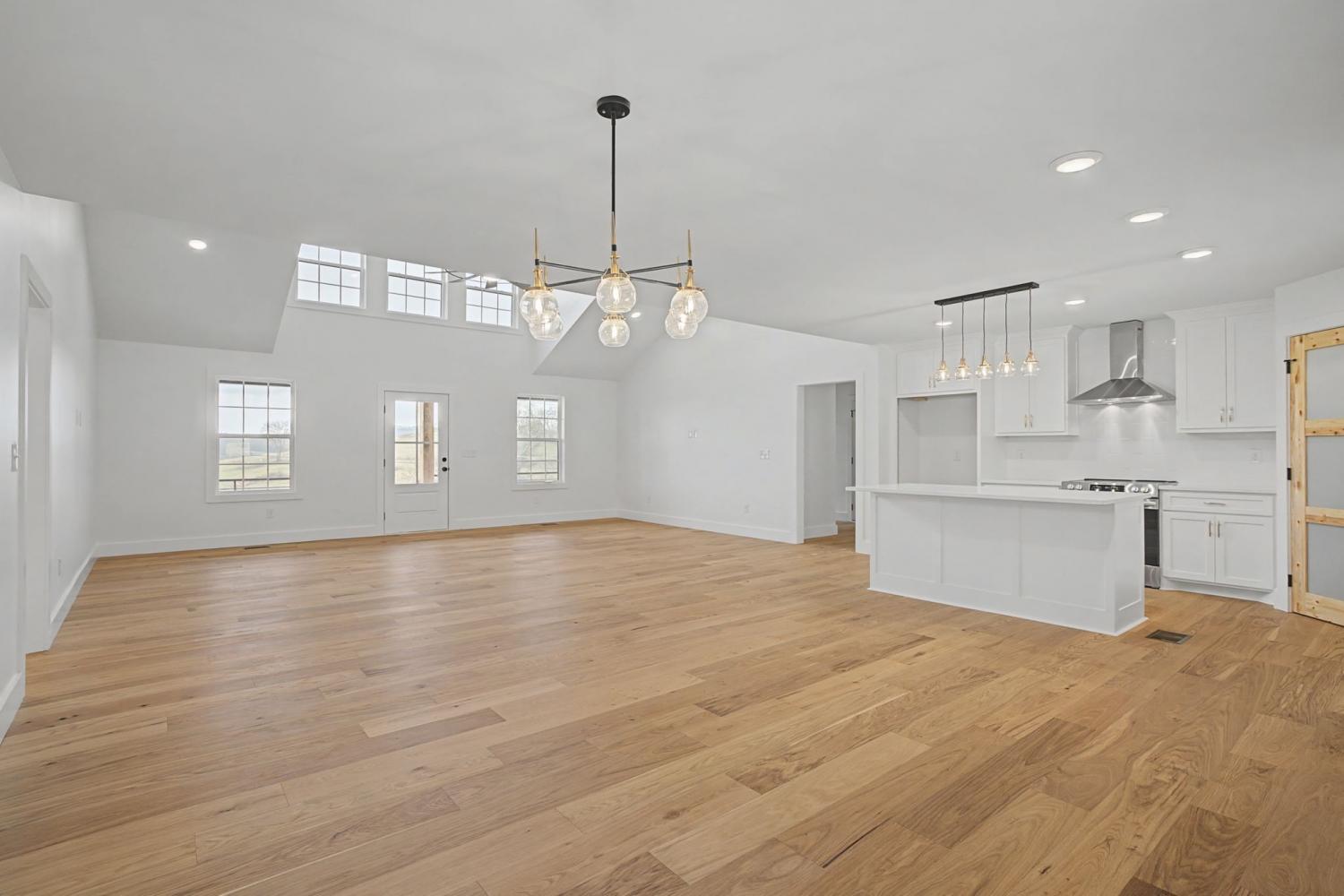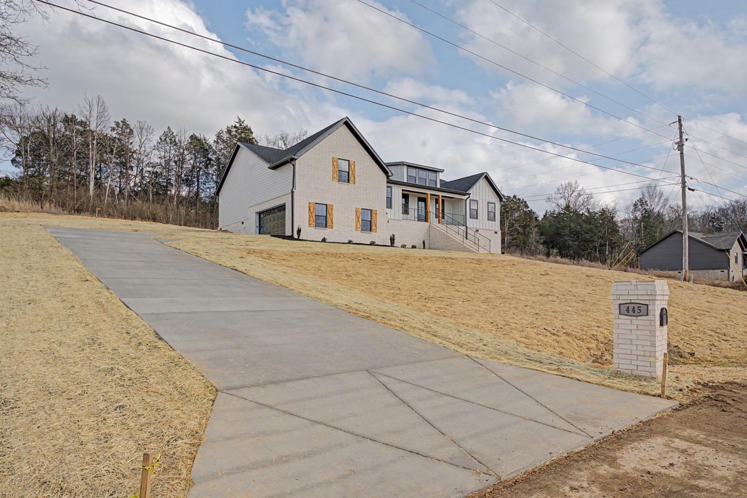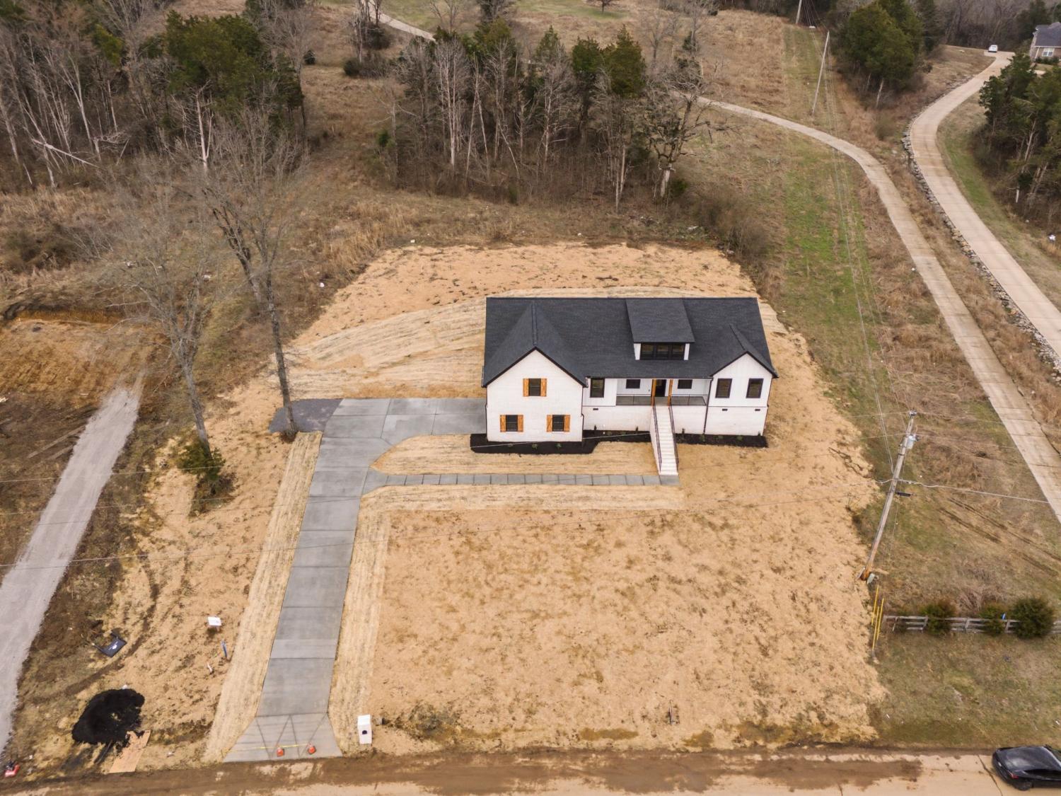 This stunning brick and hardy board 4 bedroom home built by Bison Construction features vaulted ceilings in great room, kitchen island with quartz, ample cabinet space & walk in pantry. Recessed lighting and engineered hardwood throughout with carpet upstairs, Covered front and back porches with double doors leading to a serene backyard. ** street address 445 Bridle Path
