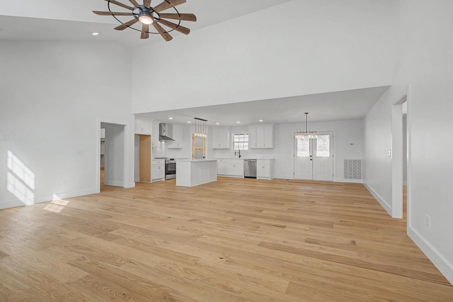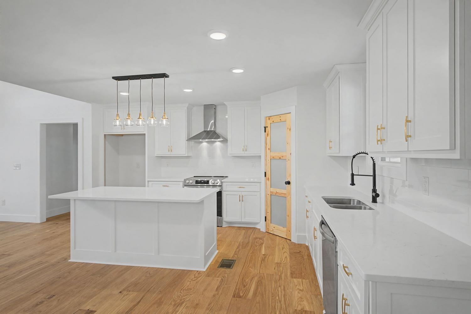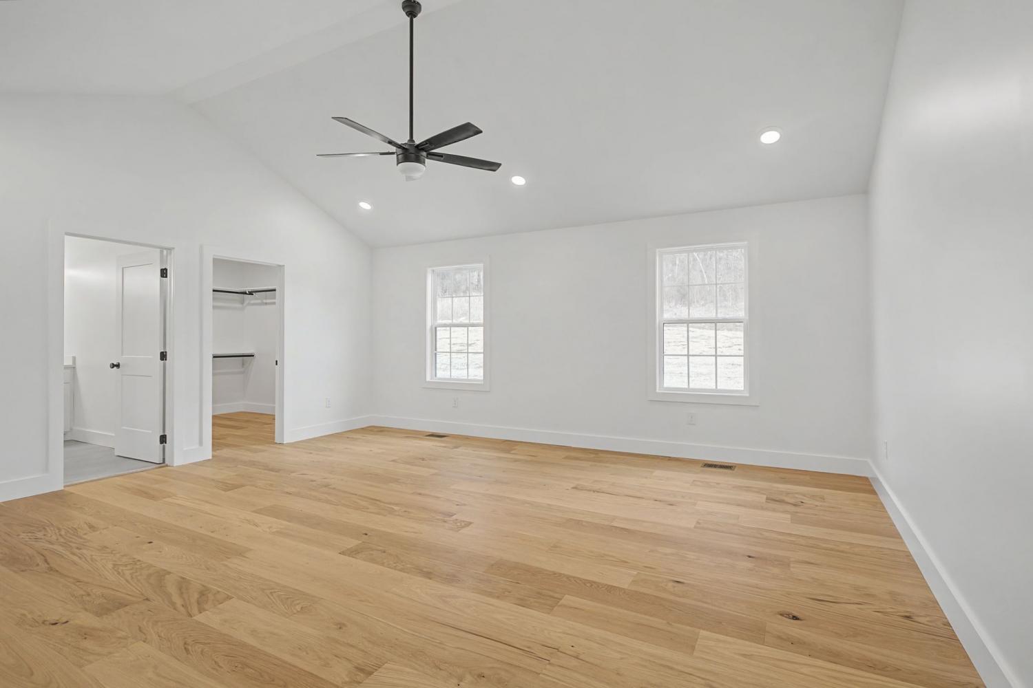 This stunning brick and hardy board 4 bedroom home built by Bison Construction features vaulted ceilings in great room, kitchen island with quartz, ample cabinet space & walk in pantry. Recessed lighting and engineered hardwood throughout with carpet upstairs, Covered front and back porches with double doors leading to a serene backyard. ** street address 445 Bridle Path