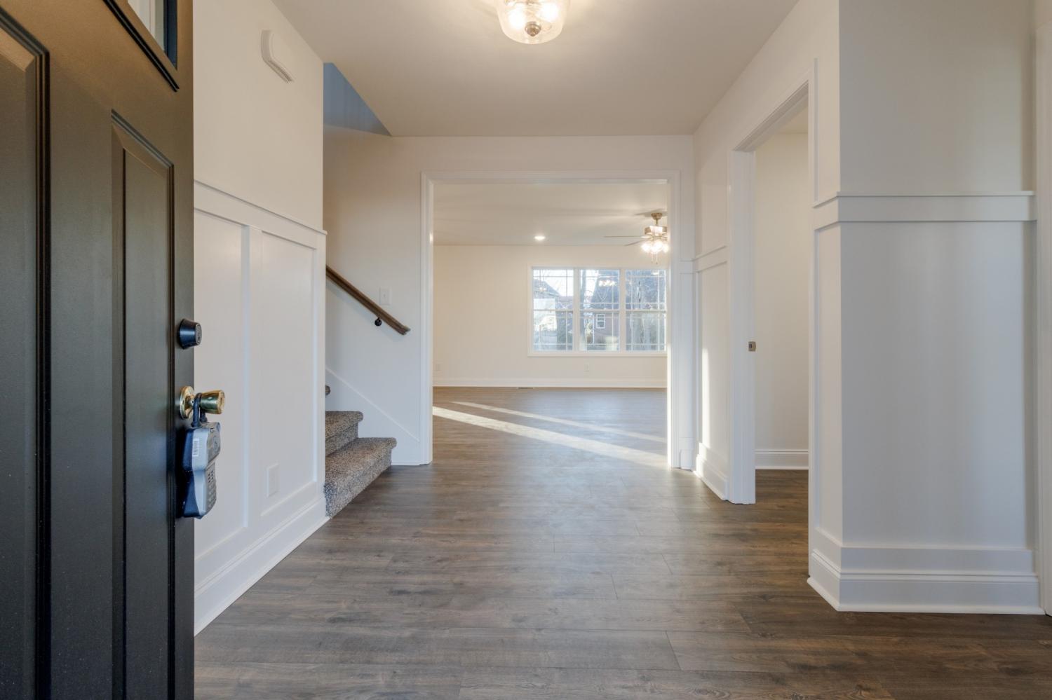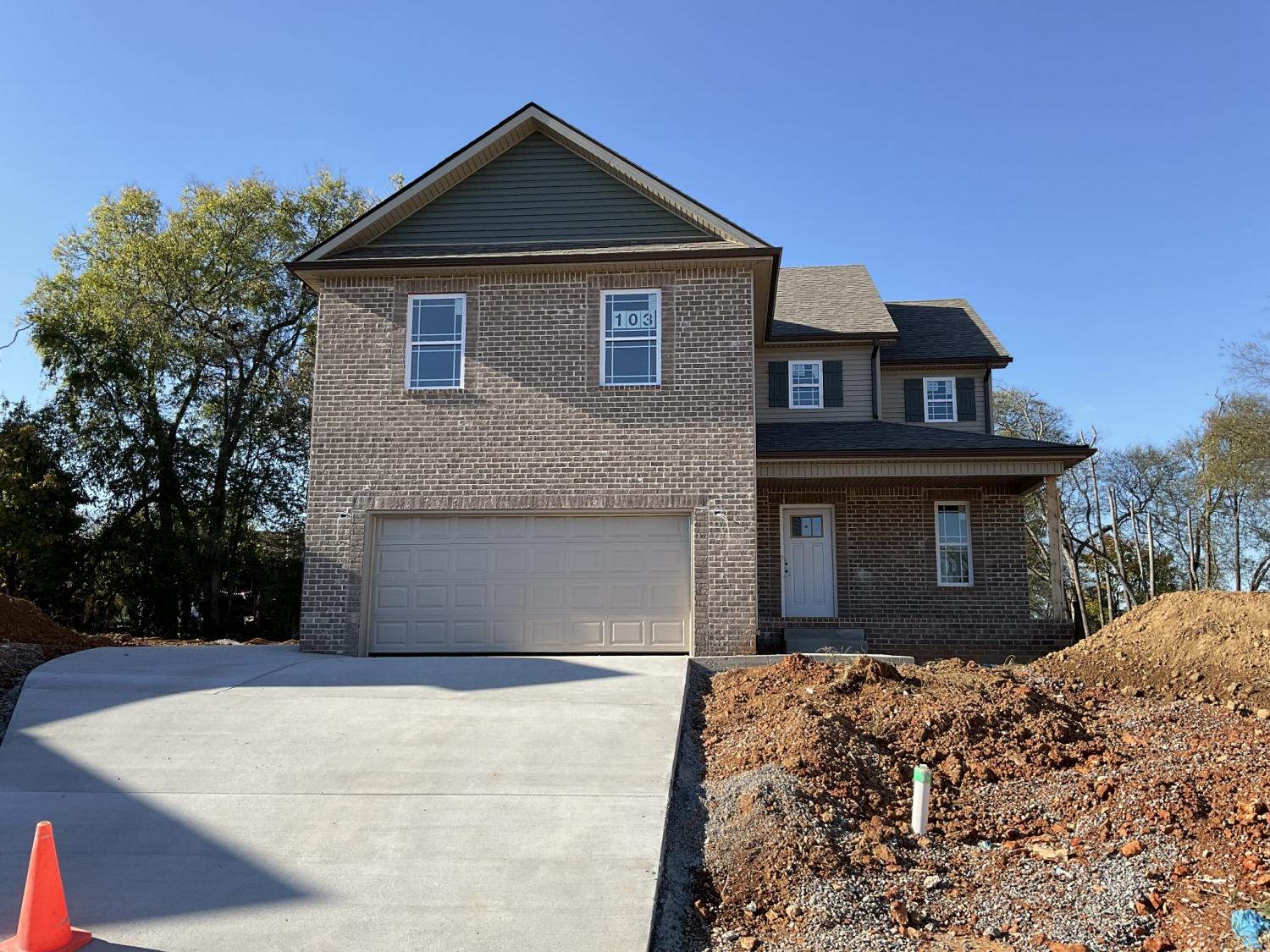 Located in the Cul-de-sac, this beautiful two story home is nestled on the perimeter of the neighborhood w/ a tree lined back yard, privacy fence and covered deck. The oversized living room with craftsman style built in cabinetry surround the fireplace and flows nicely into the kitchen and dining area. The eat in kitchen has plenty of white cabinetry, large island, two pantries (built in and separate w/custom shelving) and stainless appliances. Upstairs the primary bedroom has a private bath w/tile shower, large soaking tub and a walk in closet w/ custom shelving. Three additional bedrooms are also located upstairs each having large closets. The laundry room is located between two of the bedrooms. Hazelwood Court is conveniently located near area schools, restaurants, shopping, and a quick commute to Ft. Campbell and downtown Clarksville. The photos represent a similar built house - progress photos are at the end. Be sure to check out the black doors and black island!