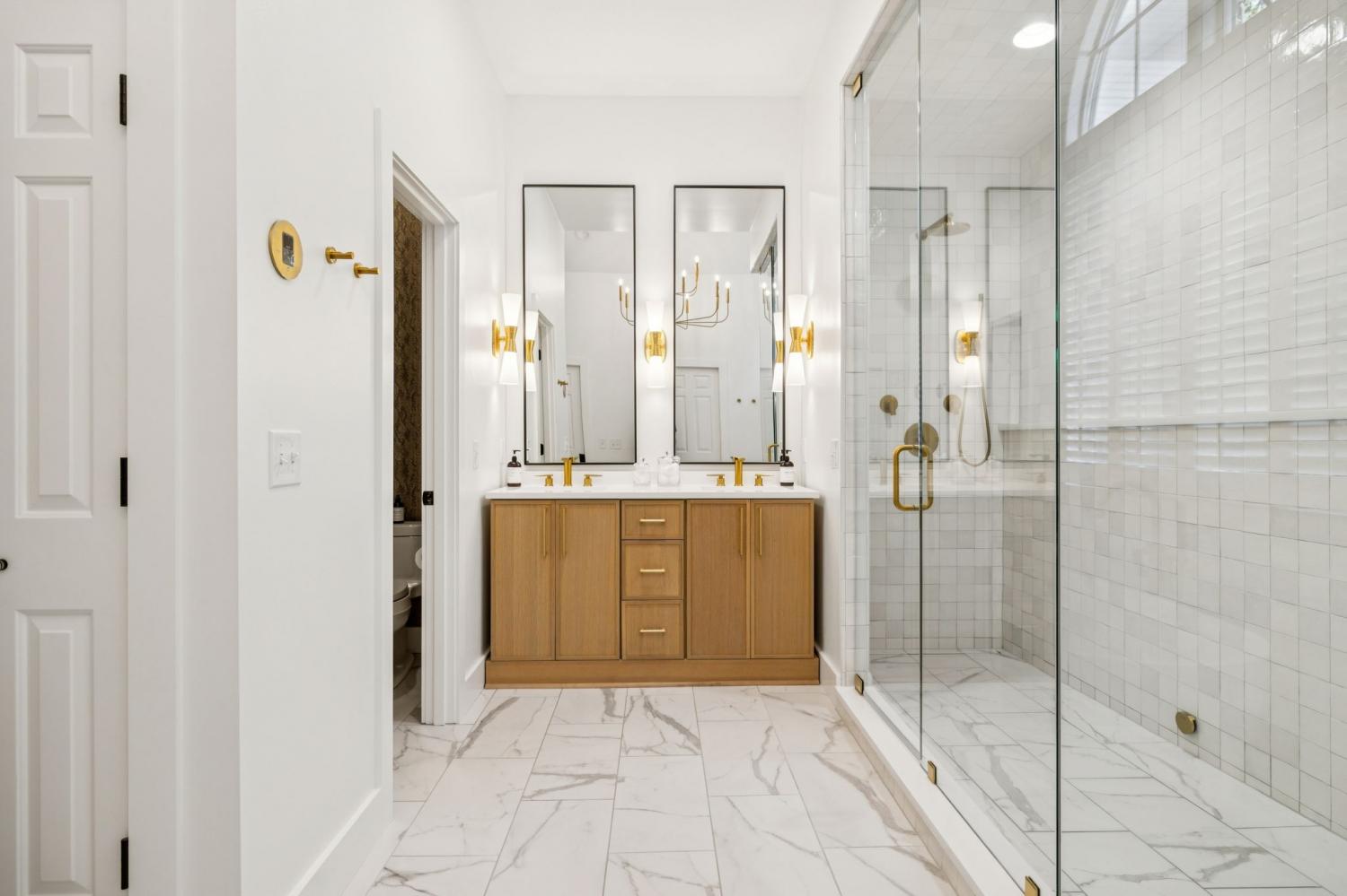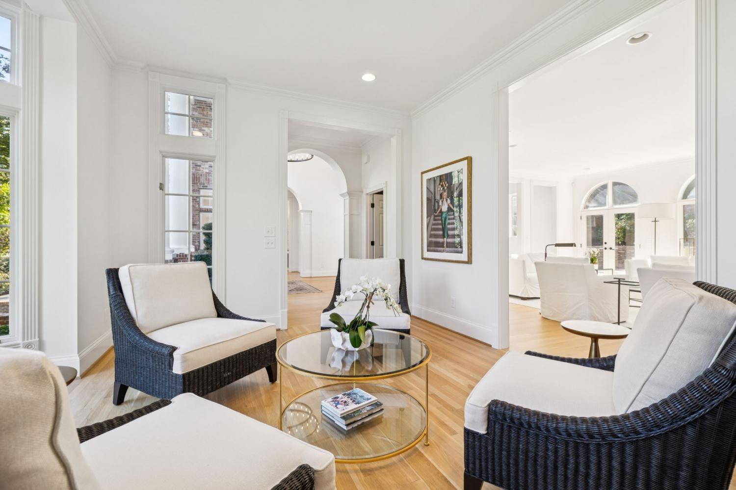 Refined Living in the coveted Hounds Run! This beauty is tucked away on a quiet cul-de-sac located between Green Hills and Brentwood and just 1.2 miles from Richland Country Club—this fully renovated residence combines timeless architecture with modern sophistication and comfort. Inside, a grand foyer introduces white oak flooring, cathedral ceilings, and walls of windows that fill the home with natural light. Graceful arched openings connect elegant living spaces illuminated by Restoration Hardware and Visual Comfort fixtures. Three gas fireplaces—in the dining room, living room, and primary suite—add warmth and ambiance at the touch of a remote. The primary suite is a private retreat, featuring a spa-inspired steam shower, his and hers closets, luxurious finishes, and designer details throughout. Across the home, statement wallcoverings by Schumacher and House of Hackney bring texture, tone, and personality to each space. Upstairs, new Karastan carpeting (installed August 2025) adds comfort underfoot. Two bedrooms share a large stylish Jack-and-Jill bath, while a third enjoys its own private ensuite with Moroccan wall tile. A skylit bonus room with Velux windows, full bath, bar, and island with mini fridge leads to a private office—ideal for a music studio, in-law suite, or fifth bedroom. Outside, the landscaping rivals the interiors. Hydrangeas frame the entry, Japanese maples and a mature oak provide shade and character, and lush gardens deliver seasonal color—all maintained by a new irrigation system. The large, fenced backyard offers plenty of room for play and entertaining in a serene, pet-friendly setting. Backyard has plenty of room for a POOL! Highlights include a new roof, brand-new HVAC & fully encapsulated crawlspace with dehumidifier, epoxy-coated garage floors, integrated whole-home audio, smart wiring w/Sonos with Google Home & security system—all part of a thoughtful renovation that ensures every inch of this home. It is solid & stylish. A MUST SEE!