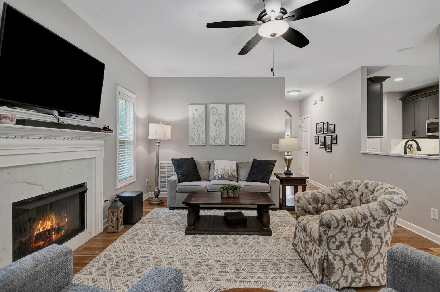 Meticulously maintained and spacious 3 BR home with upgrades galore! Bonus room could be a 4th bedroom. Flex room on first floor for at home office or playroom. NEW Carpet upstairs, NEW hardwood flooring downstairs, dreamy kitchen with quartz countertops, backsplash, upgraded cabinets, dual zone beverage refrigerator, soft close drawers in kitchen, NEW HVAC 2023, New Roof 2025, Exterior of home painted 2025. MUST SEE this updated home in Burkitt Place- conveniently located to I-24, I-65, historic Nolensville, Tanger outlet shopping center.