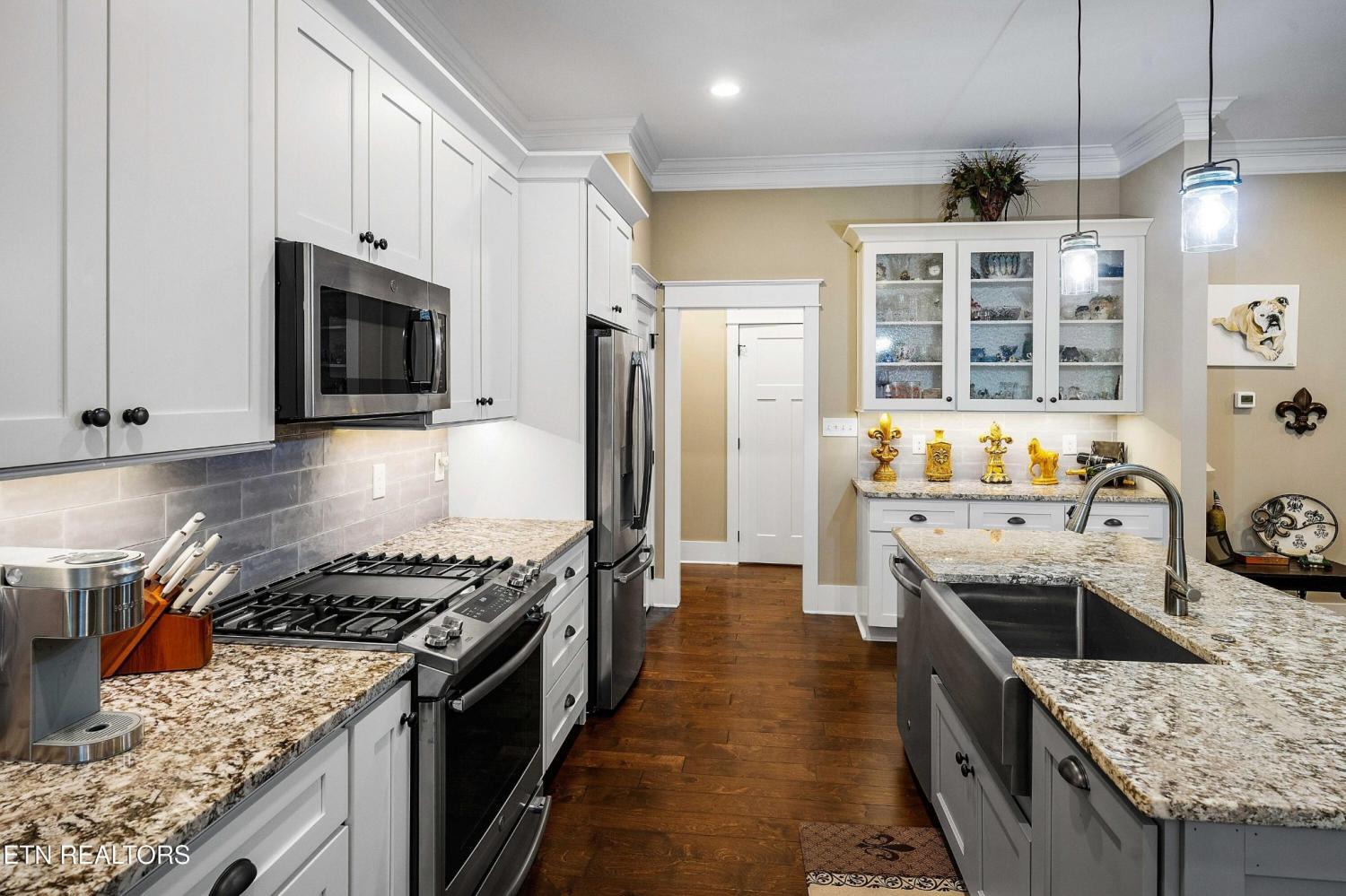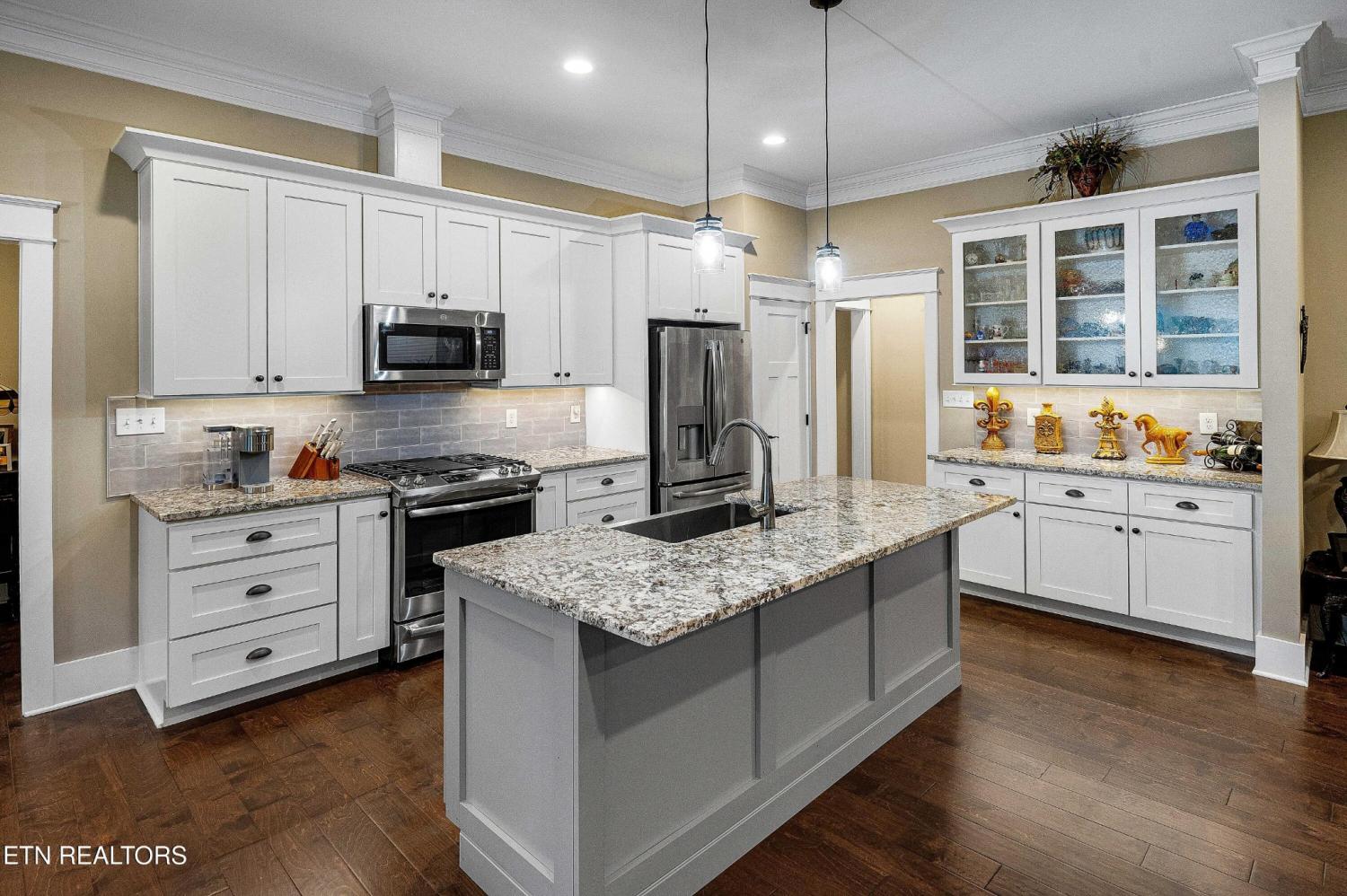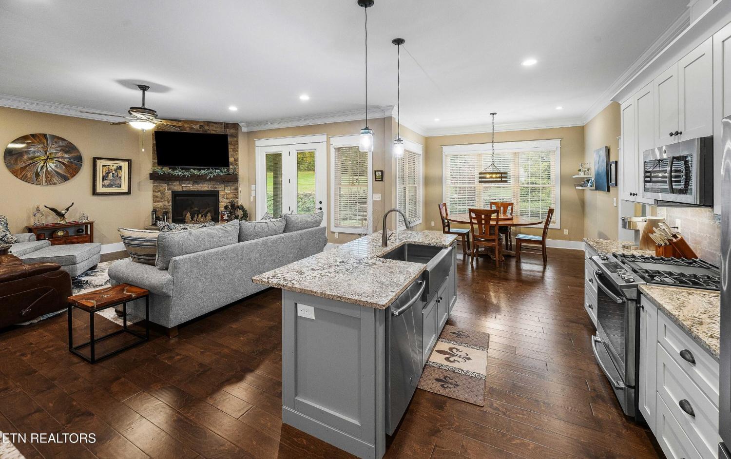 Spectacular home in the city of Maryville! This beautiful home offers 3 roomy bedrooms, 2 full baths, one half bath, formal dining room, living room with gas fireplace, gorgeous eat in kitchen, and lots of natural light with large windows offering a view of the professionally landscaped backyard and covered patio. The primary bedroom will wow you with gorgeous vaulted ceilings and the ensuite bathroom with free standing soaker tub, huge tile walk in shower, dual vanity, and large walk in closet. It also connects to the oversize laundry room. The 2 car garage has nice epoxy floors and opens to a hall with coat closet, convenient half bath, and nice drop zone. The kitchen in this home has abundant cabinet space, 2 pantries, one is a walk in pantry with solid shelving, upgraded SS appliances including gas range, under cabinet lighting, granite, and SS apron sink. The layout of this home is absolutely perfect for entertaining, designed with an easy flow in mind. The split bedroom plan offers two bedrooms and a large full bathroom on one side of the home and the primary on the other, offering privacy. This lovely home needs nothing, just move on in and make yourself at home! Buyer to verify all information