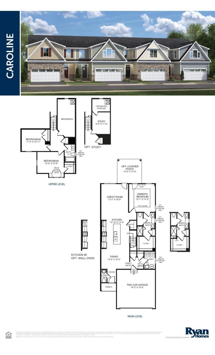 The CAROLINE!!! This popular floor plan features a first-floor owner's bedroom with a spacious bathroom and oversized walk-in closet, plus an open-concept kitchen with a large island, main-level laundry, and an attached 2-car garage. Designed for the everyday comfort and convenience of main-level living with space to spread out. Upstairs, you'll find two additional bedrooms and an unfinished storage space or an optional study. Enjoy the privacy of these Caroline homesites tucked away in a cul-de-sac with tree-lined backyards that you can FENCE IN! And they will still mow the grass for you. Just walking distance from all your daily conveniences like Publix, Jonathan's, Agave's, Wing Stop, Dutch Bro's, Club Pilates, Pet Supplies, salons, Auto-Zone & more. Call the team at Ryan Homes today to schedule your appointment, and don't forget to ask about our seller's FLEX CASH incentive!!!