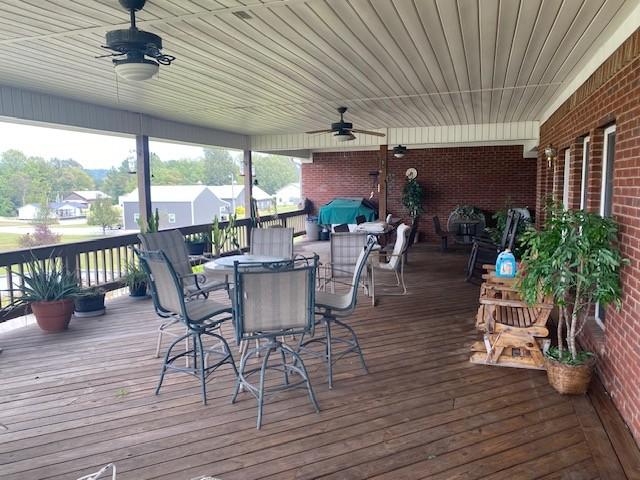 Resort Living at it's Finest! This very spacious 3/2/2 with possible more bedrooms in finished basement and office gives you the space needed for that large family or entertain all of your friends at the TN River! Special touches such as Corian counter tops, crown mouding, bay window, trayed ceiling, sun room, fenced side yard, tankless water heater and kitchen island adds so much to the living experience. Entertain inside in your open concept basement and/or outside on your huge 20x50 covered deck and matching covered patio! Add in the covered RV parking pad and flowing lawn, with 4 extra lots (#124,121,120,117), and there is room galore for any outdoor activity imaginable! Property is in both Fisherdale and Gumdale Resorts and just up the hill from the TN River and all of it's fun activities. Take this home, add your personal touch, and make it your own private resort at the River!!