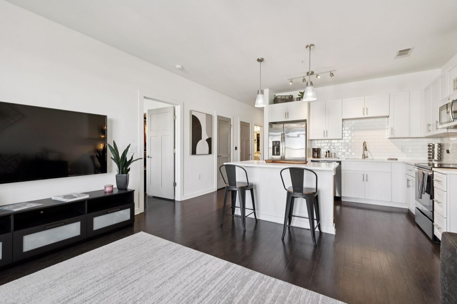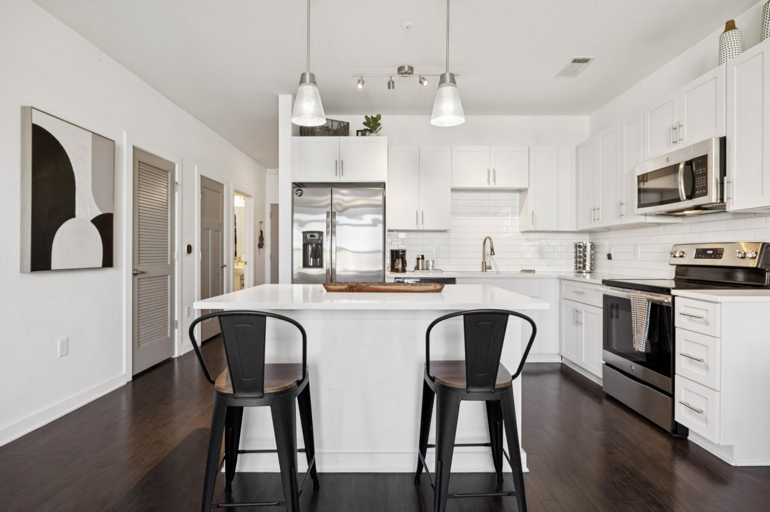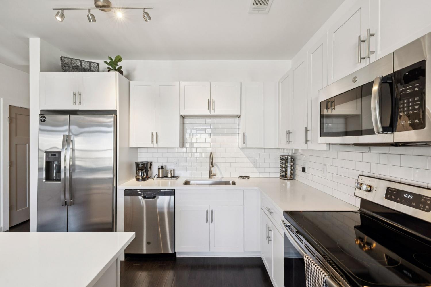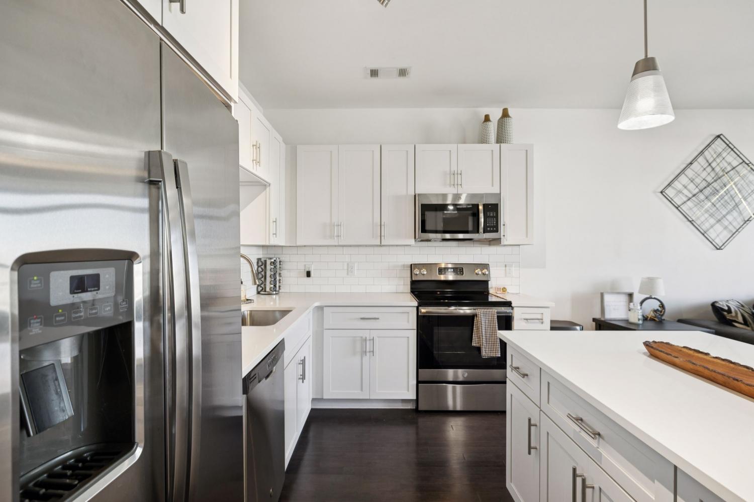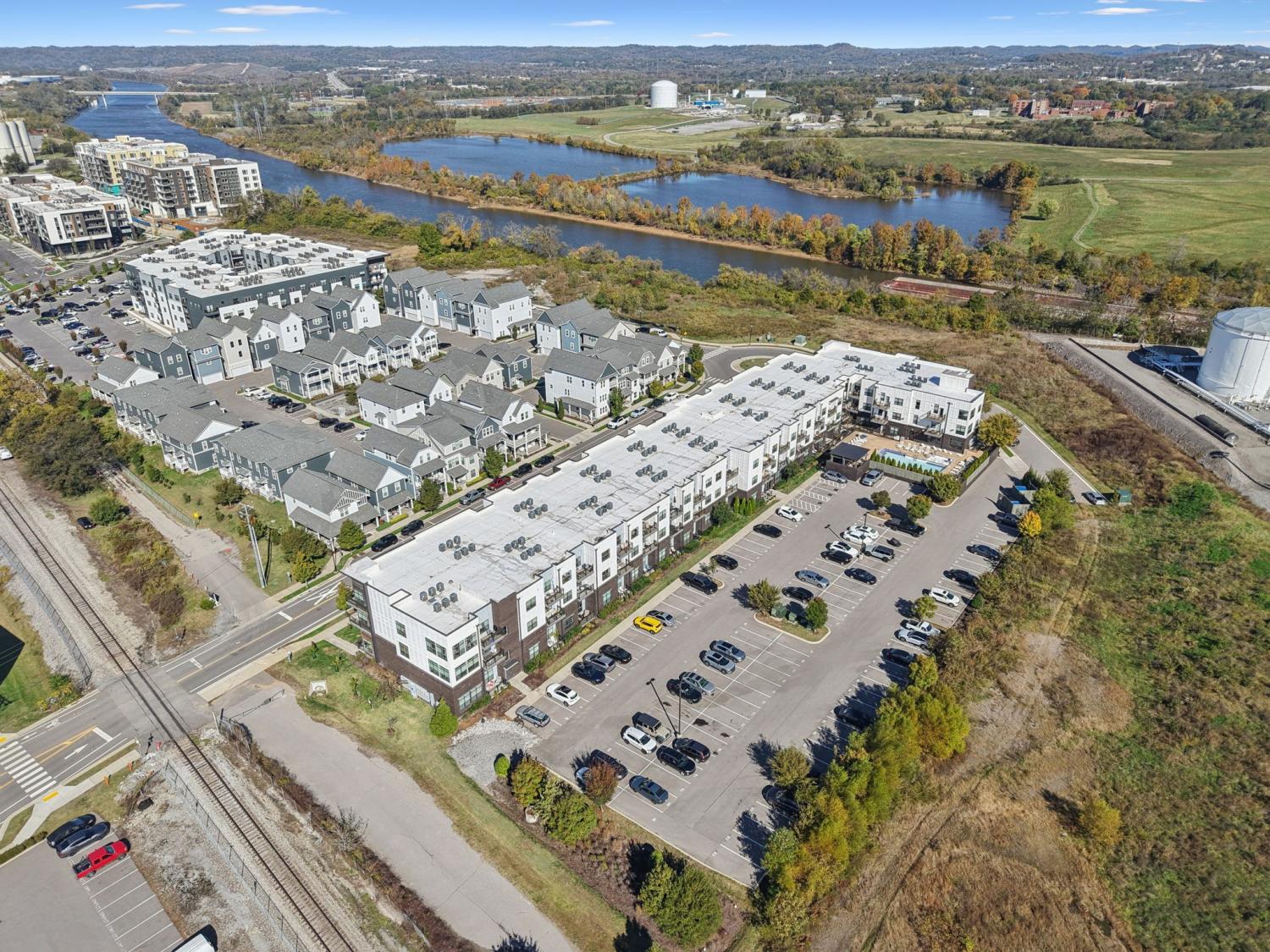 Meticulously Maintained & Stylish Silo House Condo! Just a few miles from Downtown, this West Nashville gem features an open floor plan with hardwood floors, white cabinetry, quartz countertops, stainless steel appliances, custom Bali shades and a stunning, tailor-made closet designed by the Nashville Closet Company. The primary suite offers a large tiled shower with frameless glass. Enjoy sunset views from the covered deck. Community amenities include a pool, fitness center, and secure building access. Unit also comes with a parking space and refrigerator.