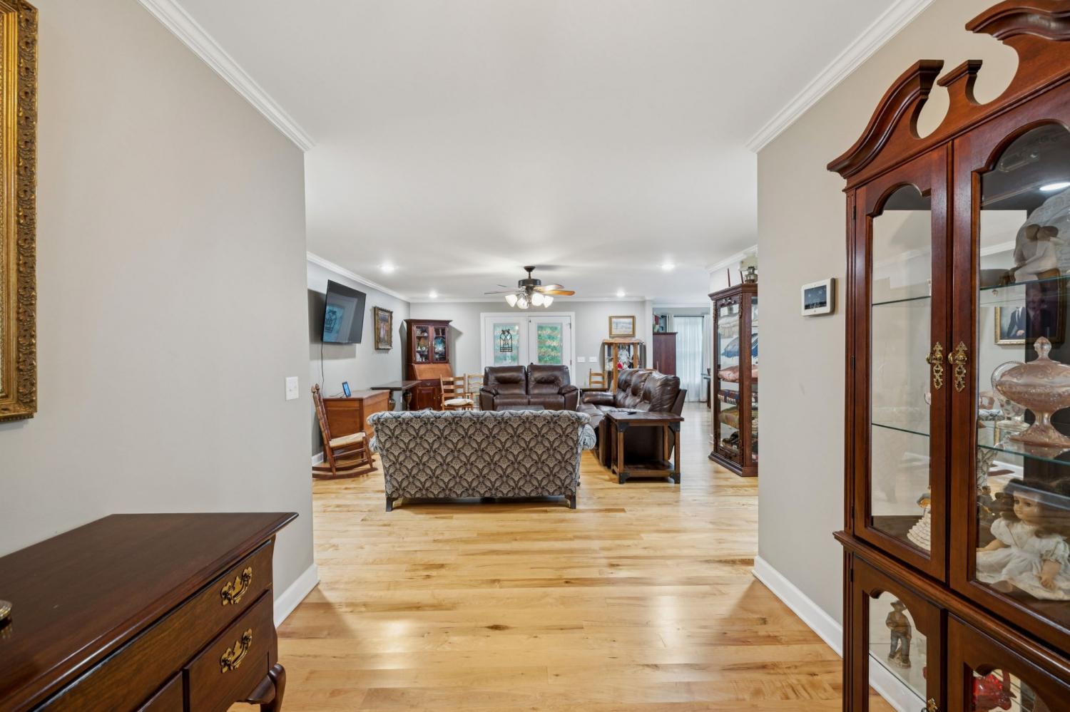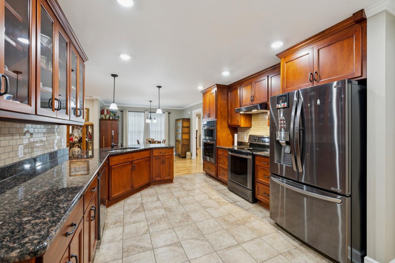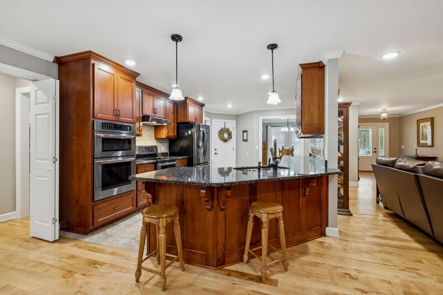 Like-New Custom 4BR Home in Town — Designed for Comfort, Convenience & Quality Welcome to this beautifully maintained, custom-built brick home with stone accents, thoughtfully designed for easy, one-level living. Completed in 2020, this property combines modern efficiency with timeless style — perfect for those who appreciate craftsmanship, comfort, and practicality. Step inside to a bright open-concept layout featuring maple wood and porcelain tile floors, granite countertops, and stylish LG appliances. The kitchen offers a dual-pantry design, breakfast nook, and seamless flow into the dining and family rooms. The spacious primary suite provides a quiet retreat, while three additional bedrooms offer flexibility for family, guests, or office space. Enjoy outdoor living on the screened rear porch with stamped concrete floor — ideal for morning coffee or evening gatherings — overlooking a large, level 1-acre lot with room for gardens, play areas, or pets. Car enthusiasts, hobbyists, and DIYers will love the 30’x40’ detached garage/workshop with rough-in plumbing, plus a 2-car attached garage — a total of four garage spaces and abundant storage. Highlights: One-level, energy-efficient 4BR/2BA home Dual-fuel HVAC system & Generac whole-house generator Granite countertops, maple cabinets, LG appliances, double oven/microwave Spacious utility room with cabinetry Screened back porch & covered stamped-concrete front porch 30’x40’ detached garage/workshop with plumbing rough-in Concrete drive & extra parking area Energy Efficient! - Average monthly electric bill: $133 265’ of road frontage on approx. 1 acre (additional .65-acre lot available for $30,000) Quiet neighborhood setting — safe walking, easy access to town amenities This property blends modern convenience, thoughtful design, and inviting outdoor living — all in a move-in-ready home that feels brand new.