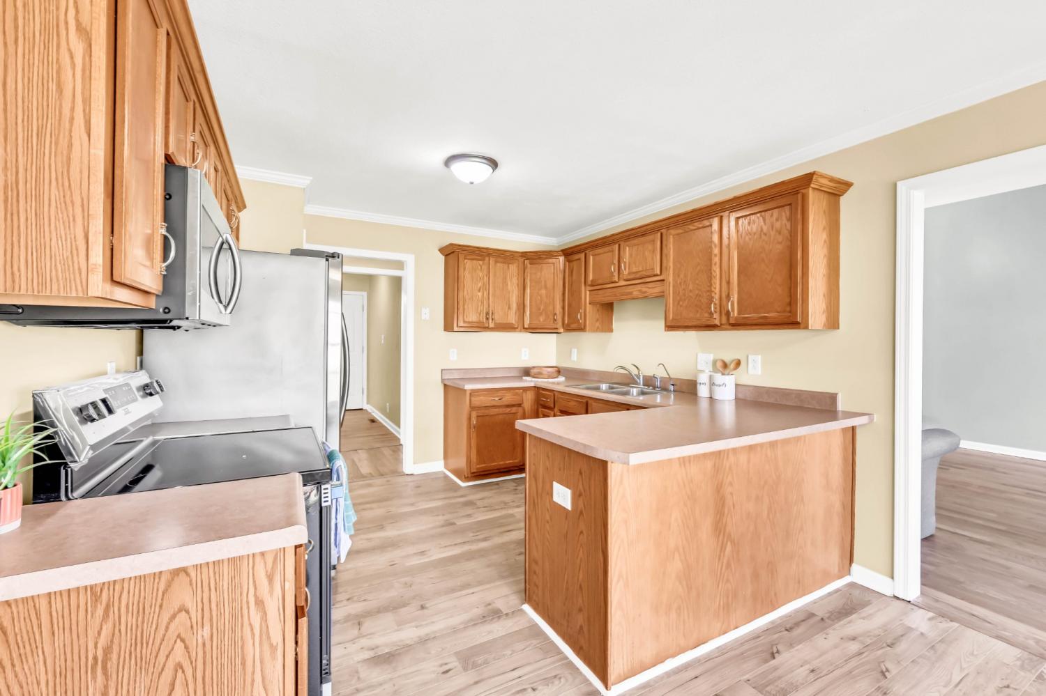 Sellers are offering $10k in concessions!! Welcome to this beautifully maintained 3-bedroom, 2-bath ranch featuring a functional layout and numerous updates throughout. The home offers an inviting entry foyer, a formal dining room, and a spacious bonus room upstairs ideal for an office, family room, or guest suite. The primary bedroom suite is thoughtfully positioned for privacy and includes double vanities, two showers, and ample space for comfort. The home boasts all new flooring (no carpet), a new roof (September 2025), new HVAC (2024), new stove/oven, and a fully encapsulated crawl space. Additional highlights include insulated garage doors, a 2-car garage, and a back deck perfect for outdoor relaxation or entertaining. Situated in a desirable neighborhood close to the interstate, Fort Campbell, shopping, and dining, this property offers both convenience and quality. Move-in ready and meticulously updated—schedule your private tour today! FREE HOME WARRANTY WITH ACCEPTED OFFER!
