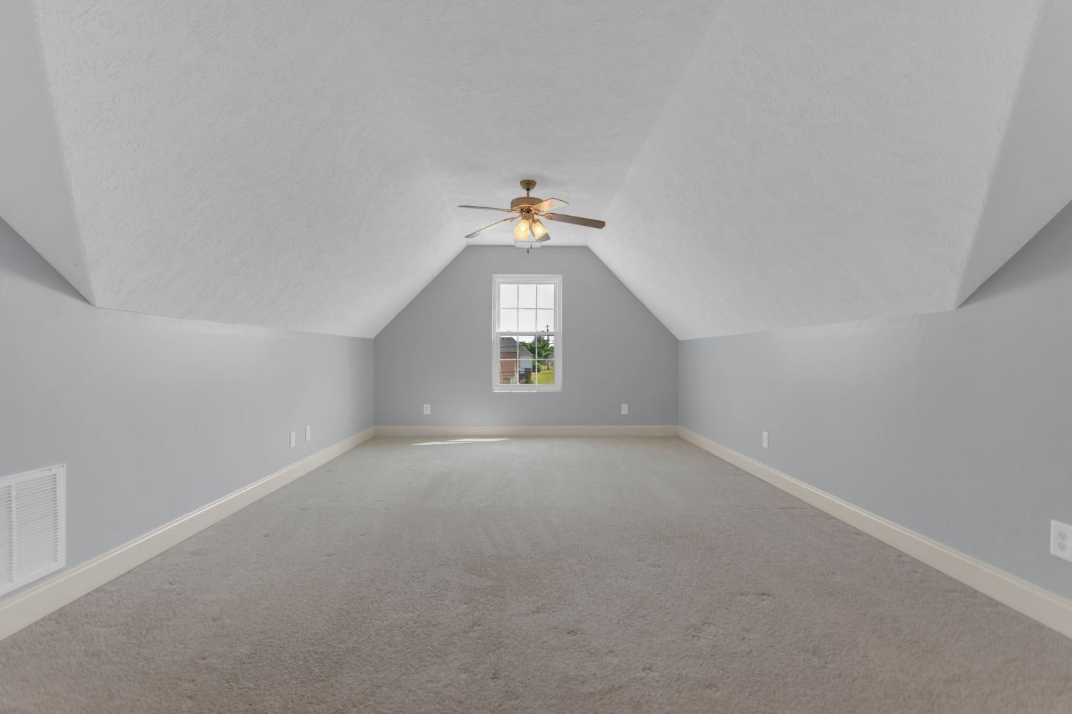 Welcome to this beautifully maintained 3-bedroom, 2-bath home in the desirable Golf View Estates subdivision. Featuring an open floor plan with soaring ceilings, this home offers a bright and spacious living area that flows seamlessly into the kitchen. All bedrooms are conveniently located on the main level, with a large bonus room upstairs that’s perfect for a playroom, office, or media space. Fresh paint throughout makes this home truly move-in ready. Step outside to enjoy a fully fenced backyard with beautiful mature trees, providing both privacy and shade.A/C unit less than two years old! Zoned for all Battle Creek Schools, this home has been lovingly cared for and is ready for its new owners. A must see!