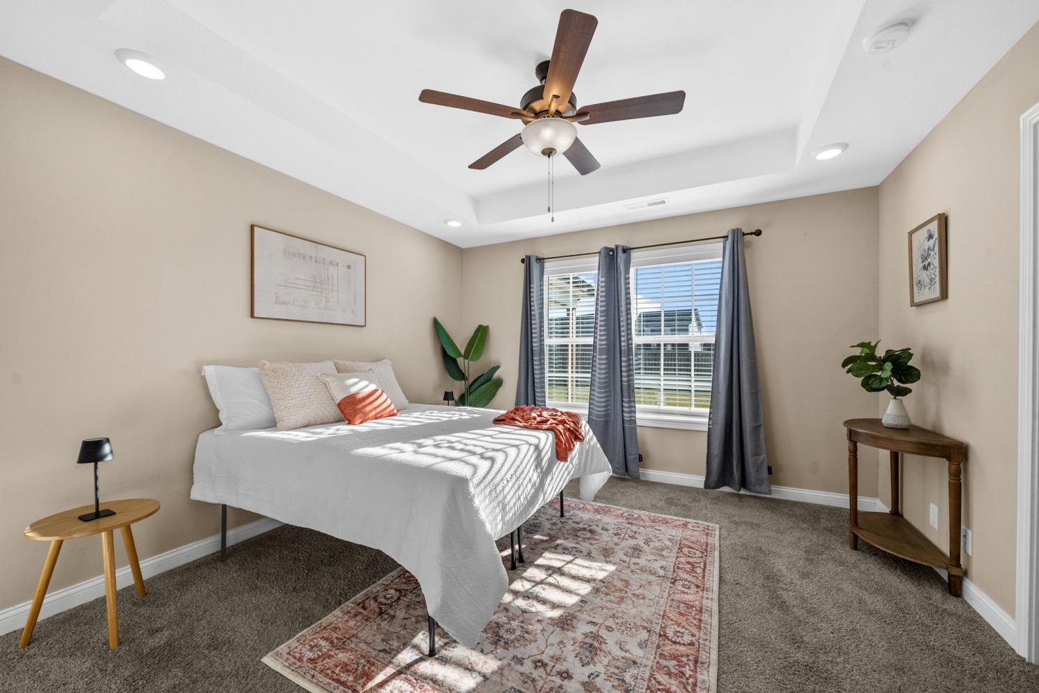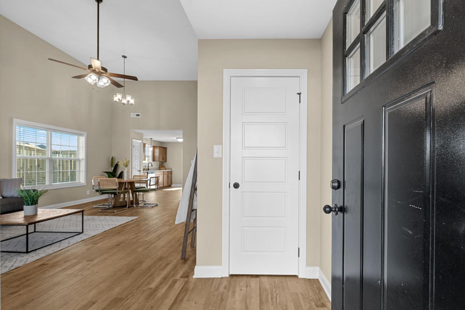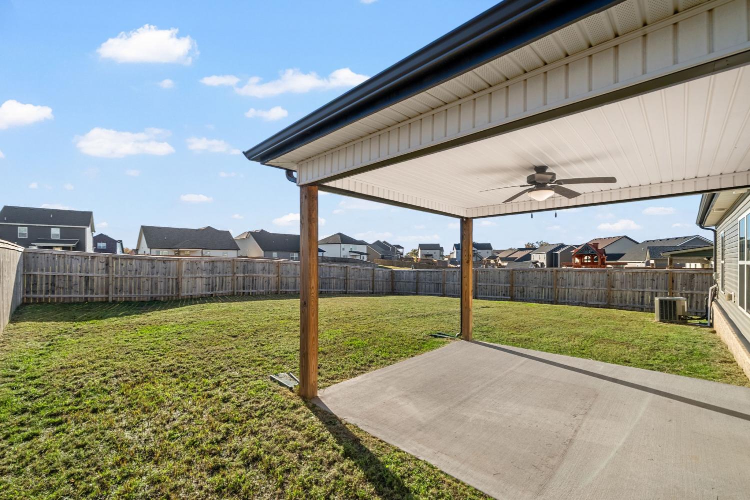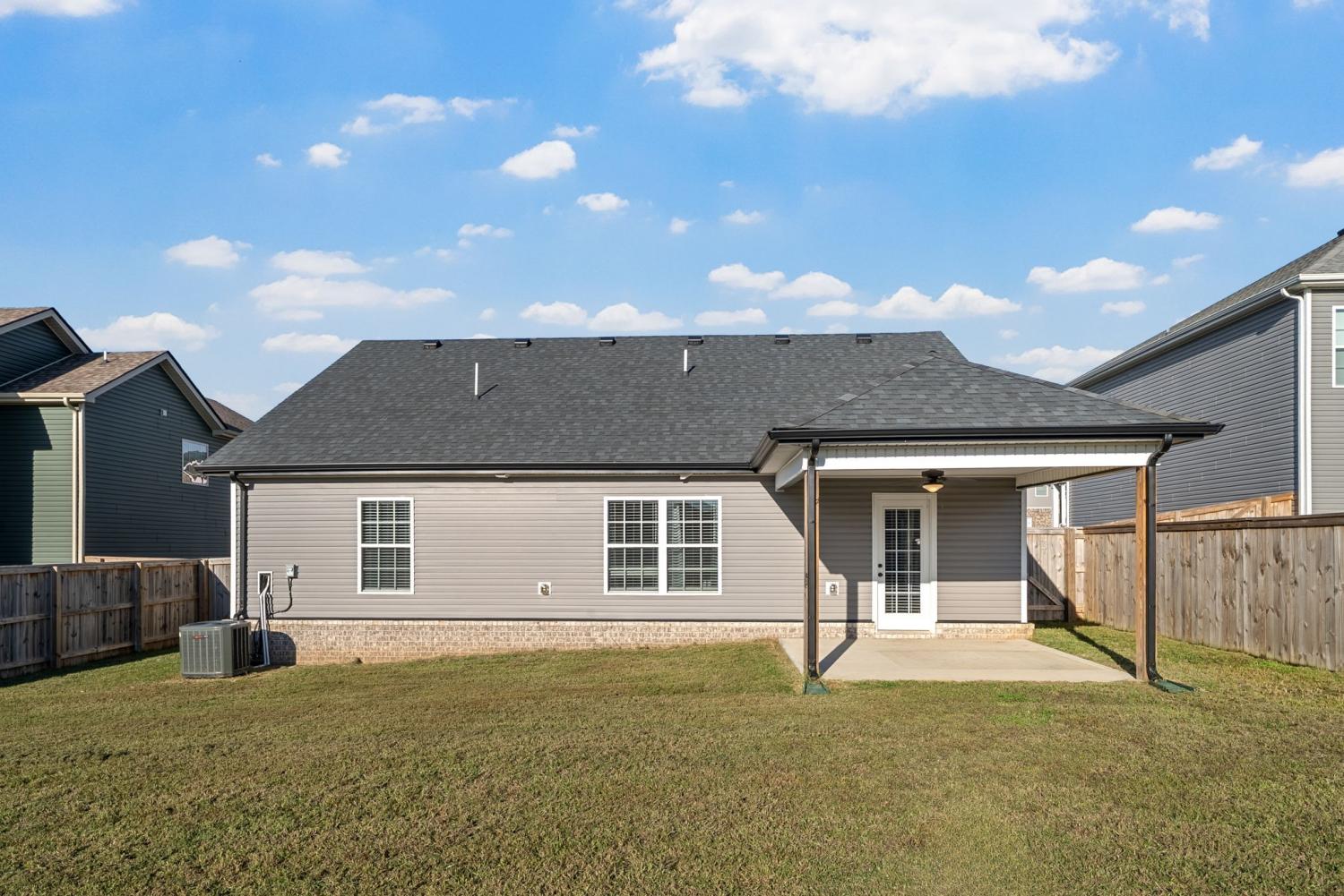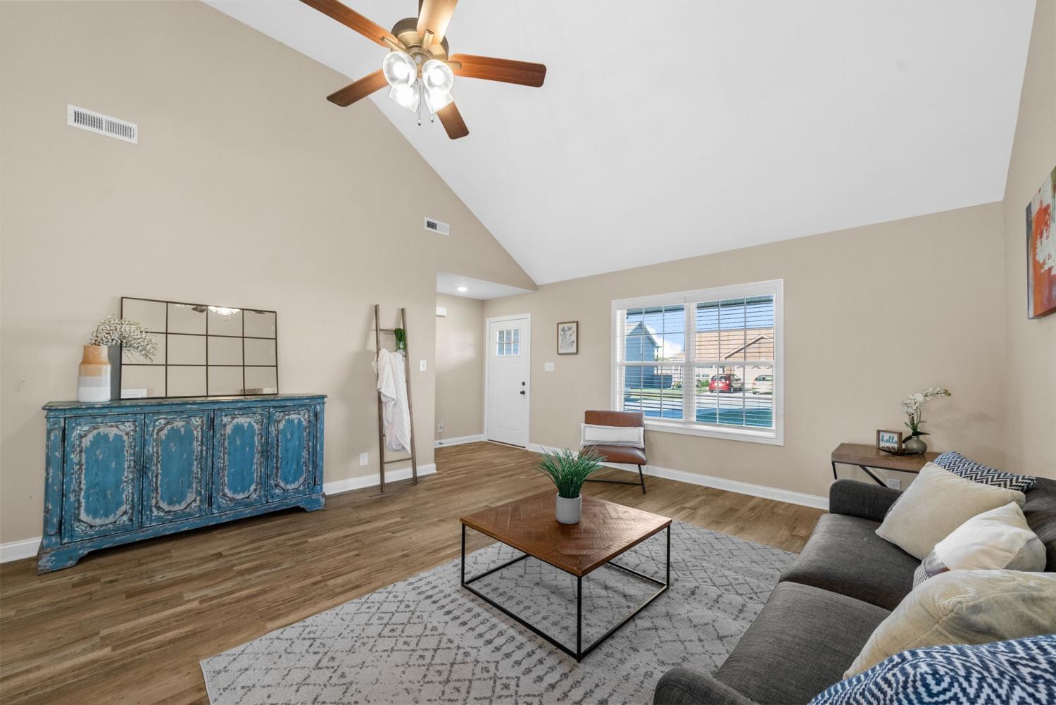 inviting open layout designed for modern living. The kitchen stands out with two spacious pantries, ample cabinetry, and generous counter space topped with beautiful granite countertops. The living room is warm and welcoming, featuring vaulted ceilings and a handy coat closet. Just off the main living area, the mud room offers incredible flexibility, with plenty of room for a storage cabinet or shoe rack. The primary suite is a relaxing retreat with a tray ceiling, a large walk-in closet, and a private bath featuring a tiled shower. Two guest bedrooms are comfortably sized and share a second full bathroom, perfect for family or visitors. Enjoy outdoor gatherings on the covered back patio overlooking a level yard, ideal for entertaining or relaxing. The garage comes complete with a sealed floor for a clean, polished finish. Located close to shopping and dining, this home blends thoughtful design, comfort, and convenience — everything you’ve been looking for in one perfect package.