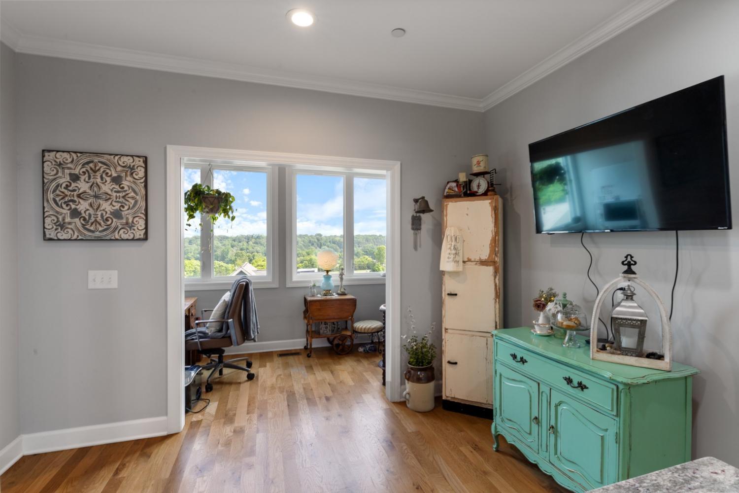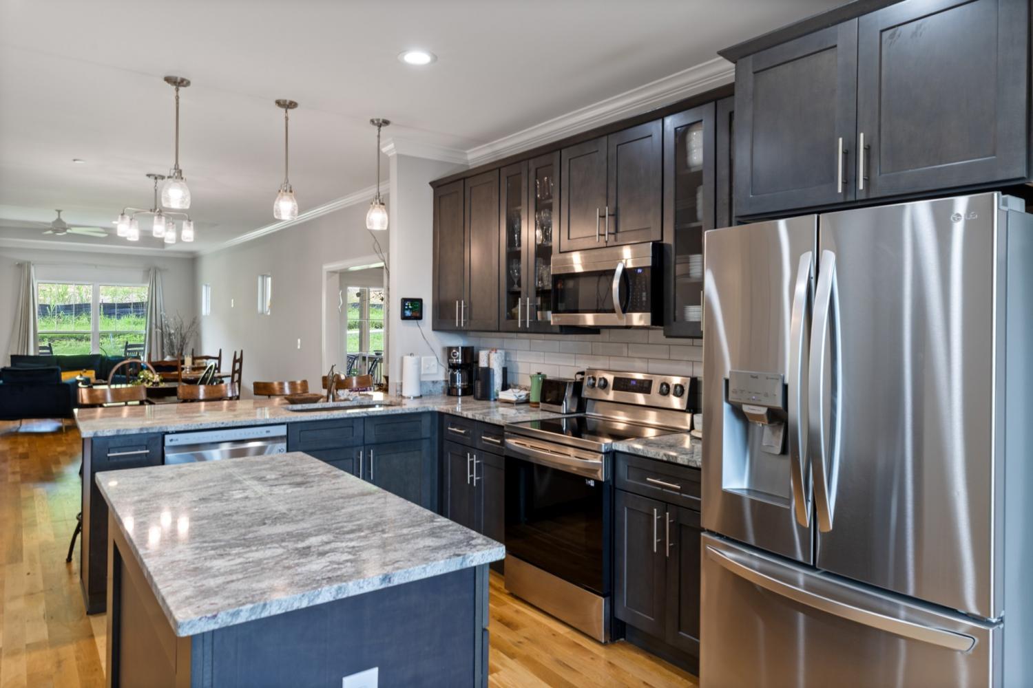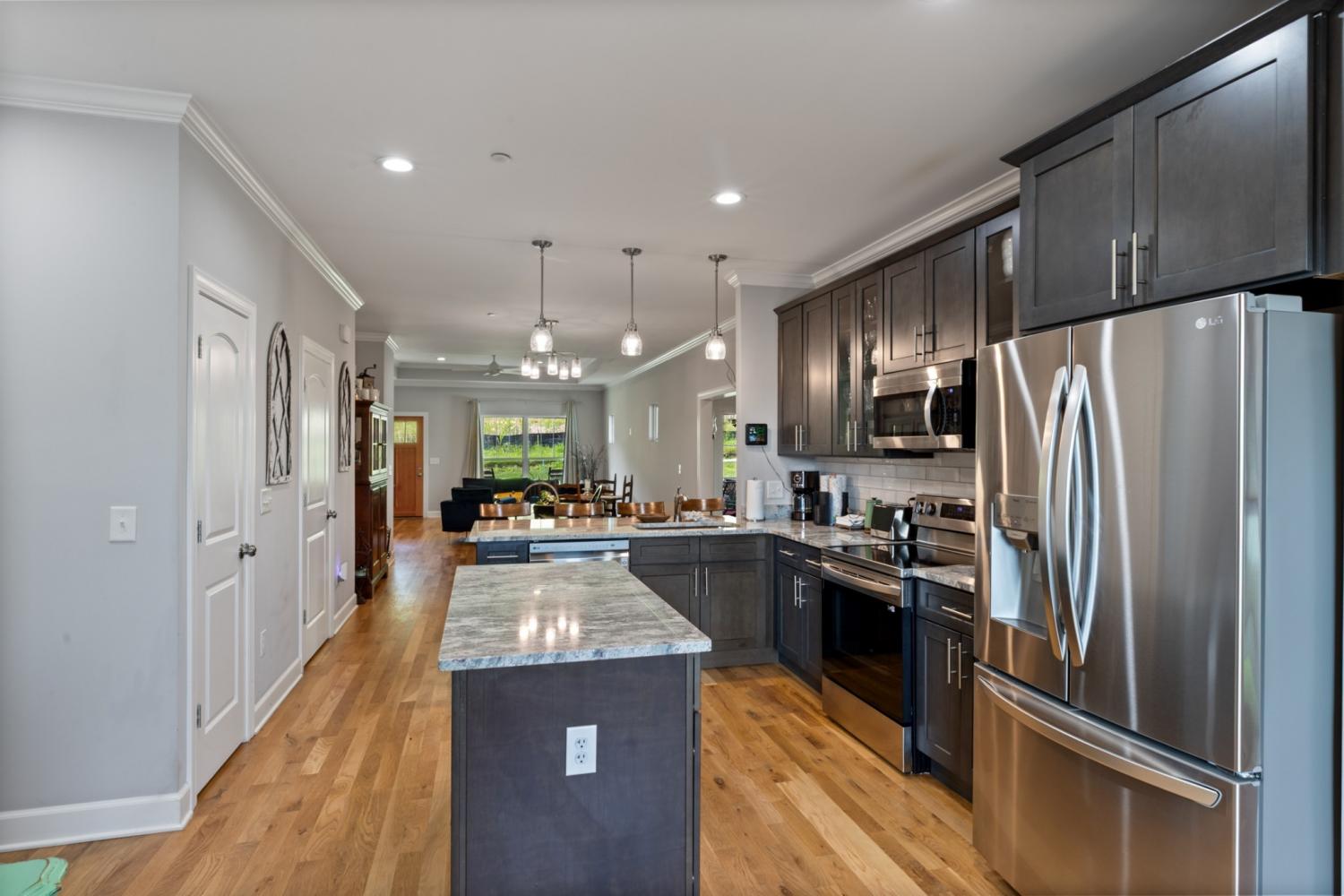 This custom-built Kingston Springs retreat was designed for comfort, privacy, and ease of living. Thoughtfully crafted across three functional levels, this home was built for those who appreciate intentional design and lasting quality. Filled with features that bring flexibility to every stage of life. From the rear entry garage, your private elevator welcomes you into a versatile bonus space on the 2nd level — ideal for a home office, studio, or guest retreat. Continue up to the main living level, where you’ll find open, light-filled spaces that flow effortlessly between the kitchen, dining, and great room. Soaring ceilings and solid construction create an atmosphere of quiet luxury, while every detail — from the sprinkler system to the storm shelter — provides true peace of mind. Outside, the low-maintenance yard and soon-to-be-added front parking make this home ideal for those who prefer time spent living — not maintaining. The neighborhood’s close-knit feel and gentle privacy offer security without isolation, giving you the best of both worlds. Set just 20 minutes from Nashville, minutes from the Harpeth River and walkable to downtown Kingston Springs, this home delivers small-town serenity with city convenience.