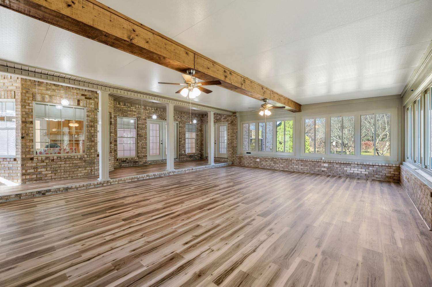 Back on the market, no fault of the sellers. Possibilities are endless at this cozy country getaway! Step inside this beautifully maintained home where natural light, spacious design, and thoughtful details shine. The massive sunroom is an entertainers dream, offering an abundance of natural light and is perfect for relaxing or hosting gatherings. The living room features high vaulted ceilings and a skylight window, creating an open and airy feel. The primary suite includes high ceilings, a handicap-accessible bathroom with a walk-in shower and jacuzzi tub, and large walk-in closets for plenty of storage. The big laundry room includes cabinets, tile flooring, and a nice washer and dryer that remain with the home. A new roof was installed in 2023, and additional upgrades include a water softener with filter system and leaf gutter guards. Outdoor living is at its best with a large wrap-around porch and a spacious screened-in gazebo and roomy storage shed, perfect for morning coffee or quiet evenings. This home has been thoughtfully maintained and offers comfort, convenience, and value — all with no HOA.