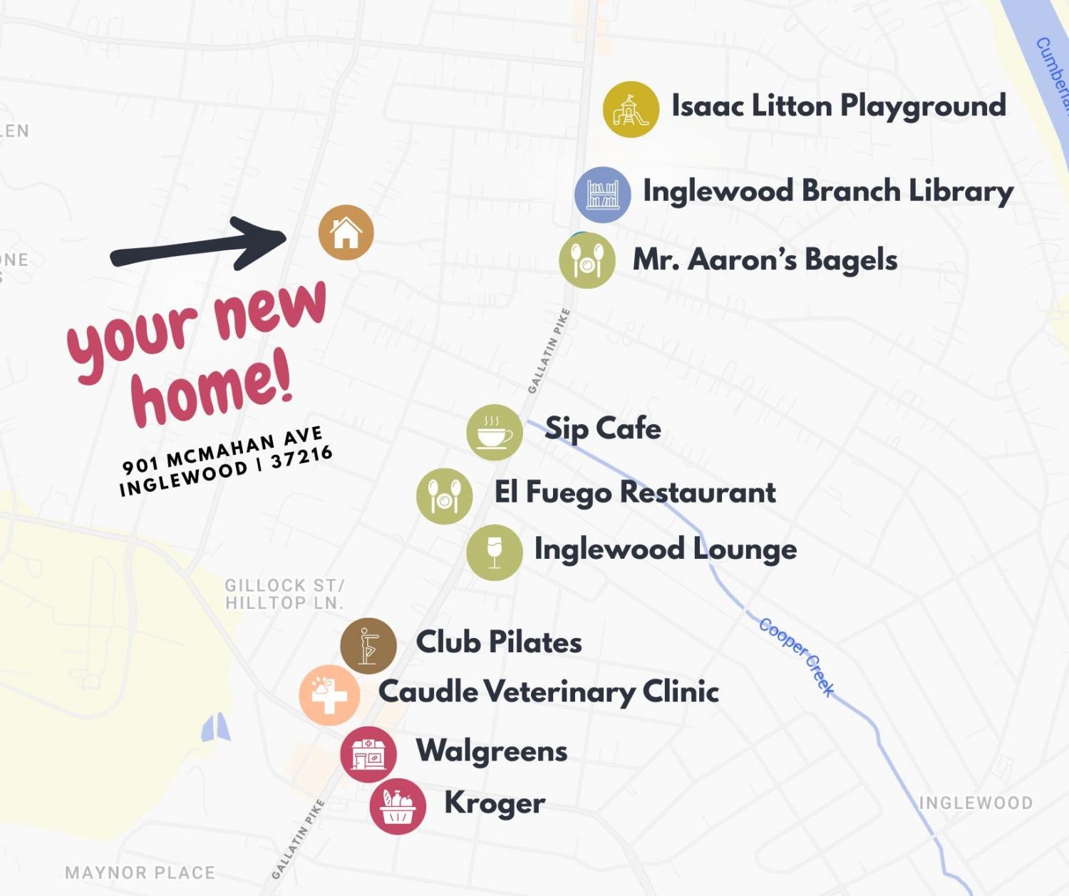 Gallatin Pike North to Curdwood Blvd. Left on Curdwood Blvd, Right on Burrus St, Right on Glynda/McMahan Ave.