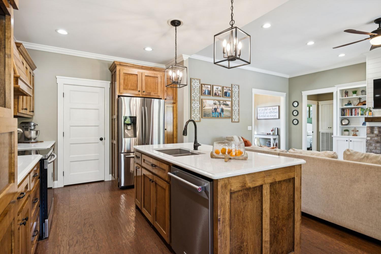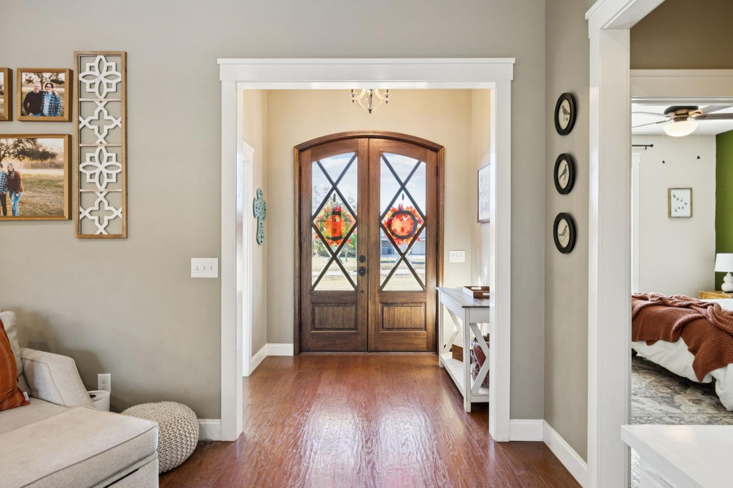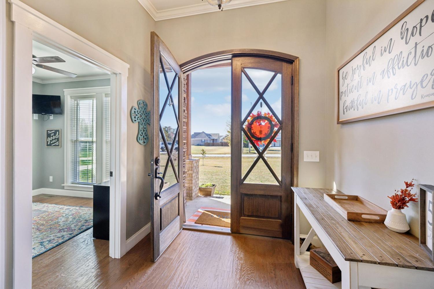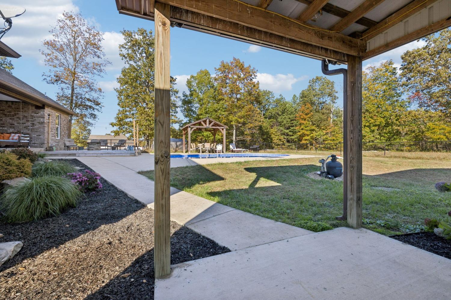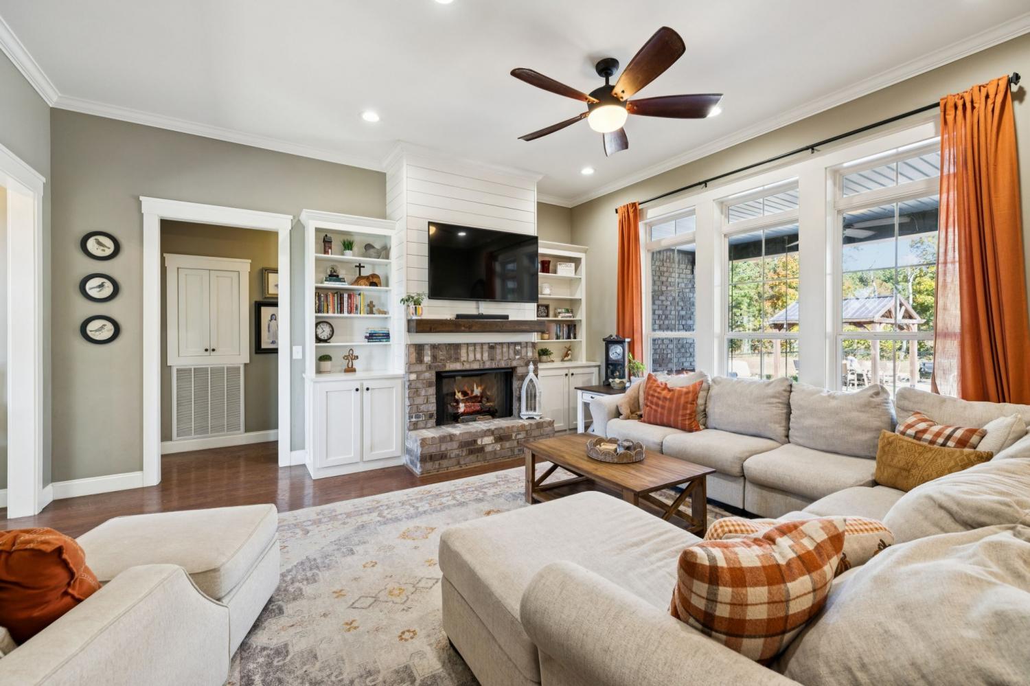 Welcome to a one-of-a-kind custom transitional craftsman home on a 1.43-acre lot in Freedom Crossing. This show-stopper offers the ultimate in lifestyle and entertaining, featuring a sparkling inground pool surrounded by expansive concrete, decking, a pavilion, and a spacious covered back porch. Step through grand double mahogany doors with beveled glass into an inviting foyer, where you'll find a versatile office or flex space with a large closet. Flow into an open-concept living area. The living room is designed to impress, featuring a gas-log fireplace, elegant built-ins, and oversized windows framing stunning views of your private backyard oasis. The kitchen is a masterpiece with custom maple cabinetry, quartz countertops, stainless steel appliances, and a walk-in pantry with floor-to-ceiling storage. Retreat to the luxurious primary suite featuring an indulgent 6x8 rainfall shower, a soaking whirlpool tub, double vanities, and a massive walk-in closet with custom built-ins. Thoughtful touches abound, from a utility room with extra cabinetry to a mudroom with cubbies for easy organization. The backyard oasis steals the show with multi-level entertaining spaces. Plus, a 20x30 shop with water and electricity is ready for all your hobbies or storage needs. This is truly a dream home where every detail is designed for comfort, style, and memorable moments! This home is a testament to thoughtful ownership and continuous care. The sellers invested in numerous upgrades during construction, ensuring both comfort and efficiency for years to come. From a tankless gas water heater and energy-saving spray foam insulation to durable PEX plumbing, every detail reflects their commitment to quality. They maintain the home by having it professionally sprayed twice a year for pests and scheduling bi-annual HVAC servicing.