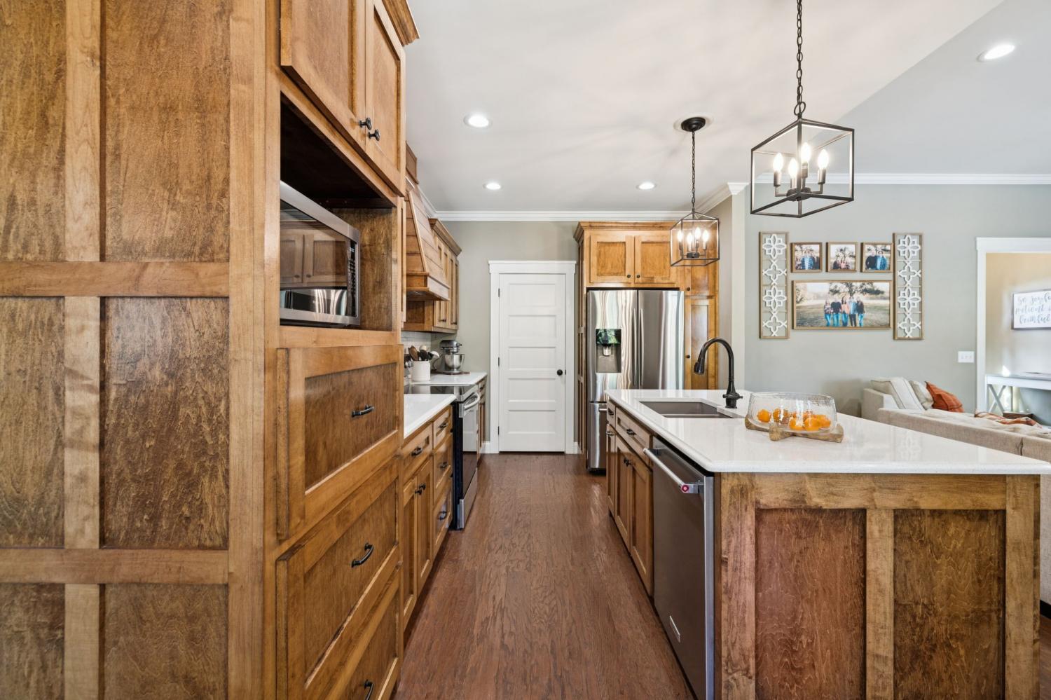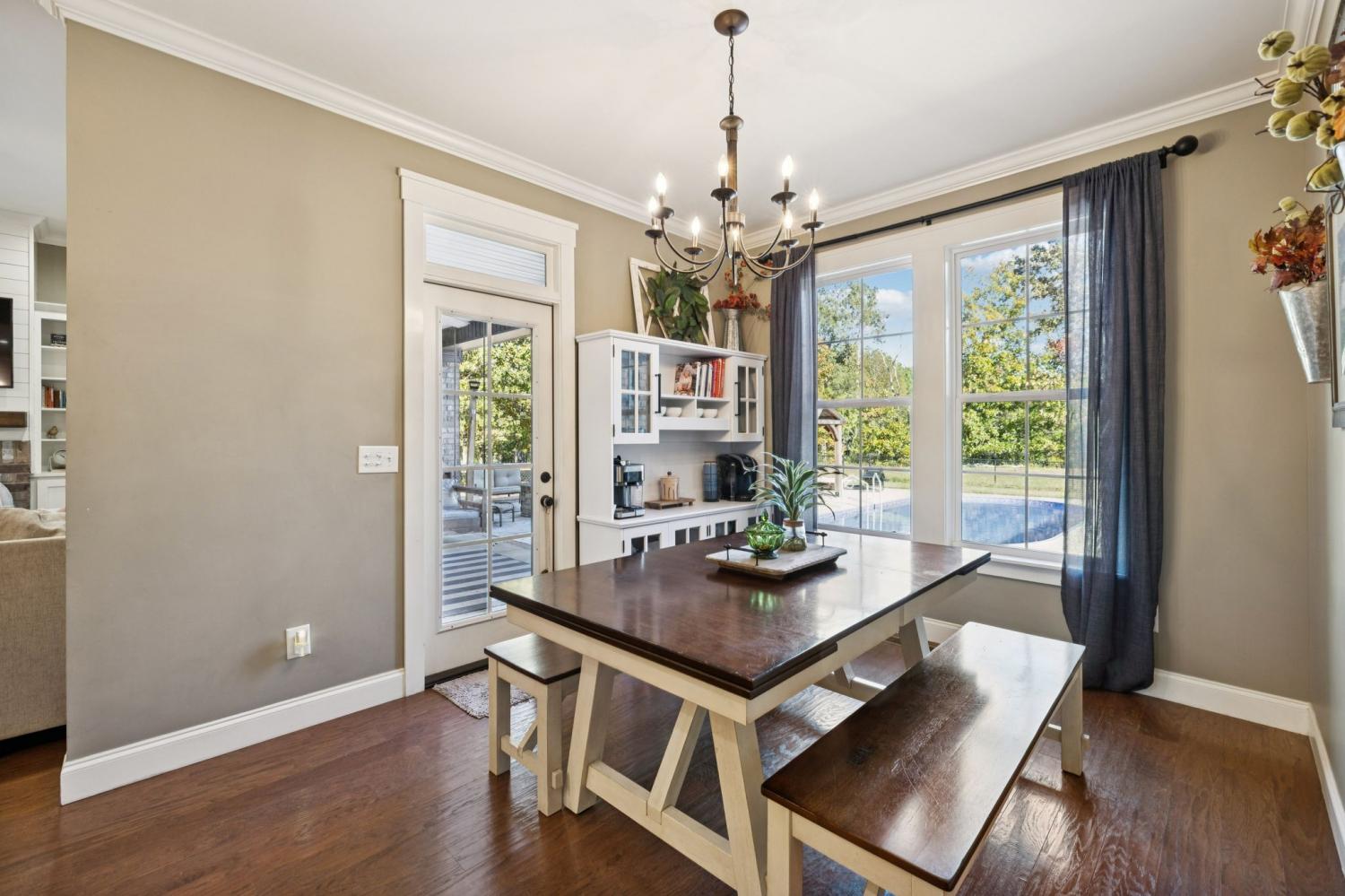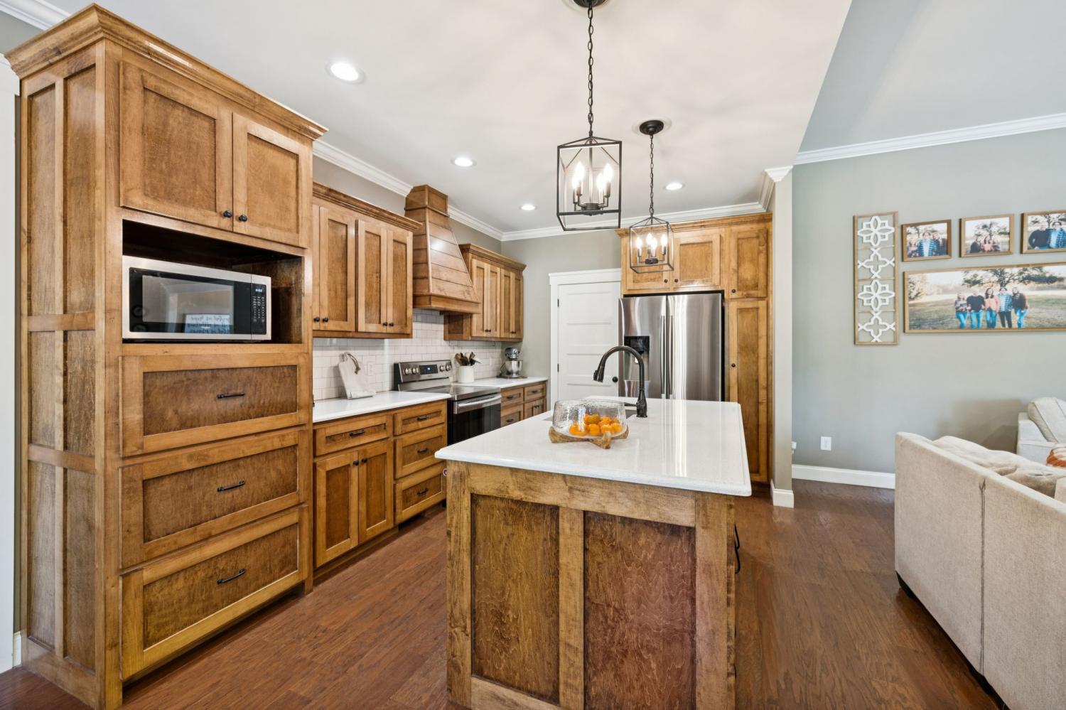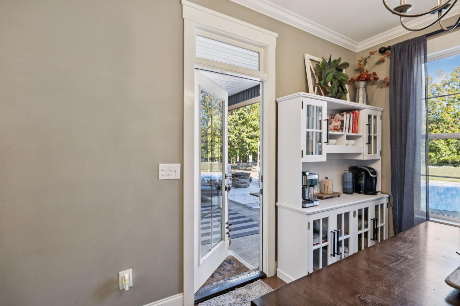 Welcome to a one-of-a-kind custom transitional craftsman home on a 1.43-acre lot in Freedom Crossing. This show-stopper offers the ultimate in lifestyle and entertaining, featuring a sparkling inground pool surrounded by expansive concrete, decking, a pavilion, and a spacious covered back porch. Step through grand double mahogany doors with beveled glass into an inviting foyer, where you'll find a versatile office or flex space with a large closet. Flow into an open-concept living area. The living room is designed to impress, featuring a gas-log fireplace, elegant built-ins, and oversized windows framing stunning views of your private backyard oasis. The kitchen is a masterpiece with custom maple cabinetry, quartz countertops, stainless steel appliances, and a walk-in pantry with floor-to-ceiling storage. Retreat to the luxurious primary suite featuring an indulgent 6x8 rainfall shower, a soaking whirlpool tub, double vanities, and a massive walk-in closet with custom built-ins. Thoughtful touches abound, from a utility room with extra cabinetry to a mudroom with cubbies for easy organization. The backyard oasis steals the show with multi-level entertaining spaces. Plus, a 20x30 shop with water and electricity is ready for all your hobbies or storage needs. This is truly a dream home where every detail is designed for comfort, style, and memorable moments! This home is a testament to thoughtful ownership and continuous care. The sellers invested in numerous upgrades during construction, ensuring both comfort and efficiency for years to come. From a tankless gas water heater and energy-saving spray foam insulation to durable PEX plumbing, every detail reflects their commitment to quality. They maintain the home by having it professionally sprayed twice a year for pests and scheduling bi-annual HVAC servicing.